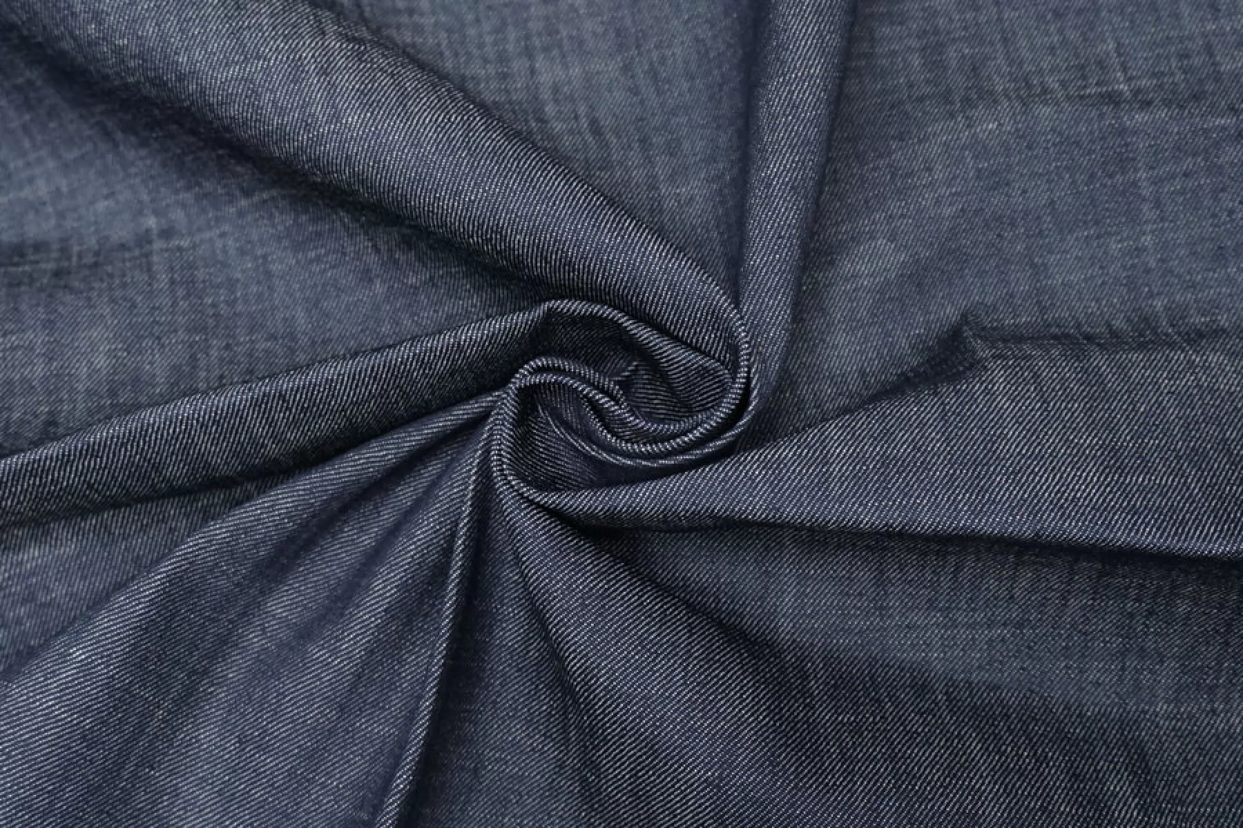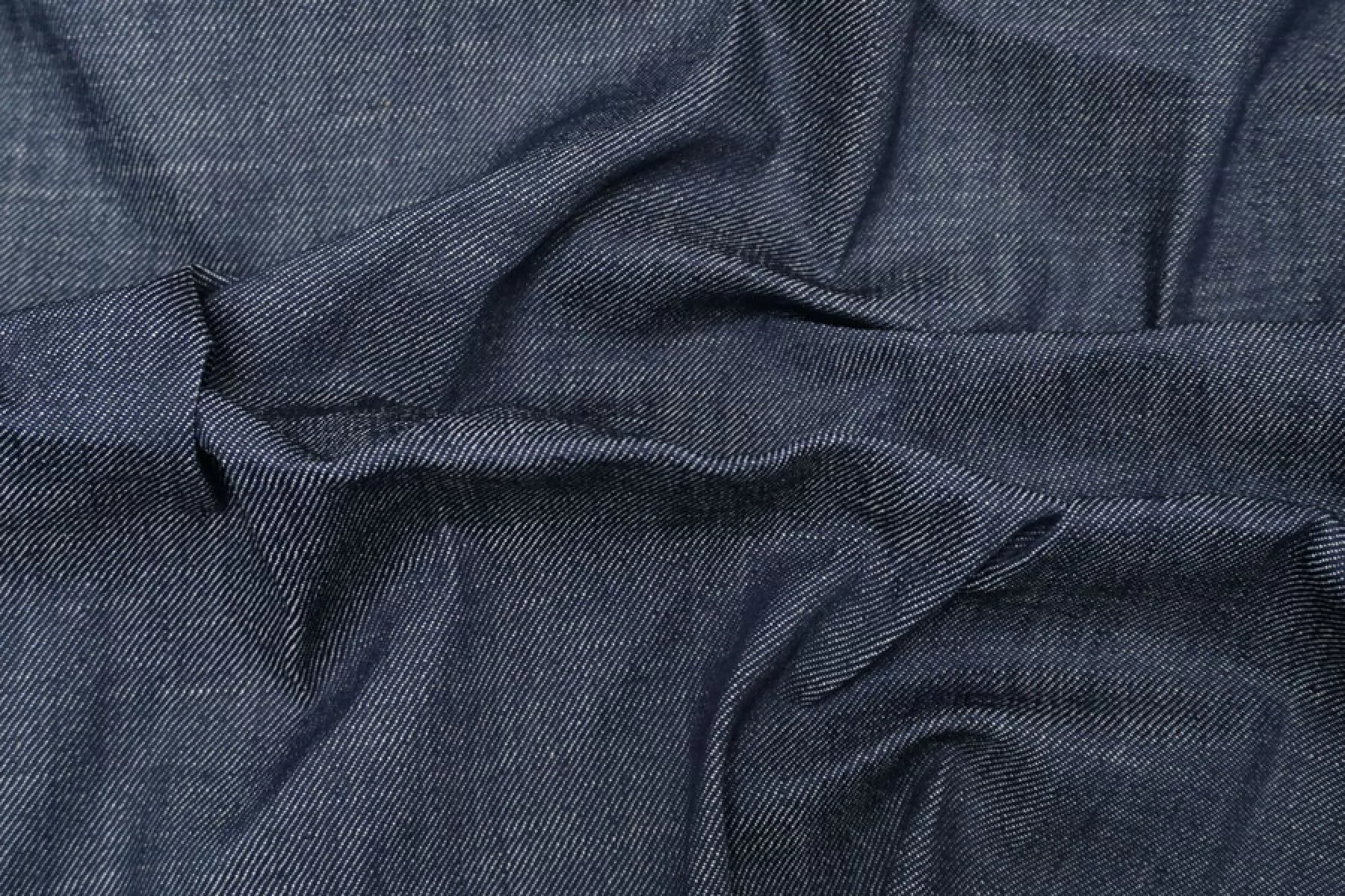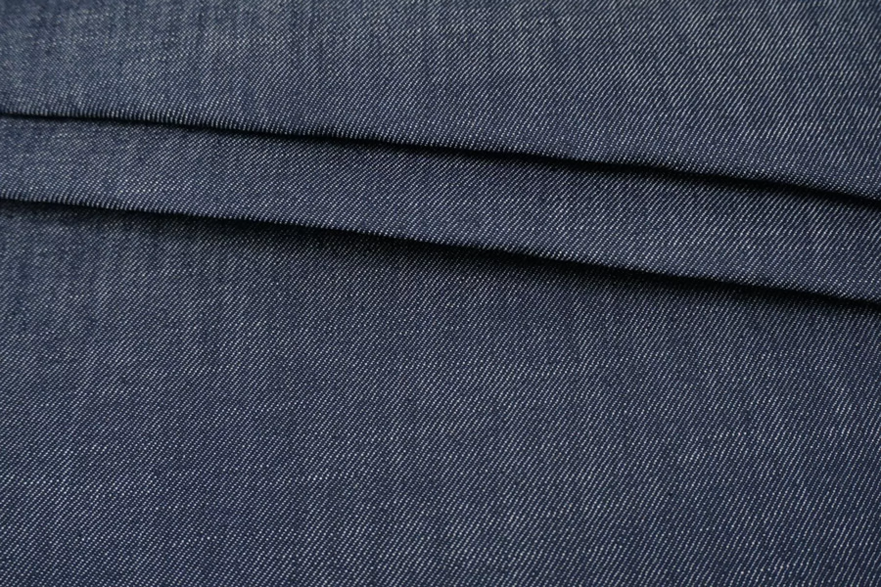 Хлопковая итальянская джинса диагонального плетения синего цвета, с белыми нитями в плетении. Материал средней плотности, пластичный, чувствуется фактура наощупь. Плетение совсем немного тянется. Пластичная но при этом держит форму. Не просвечивает. Сминается средне. Отличный вариант на джинсы, юбки. Учитывайте усадку.