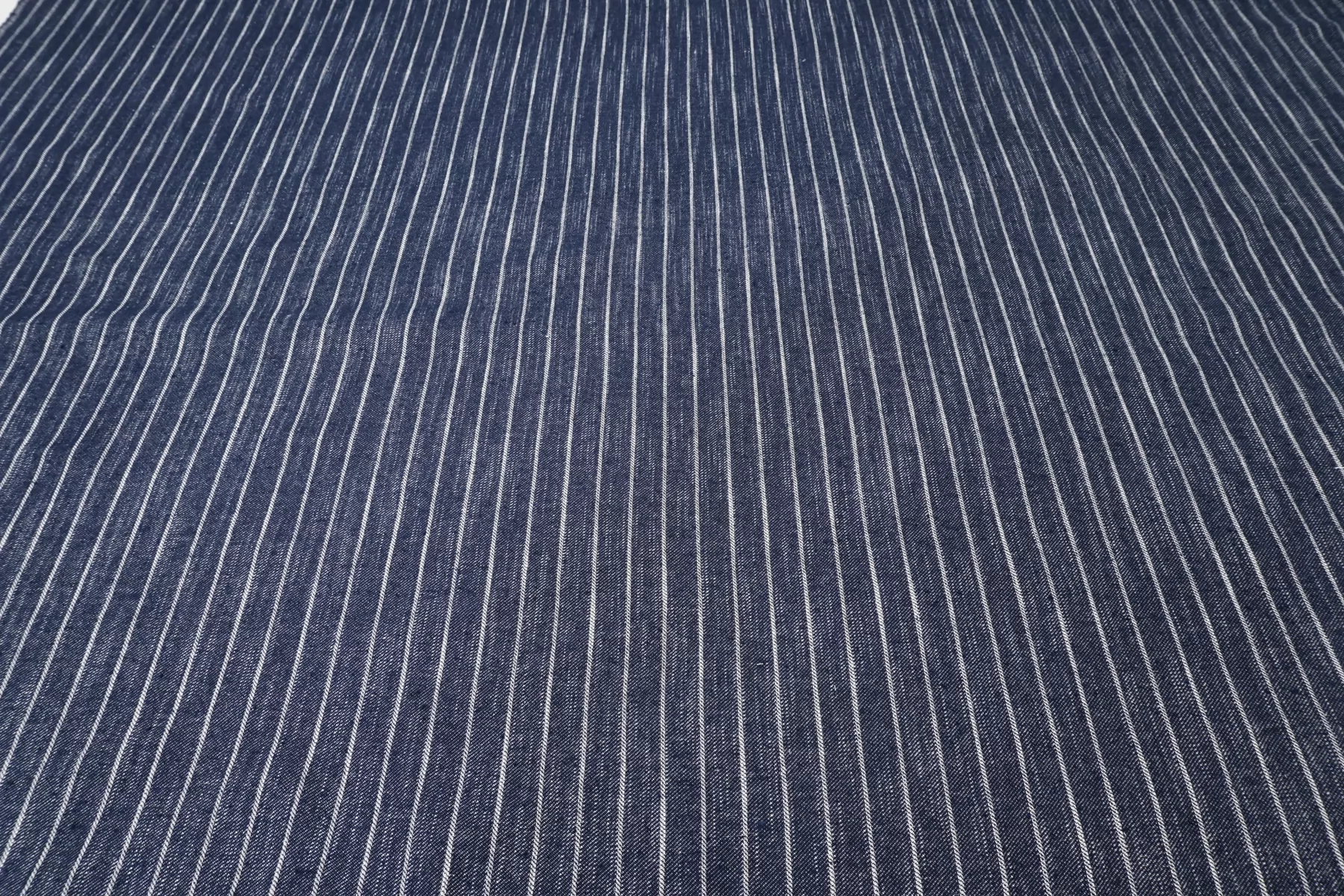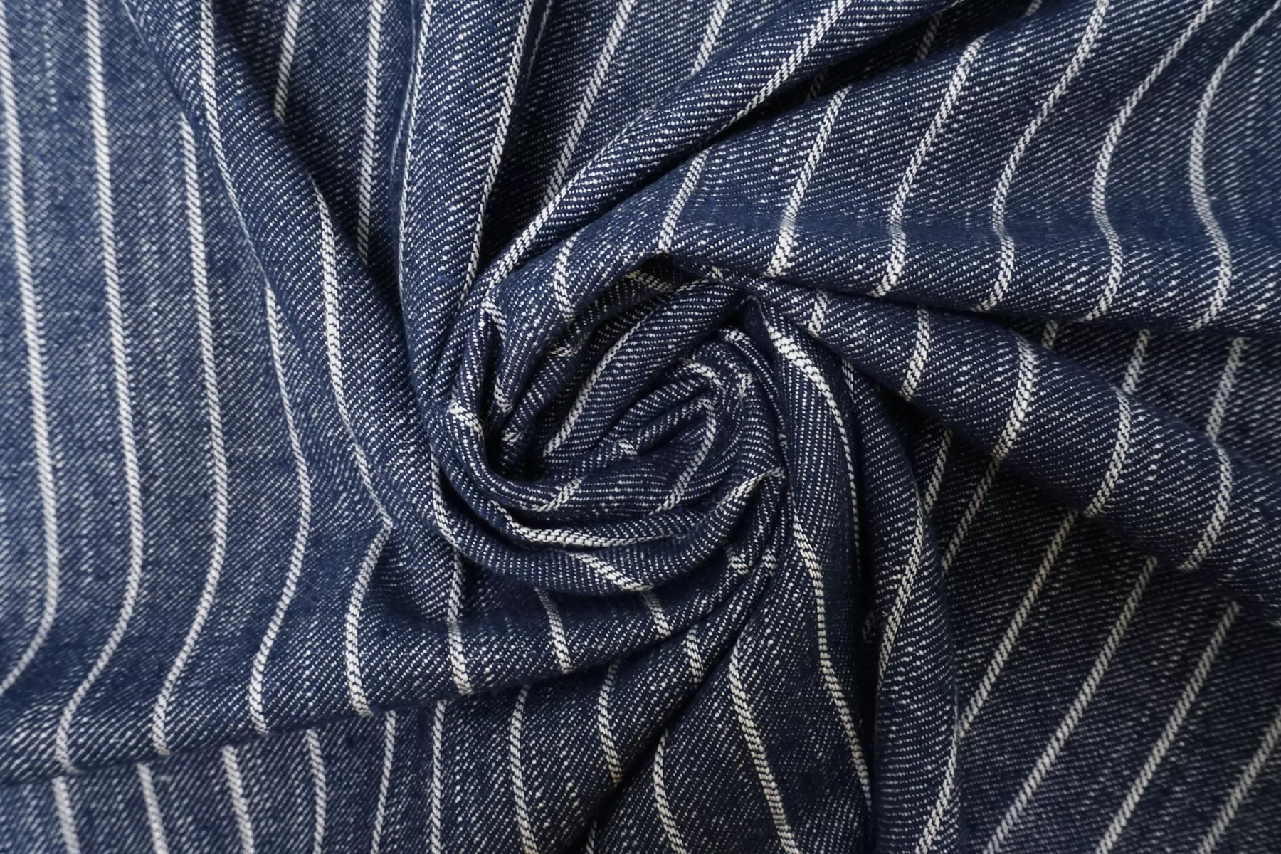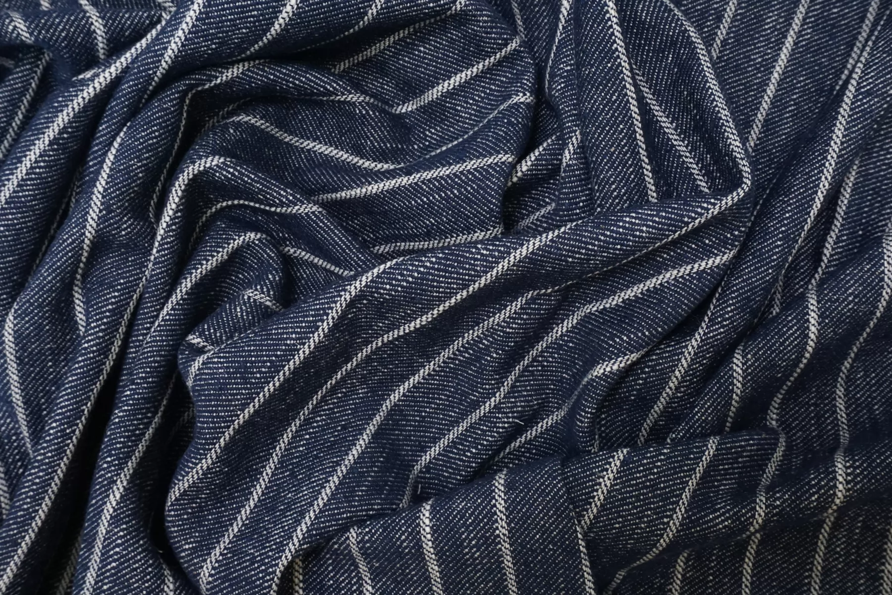 Джинса хлопковая со льном в полоску Сине-белая IDT H13 MM30 20112538
