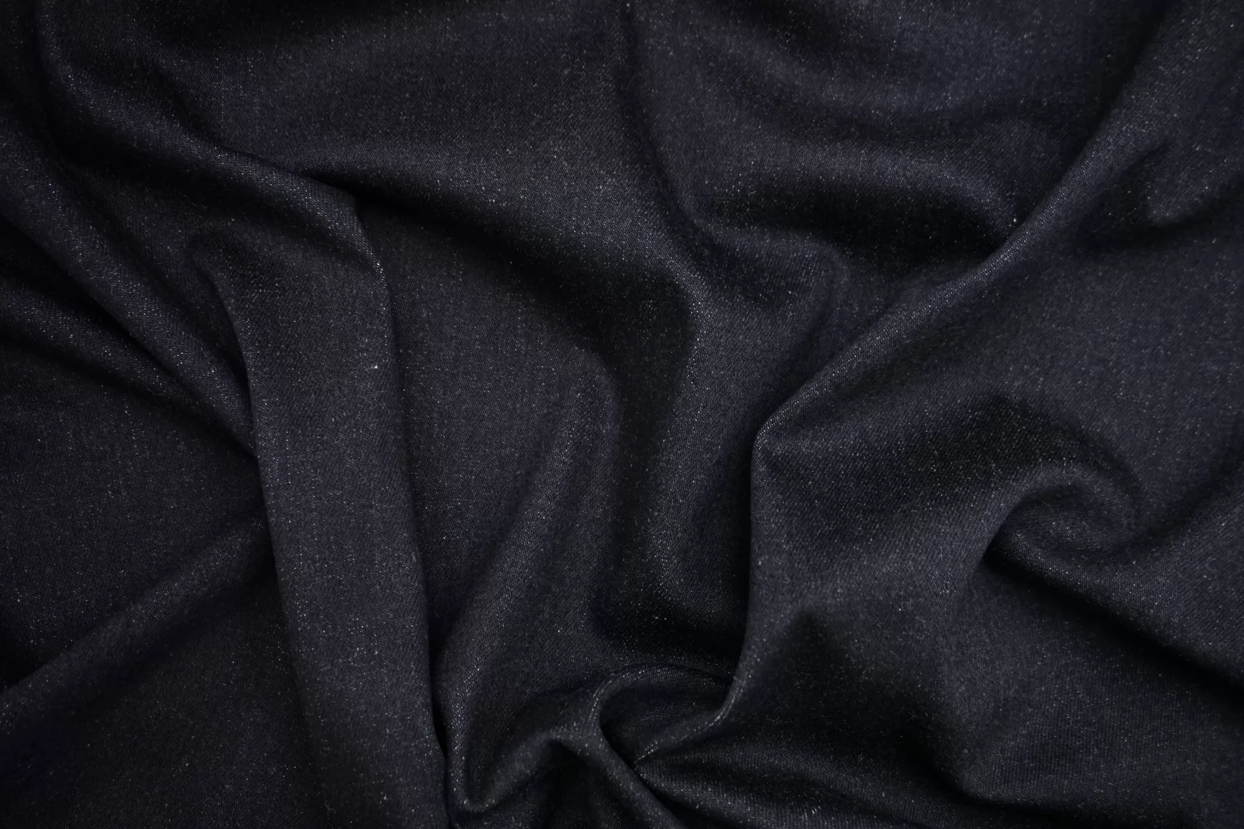 Хлопковая джинса костюмно-плательна стрейч черного цвета с синим подтоном. Приятная тактильно, хорошей плотности, при этом очень пластичная. Формодержащая. Не просвечивает. Тянется за счет добавления эластана. Немного мнется, но почти полностью восстанавливается. Шьем платья, куртки, мягкие жакеты, юбки, шорты и свободные джинсы. Учитывайте усадку материала.