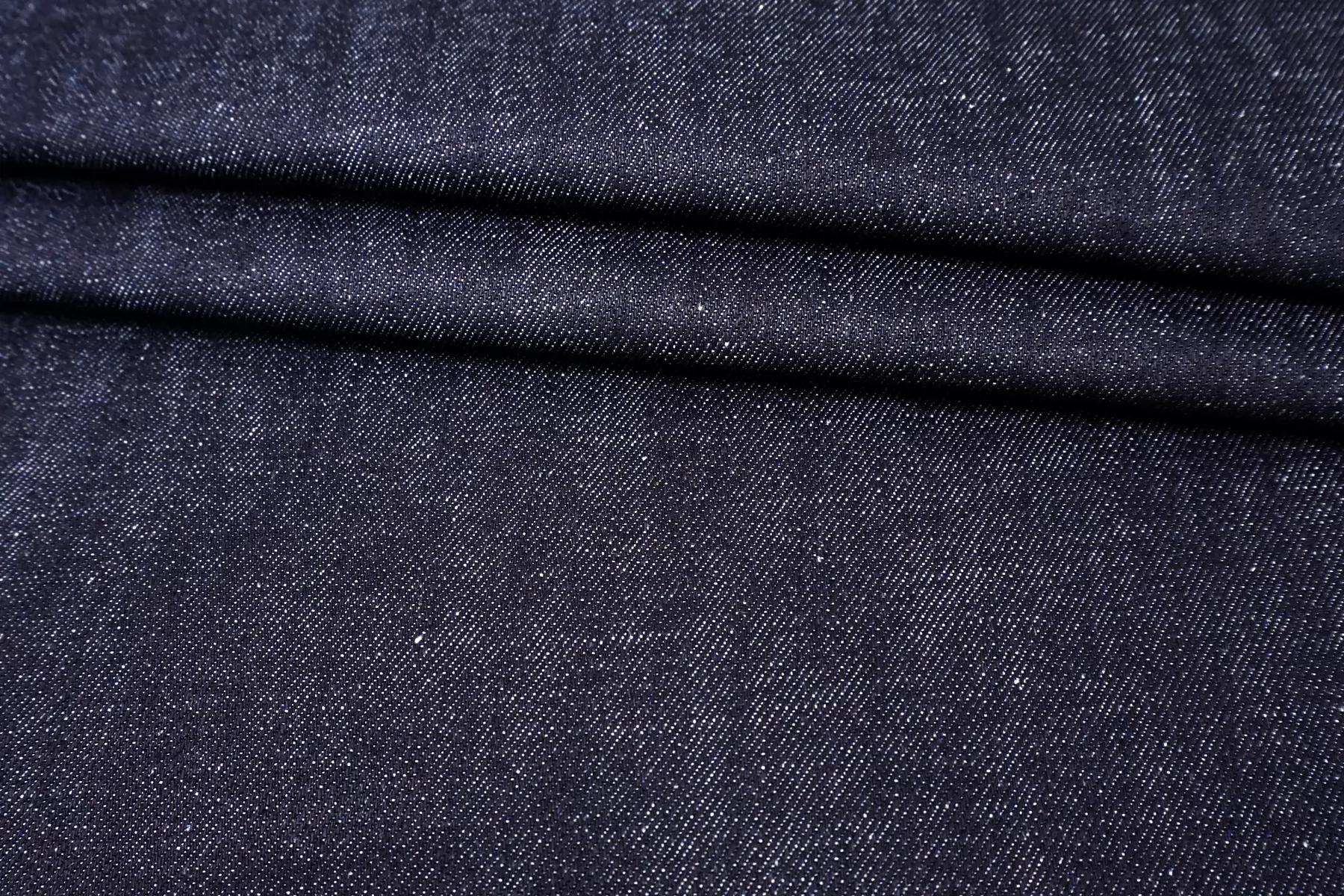 Хлопковая итальянская джинса диагонального плетения темно-синего цвета, с белыми нитями в плетении. Материал средней плотности, пластичный, чувствуется фактура наощупь. Не тянется. Не просвечивает. Сминается средне, форму держит. Отличный вариант на джинсы, юбки. Учитывайте усадку.