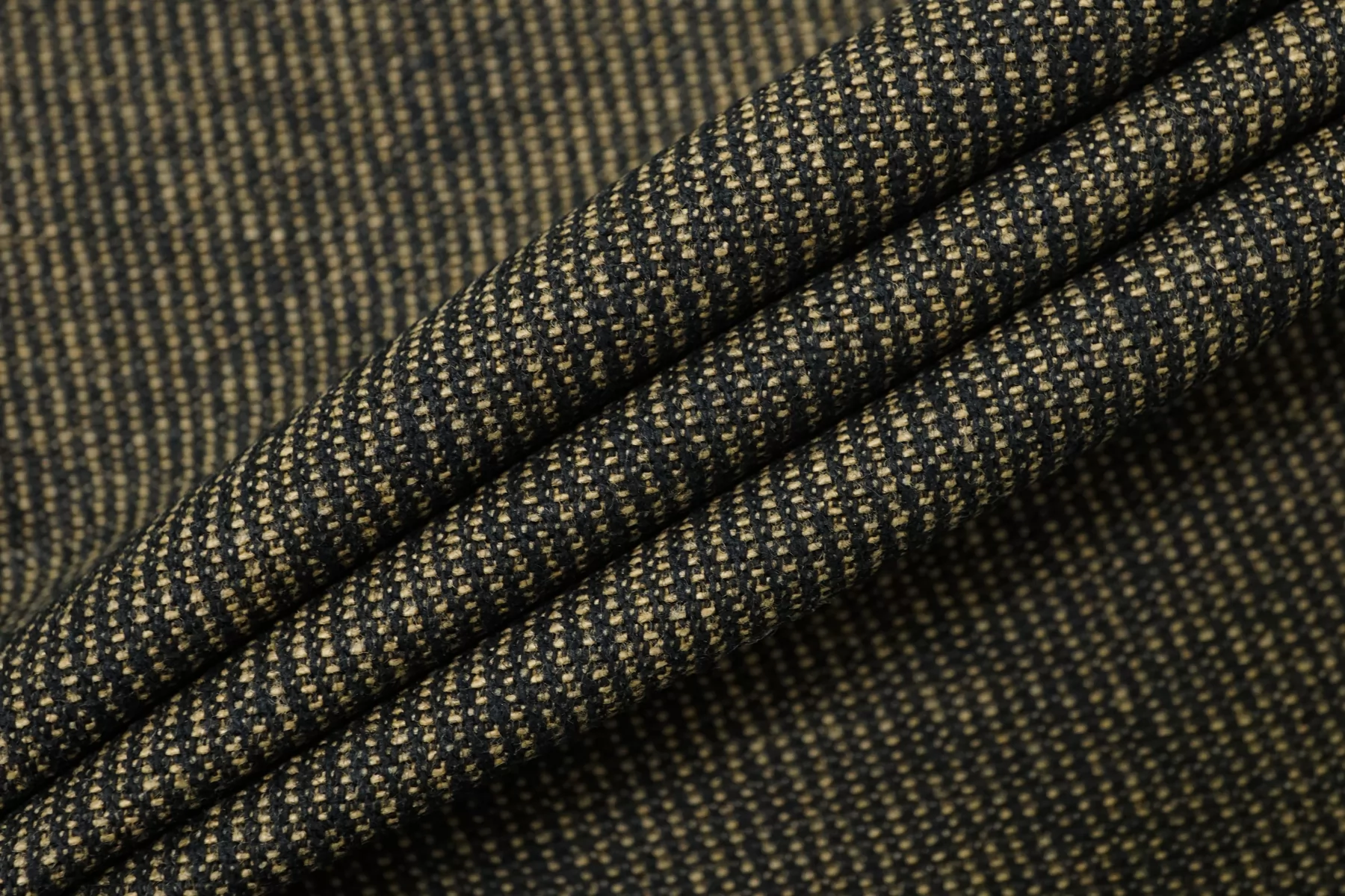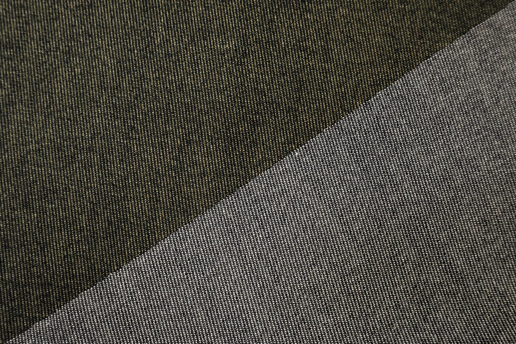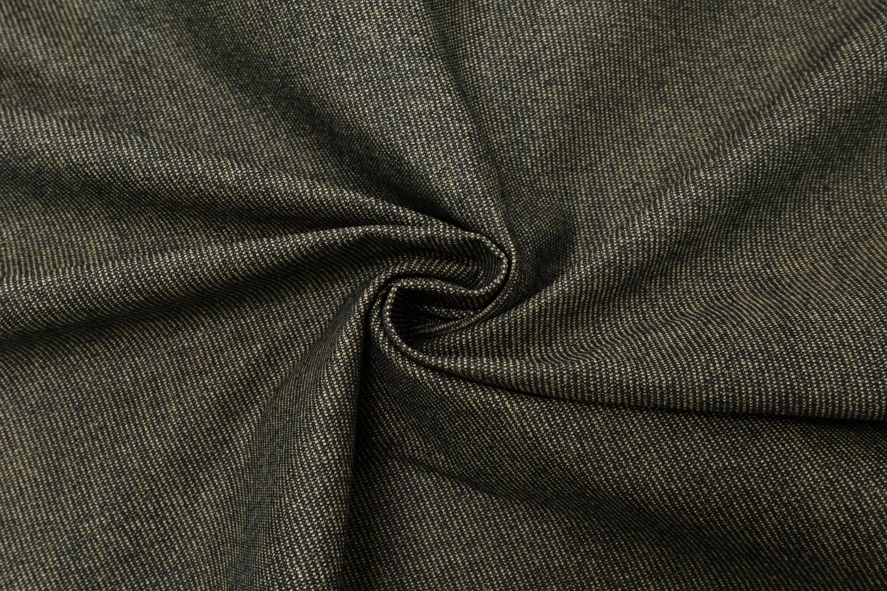 Прекрасная хлопковая джинса в темном оттенке хаки. Тактильно грубоватая, по ощущениям с пропиткой с лицевой стороны. Плотная, но немного пластичная. Форму держит очень хорошо. Не тянется. Матовая. Не мнется. Не просвечивает. Отлично подойдет на куртки, жакеты, юбки или брюки.