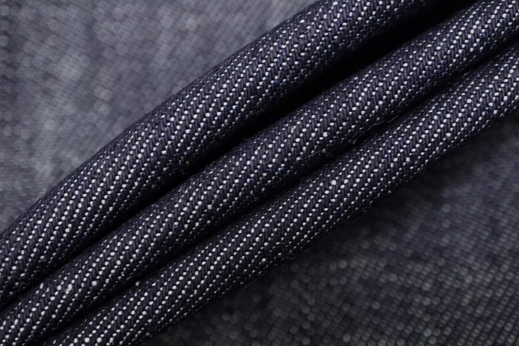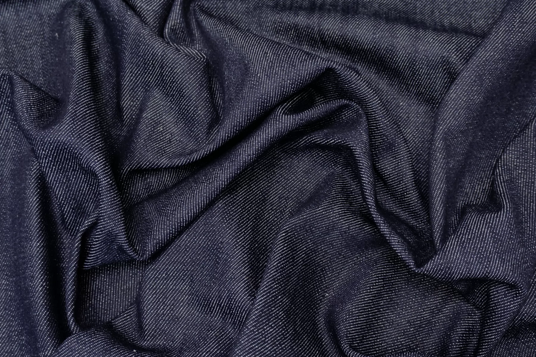 Прекрасная хлопковая джинса тёмно-синего цвета с белыми нитями в плетении. Тактильно немного суховата. Средней плотности. Держит форму, умеренной пластичности. Немного тянется. Немного сминается, но восстанавливается практически полностью. Не просвечивает. Отлично подойдет на платья, лёгкие куртки, юбки и брюки.