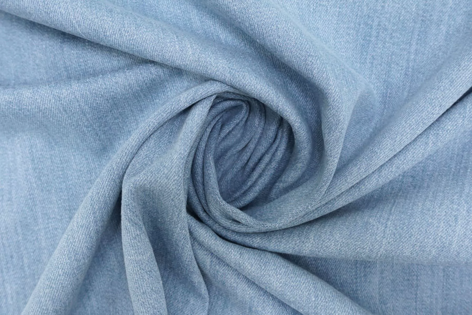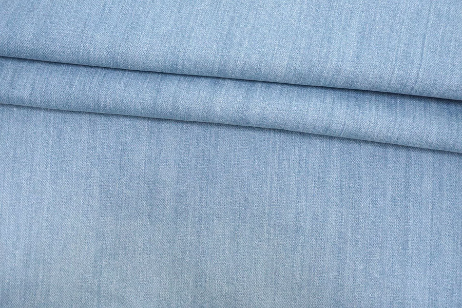 Хлопковая джинса костюмно-плательной плотности с легким эффектом варенки в голубом цвете (с белыми нитями в плетении). Мягкая и приятная. Слегка тянется за счет небольшого содержания эластана. Не просвечивает. Неплохо держит форму. Немного сминается. Отлично подойдет на пошив куртки, шорт, платья, джинс или юбки.