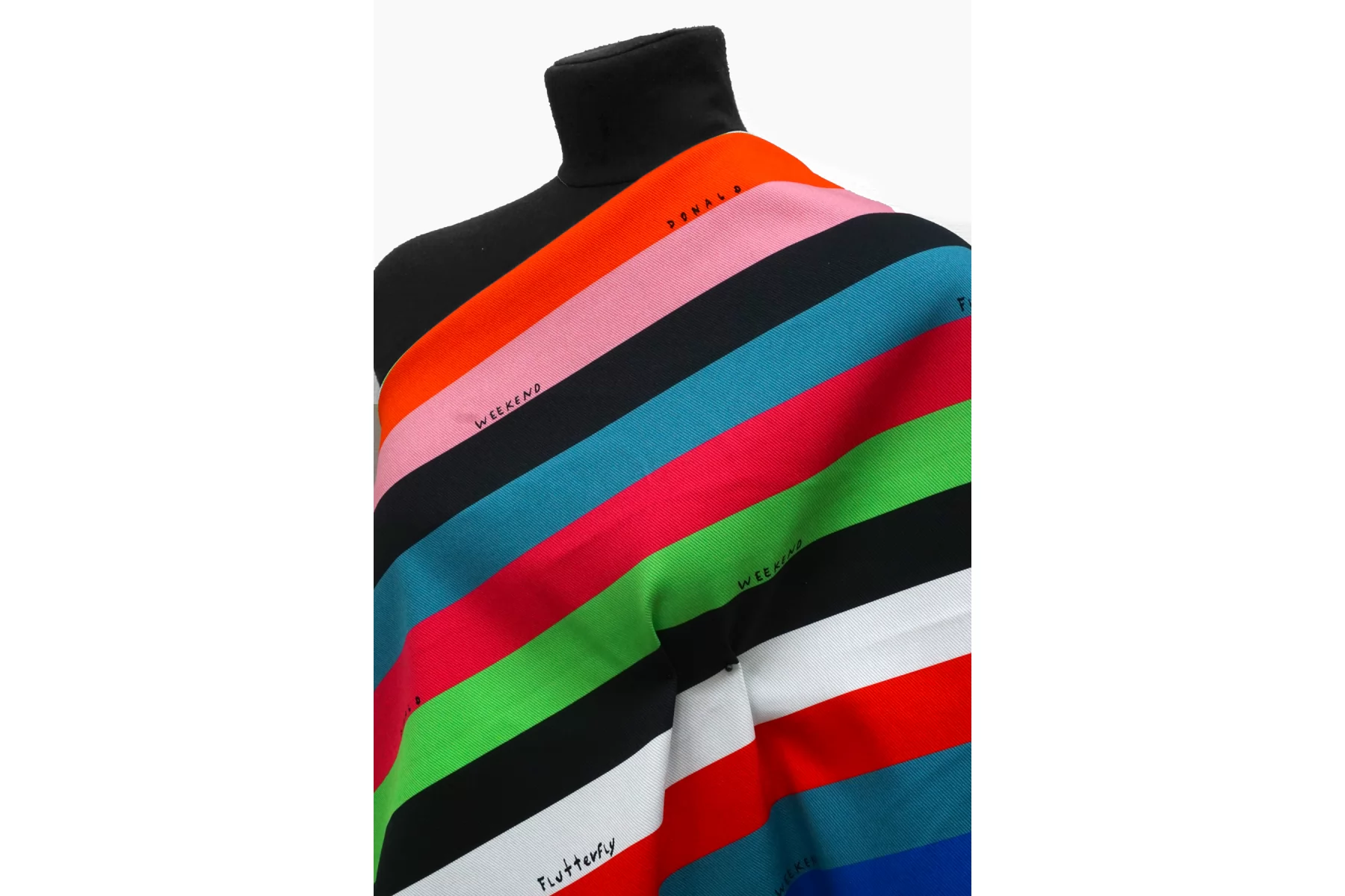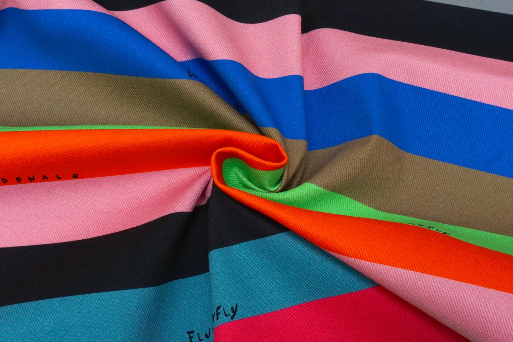 Хлопковая джинса диагонального плетения от бренда Max Mara, с принтом в виде поперечных полос разного цвета. Пластичная, средней плотности, фактура плетения слегка ощущается. Тянется, не просвечивает. Прекрасно держит форму. Отлично подойдет на пошив жакета, бомбера, куртки, юбки или шорт.