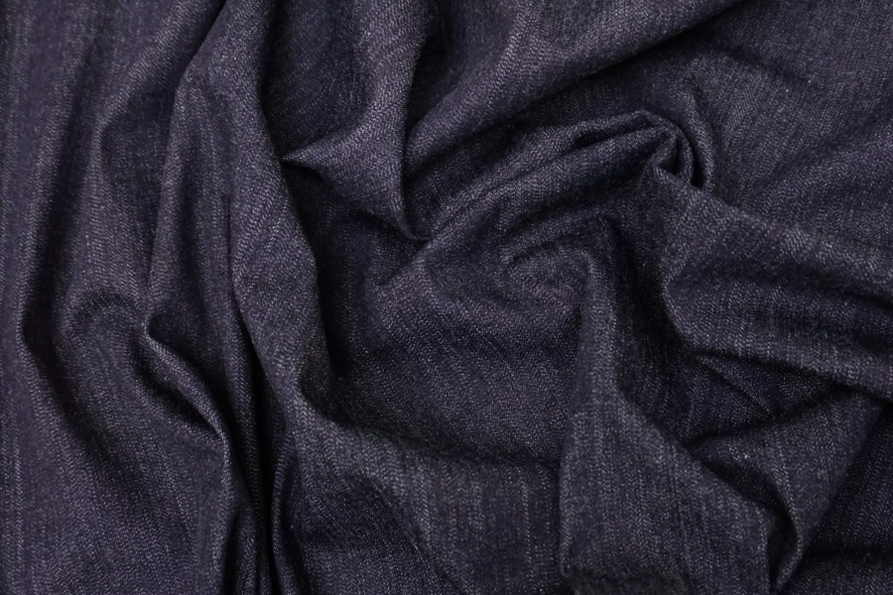 Хлопковая джинса стрейч плательно-костюмной плотности темно-синего глубокого оттенка. Достаточно плотненькая, но при этом тонкая. Тактильно приятная, мягкая. Проглядывают в плетении диагоналей белые нити. Тянется за счет добавления эластана. Формодержащая. Не просвечивает. Немного мнется, но почти полностью восстанавливается. Шьем платья, куртки, мягкие жакеты, юбки, шорты и свободные джинсы.