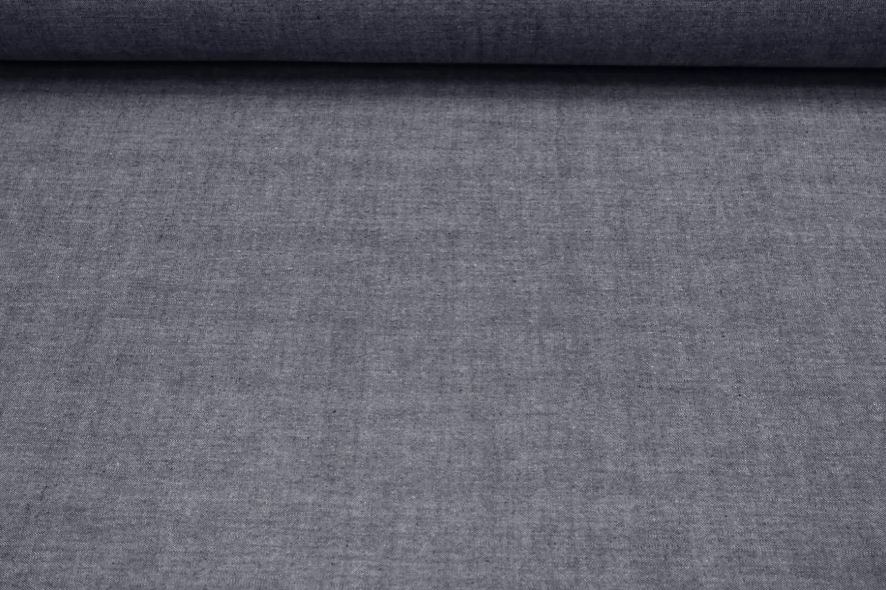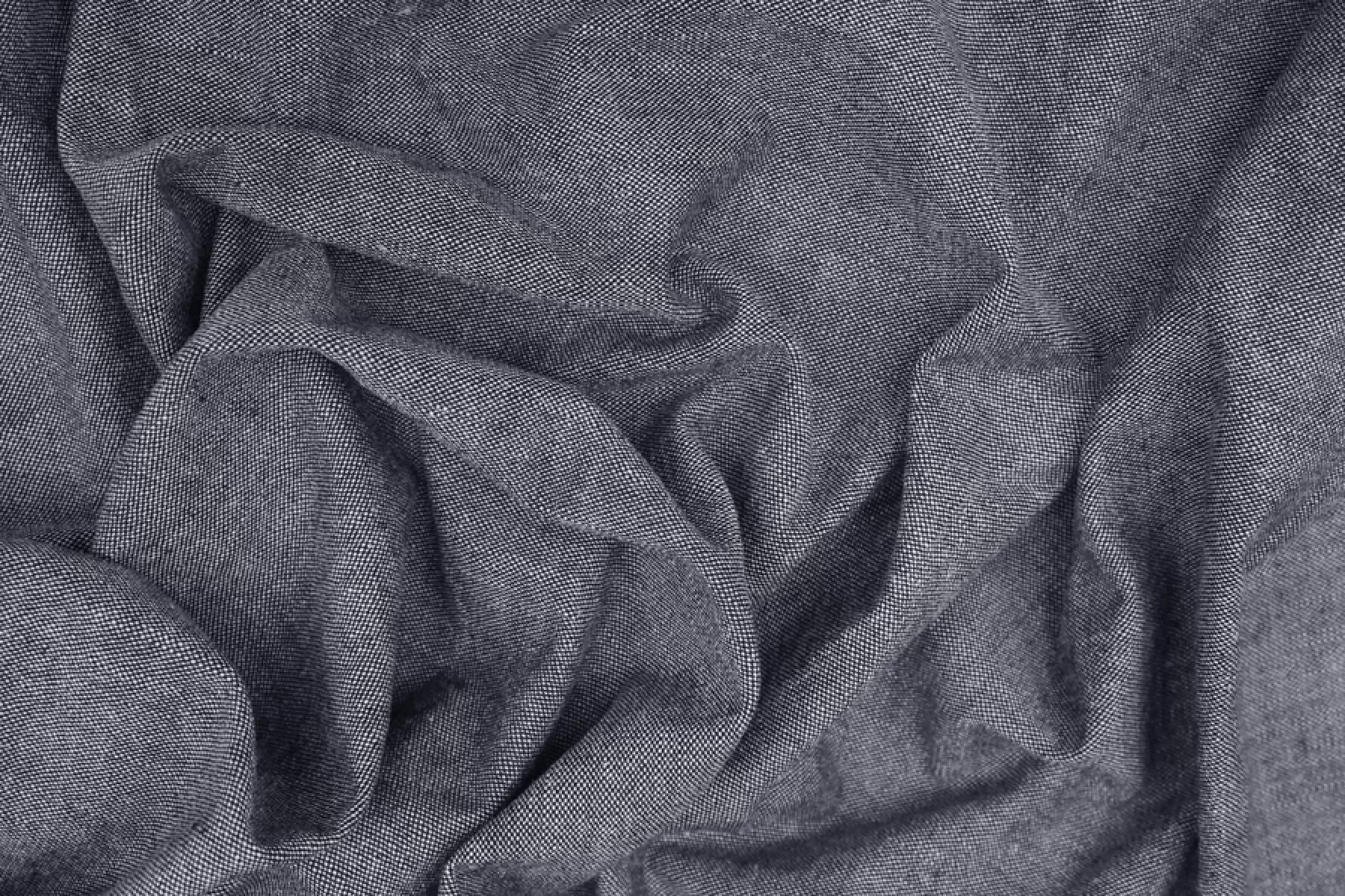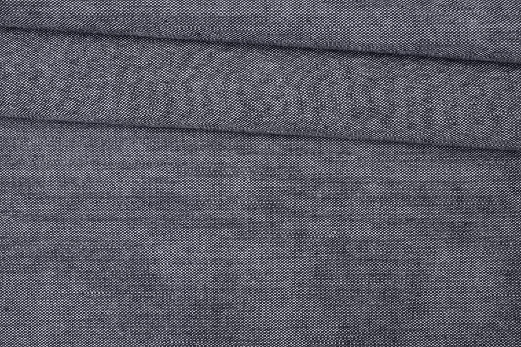 Хлопковая джинса отличного качества, полотняного переплетения из нитей черно-синего и белого оттенков. Тактильно ткань приятная, плотная. Пластичная, хорошо драпируется и держит форму. Не просвечивает, слегка тянется за счет плетения. Отличный вариант на куртки, жакеты, платья, брюки или юбки.
