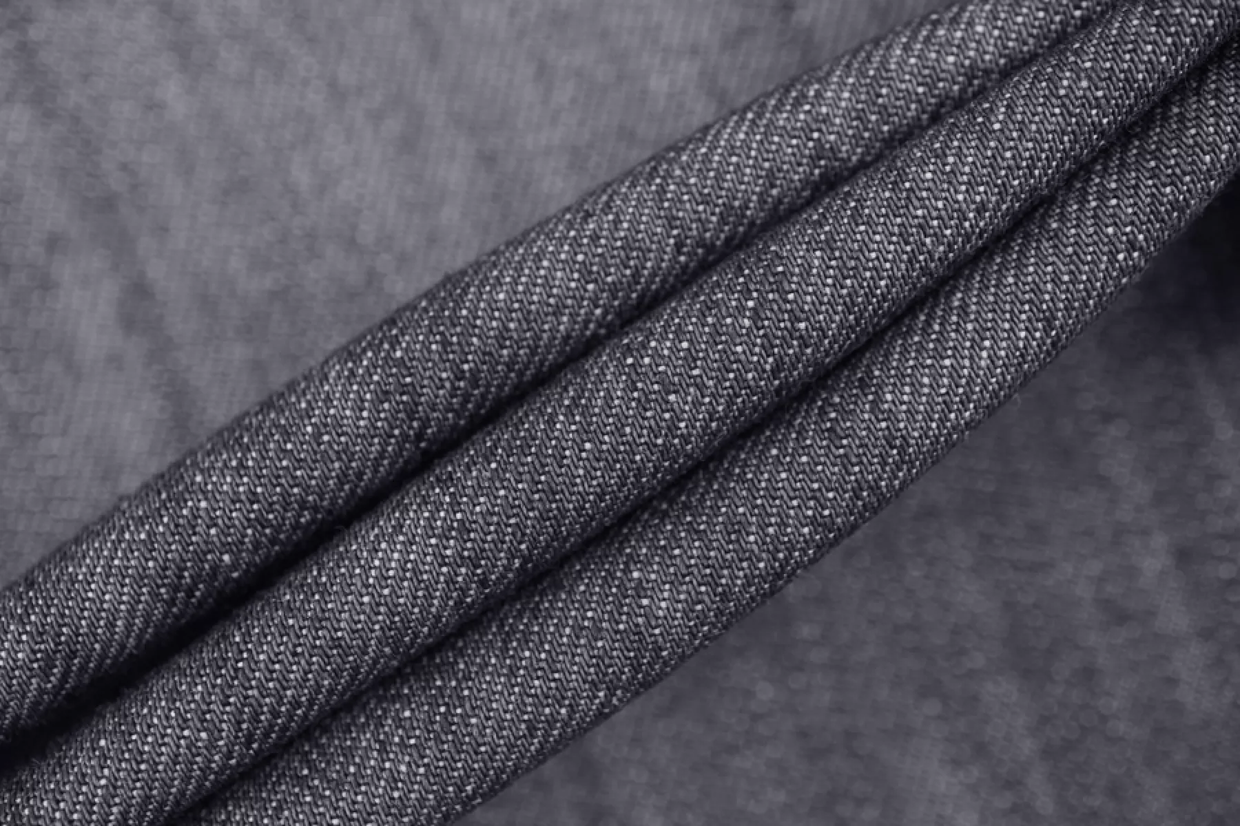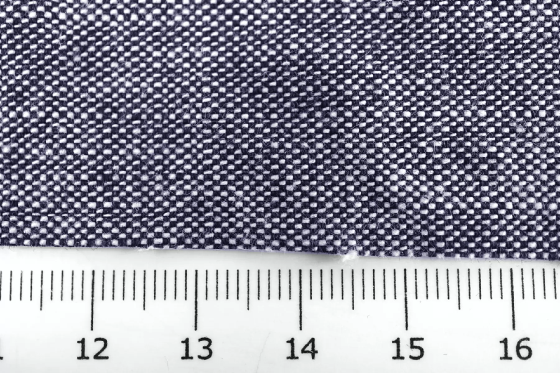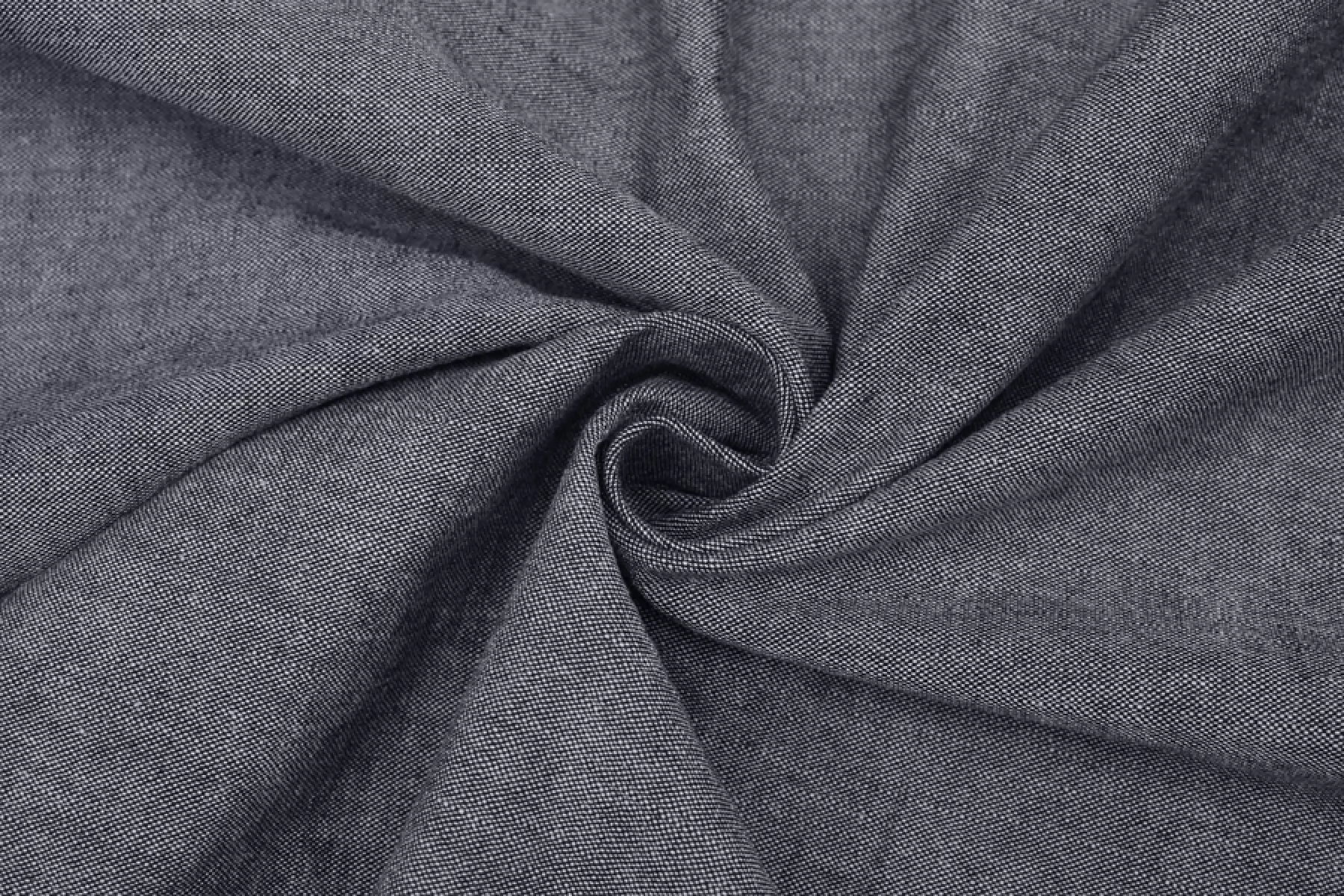 Хлопковая джинса отличного качества, полотняного переплетения из нитей черно-синего и белого оттенков. Тактильно ткань приятная, плотная. Пластичная, хорошо драпируется и держит форму. Не просвечивает, слегка тянется за счет плетения. Отличный вариант на куртки, жакеты, платья, брюки или юбки.