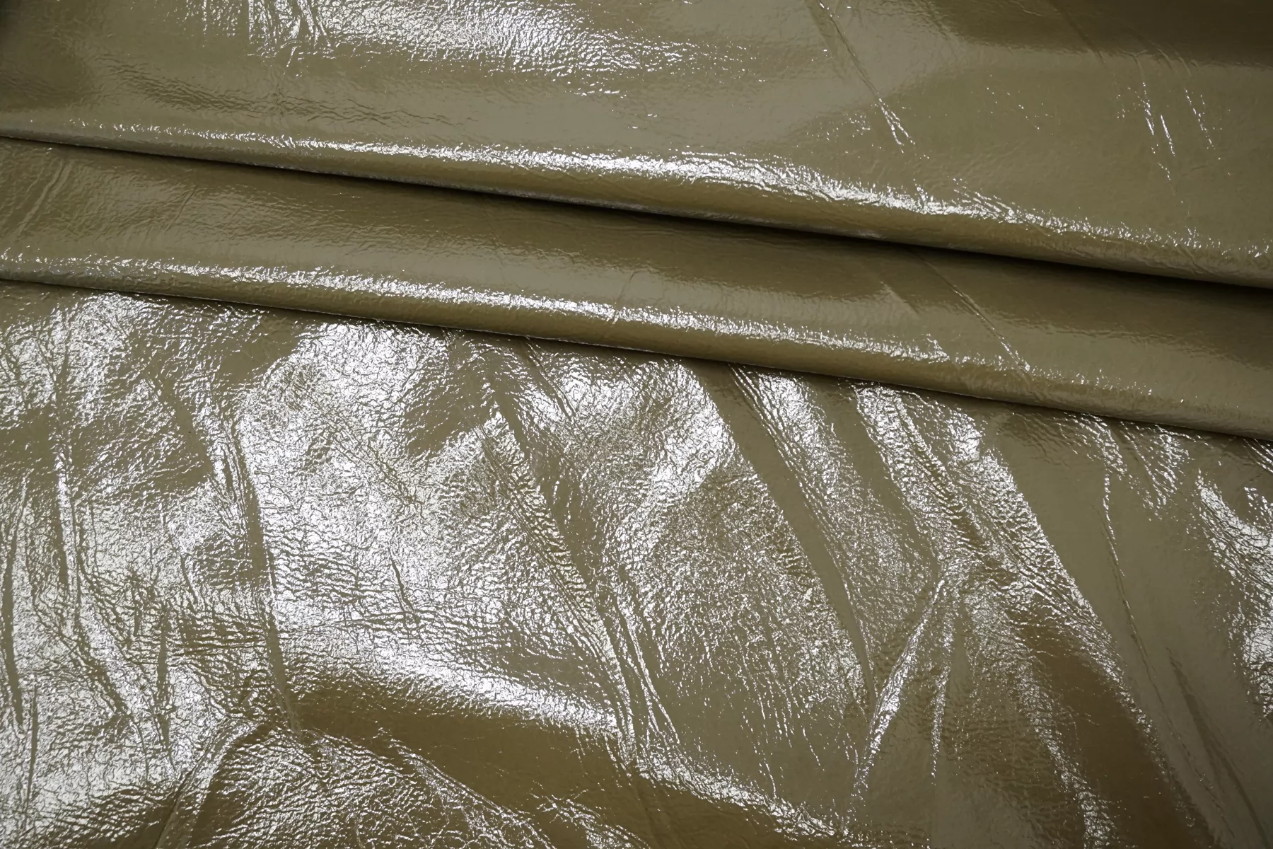 Экокожа лаке на трикотаже Хаки CVC H17/1 LL40 21112511