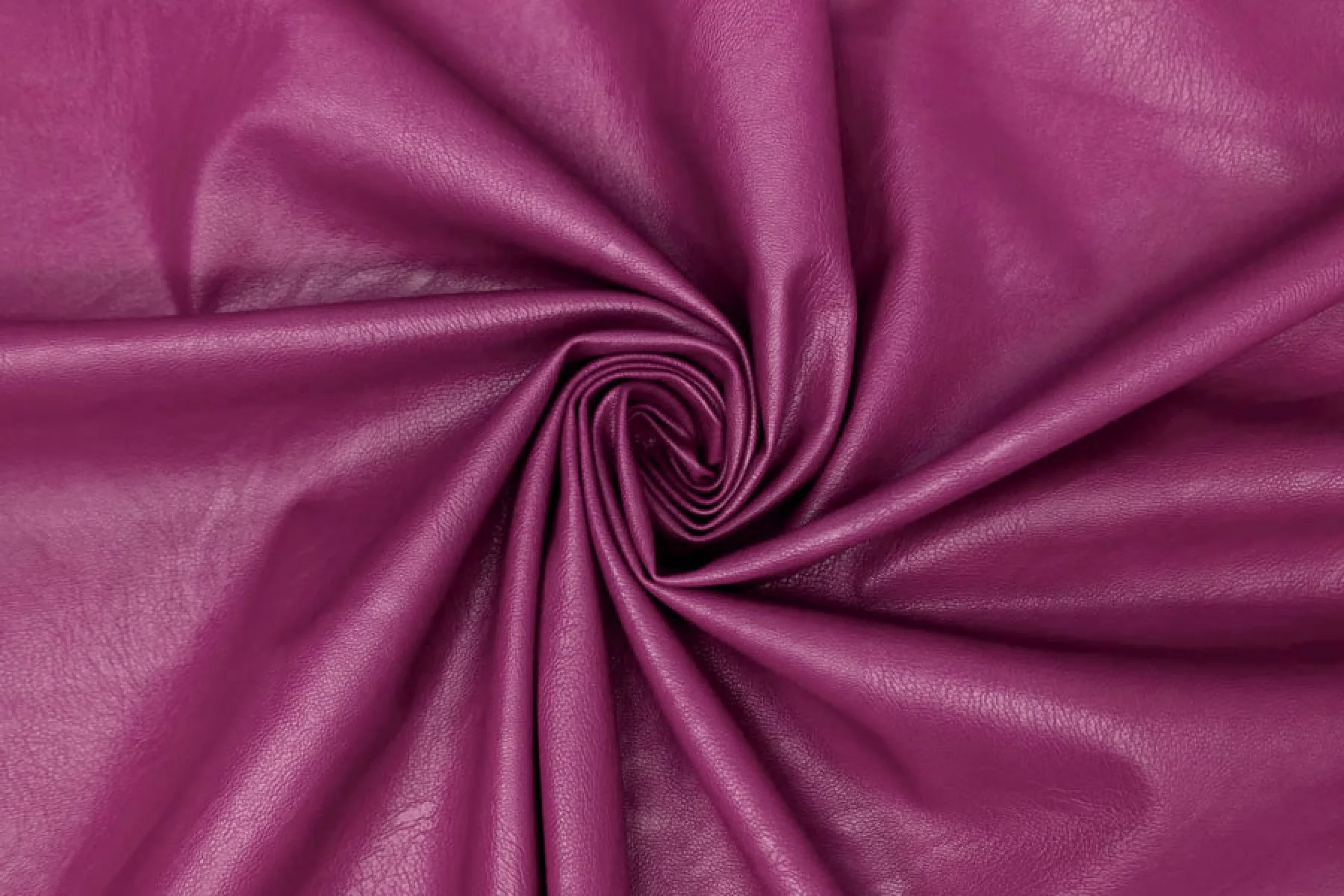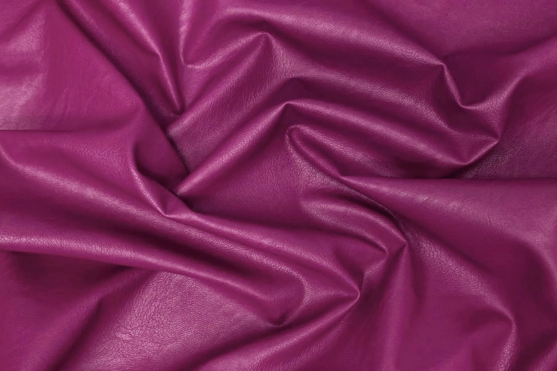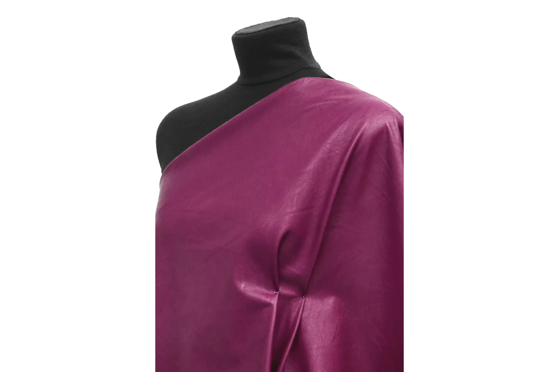Экокожа на хлопковой основе от бренда Max Mara в насыщенном, затемнённом оттенке фуксии. Изнаночная сторона - светло-бежевая. Не просвечивает. Средней плотности, из-за натуральной основы может слегка мяться, но восстанавливается и хорошо отпаривается. Пластичная, слегка фактурная, с мелкой "зернистостью", матовая, немного тянется за счет плетения. Мягкая, приятная как с лицевой, так и с изнаночной стороны. Неплохо держит форму. Классный вариант для весенней, осенней одежды и не только. Отлично подойдет на юбки, платья, жакеты, куртки, жилеты, шорты и другие варианты.