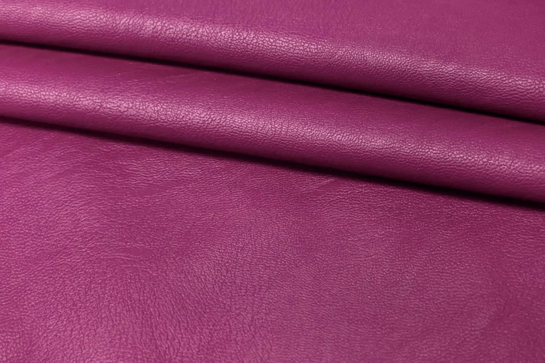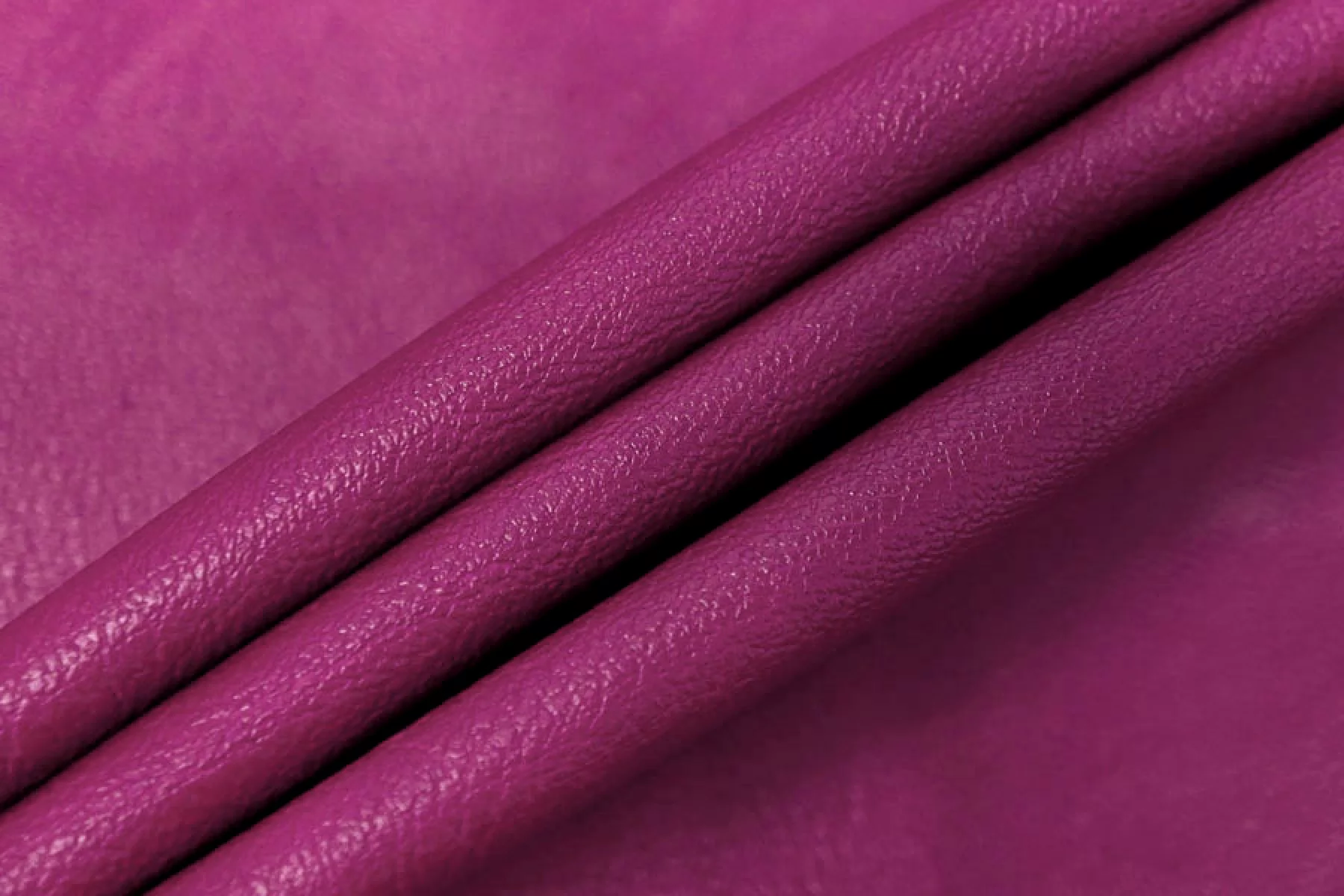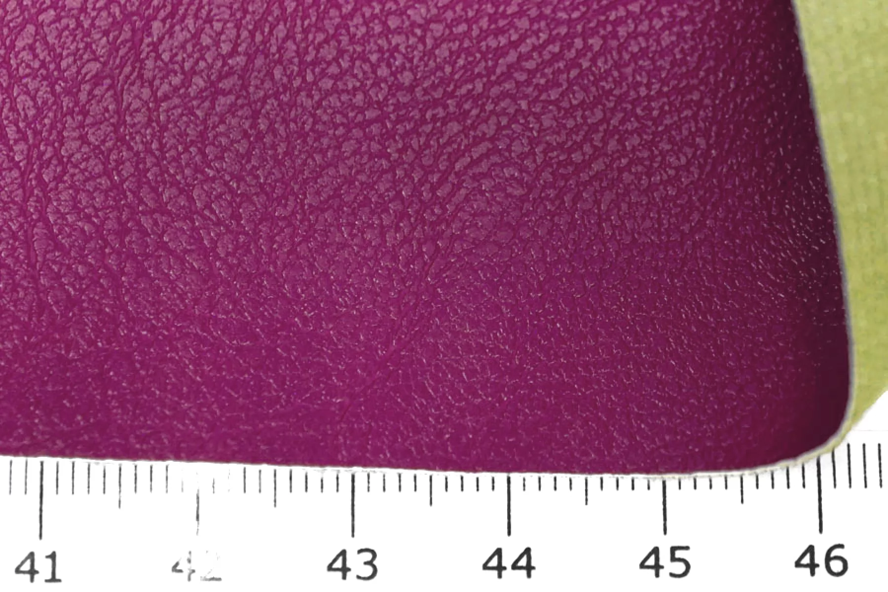 Экокожа на хлопковой основе от бренда Max Mara в насыщенном, затемнённом оттенке фуксии. Изнаночная сторона - светло-бежевая. Не просвечивает. Средней плотности, из-за натуральной основы может слегка мяться, но восстанавливается и хорошо отпаривается. Пластичная, слегка фактурная, с мелкой "зернистостью", матовая, немного тянется за счет плетения. Мягкая, приятная как с лицевой, так и с изнаночной стороны. Неплохо держит форму. Классный вариант для весенней, осенней одежды и не только. Отлично подойдет на юбки, платья, жакеты, куртки, жилеты, шорты и другие варианты.