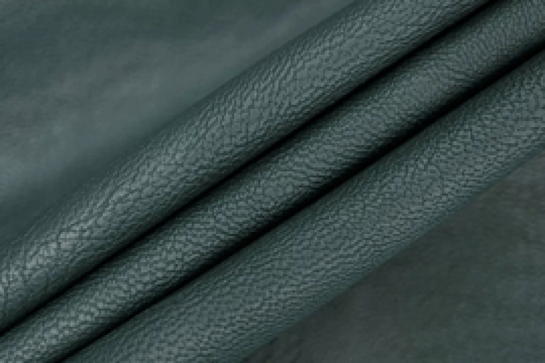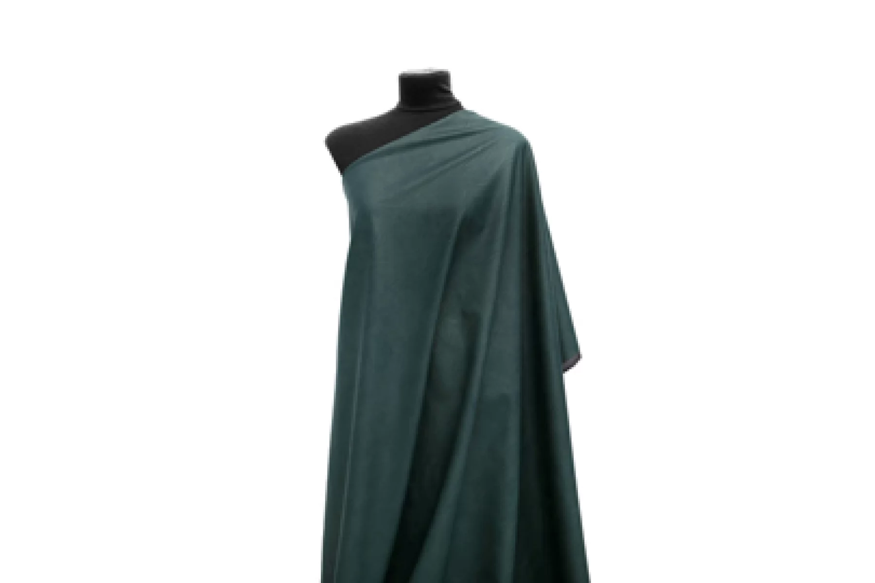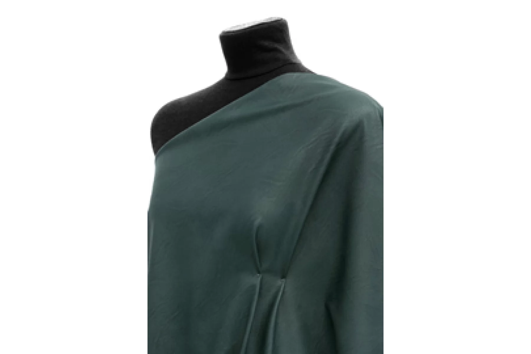 Экокожа на хлопковой основе от бренда Max Mara в насыщенном, затемнённом бирюзовом цвете. Изнаночная сторона - светло-бежевая. Не просвечивает. Средней плотности, из-за натуральной основы может слегка мяться, но восстанавливается и хорошо отпаривается. Пластичная, слегка фактурная, с мелкой "зернистостью", матовая, немного тянется за счет плетения. Мягкая, приятная как с лицевой, так и с изнаночной стороны. Неплохо держит форму. Классный вариант для весенней, осенней одежды и не только. Отлично подойдет на юбки, платья, жакеты, куртки, жилеты, шорты и другие варианты.