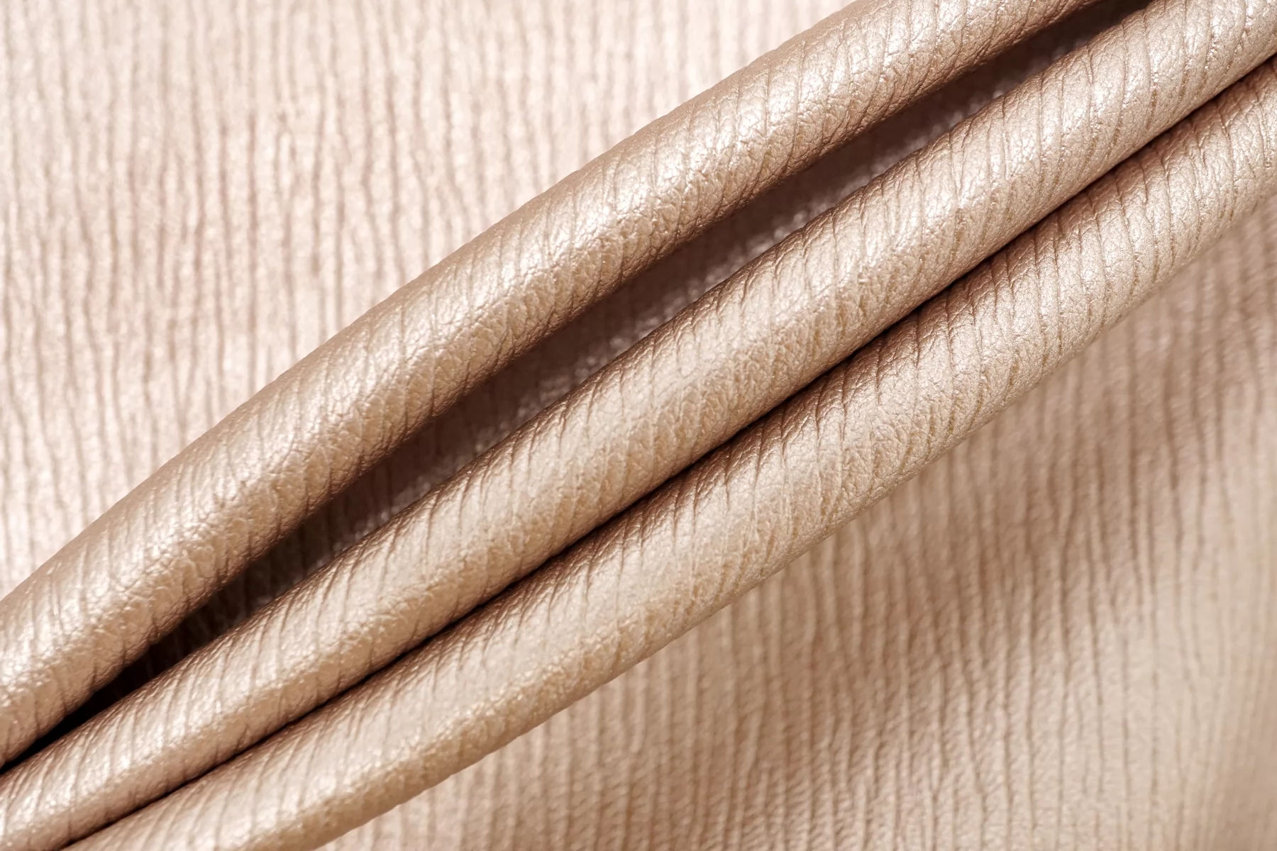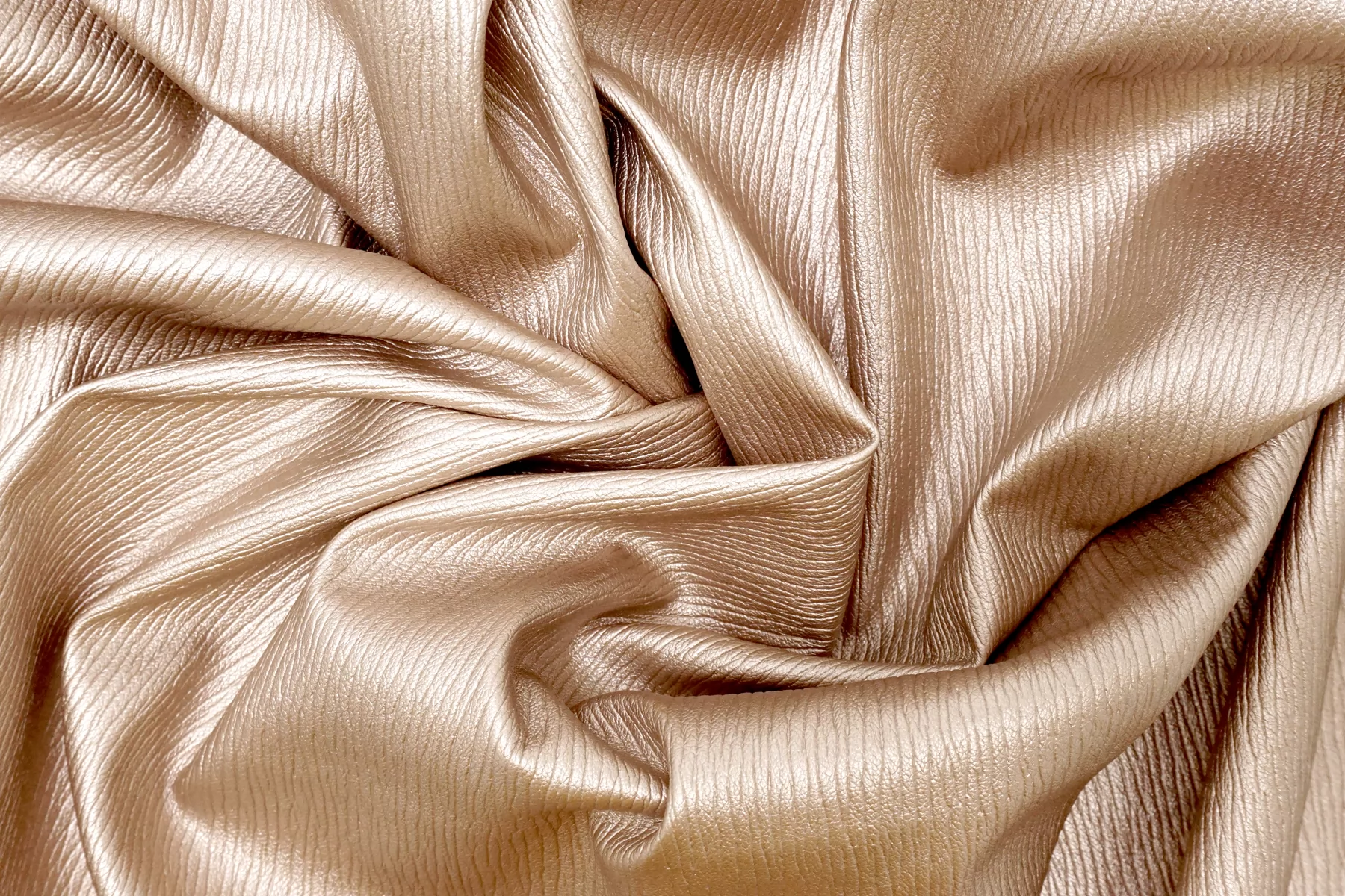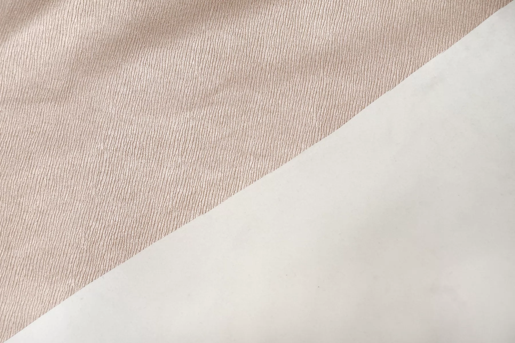 Итальянская экокожа в красивом оттенке, розового золота. Фактурное тиснение под кожу слона. Изнанка - белый трикотаж, с приятным утеплением как у фланели. Приятная тактильно, тянется, не просвечивает, пластичная но при этом держит форму. Подойдет для пошива платья, плотных брюк, юбки, куртки, плаща.