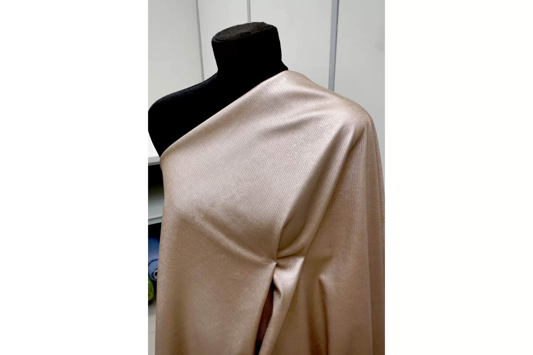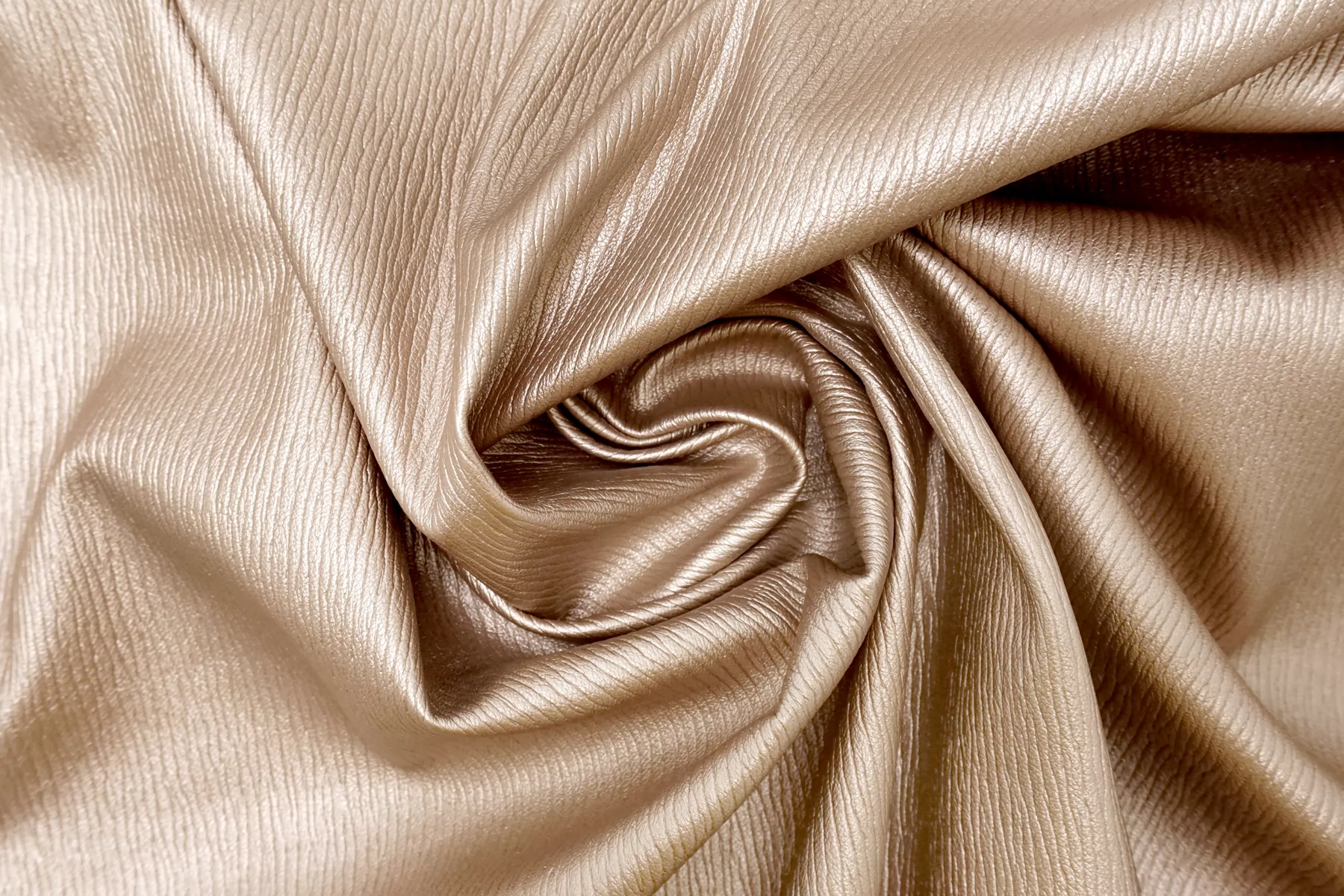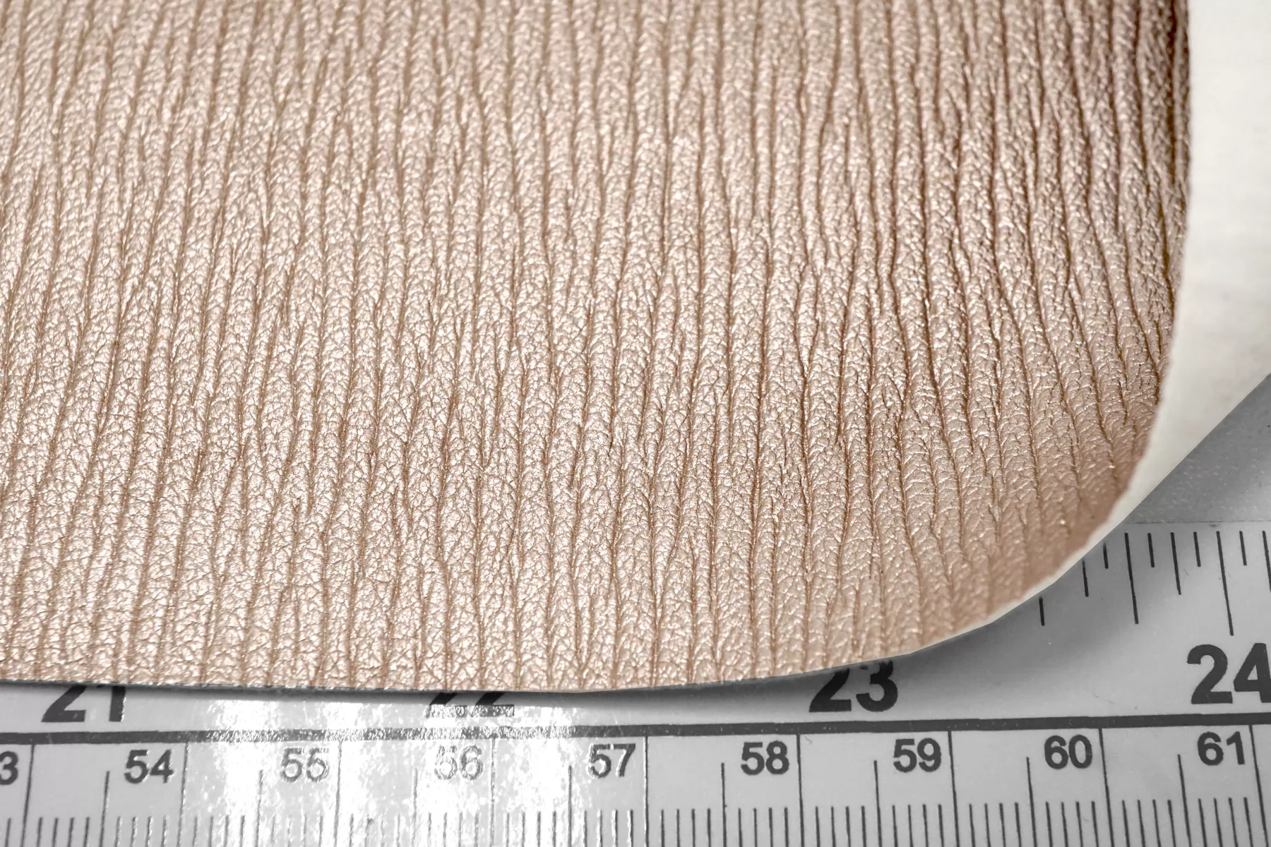 Итальянская экокожа в красивом оттенке, розового золота. Фактурное тиснение под кожу слона. Изнанка - белый трикотаж, с приятным утеплением как у фланели. Приятная тактильно, тянется, не просвечивает, пластичная но при этом держит форму. Подойдет для пошива платья, плотных брюк, юбки, куртки, плаща.