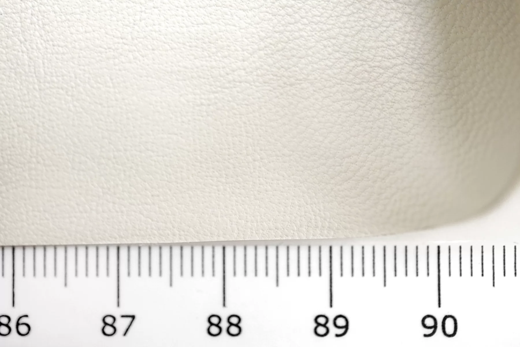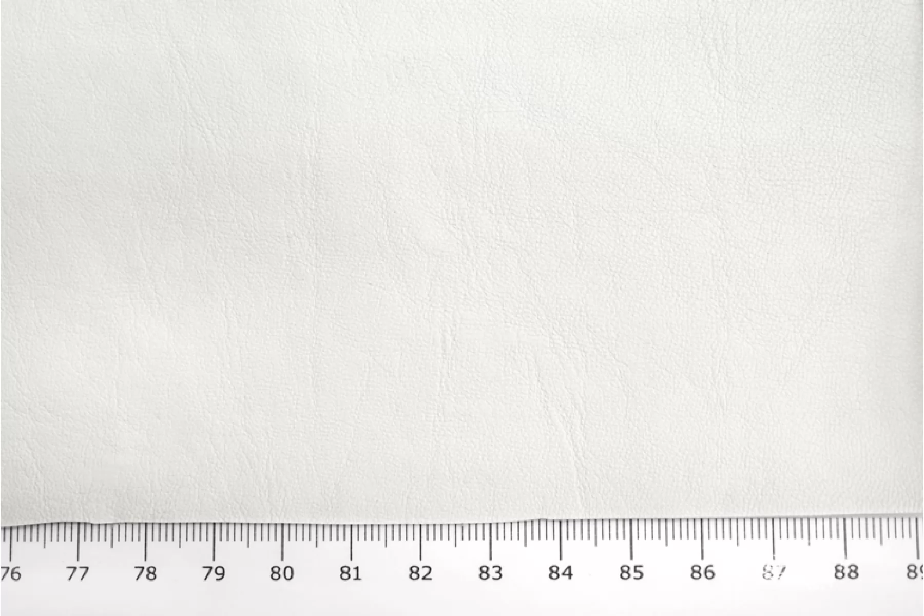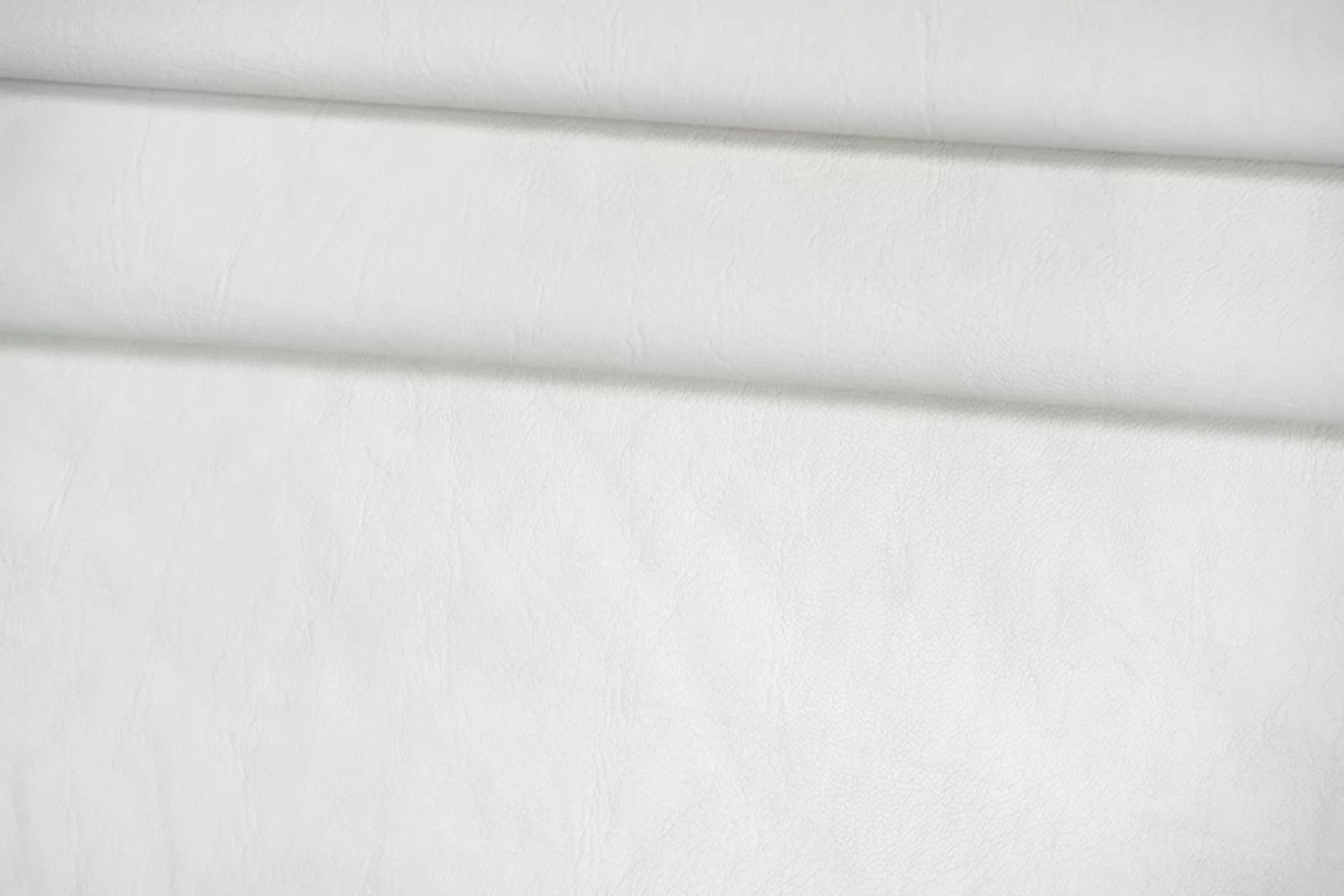 Итальянская экокожа на вискозной основе белого оттенка. Не просвечивает. Средней плотности, из-за натуральной основы может мяться, но хорошо отпаривается. Пластичная, гладкая, немного тянется. Можно сшить тонкую кожанку для теплой погоды, плотную рубашку, платье, сарафан, шорты, брюк, мягкий пиджак.