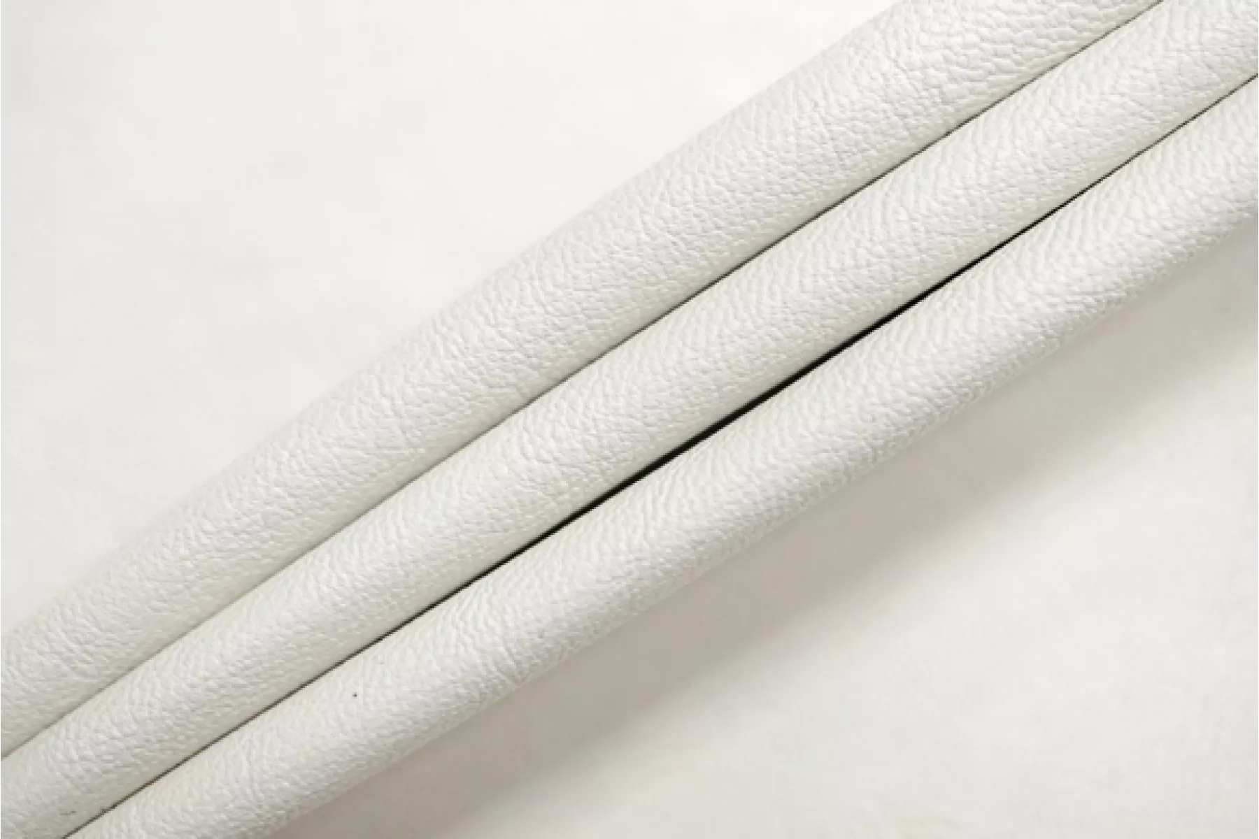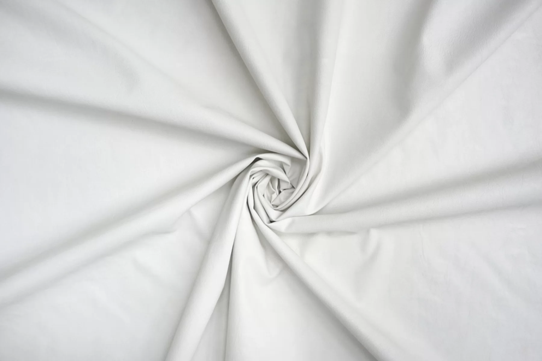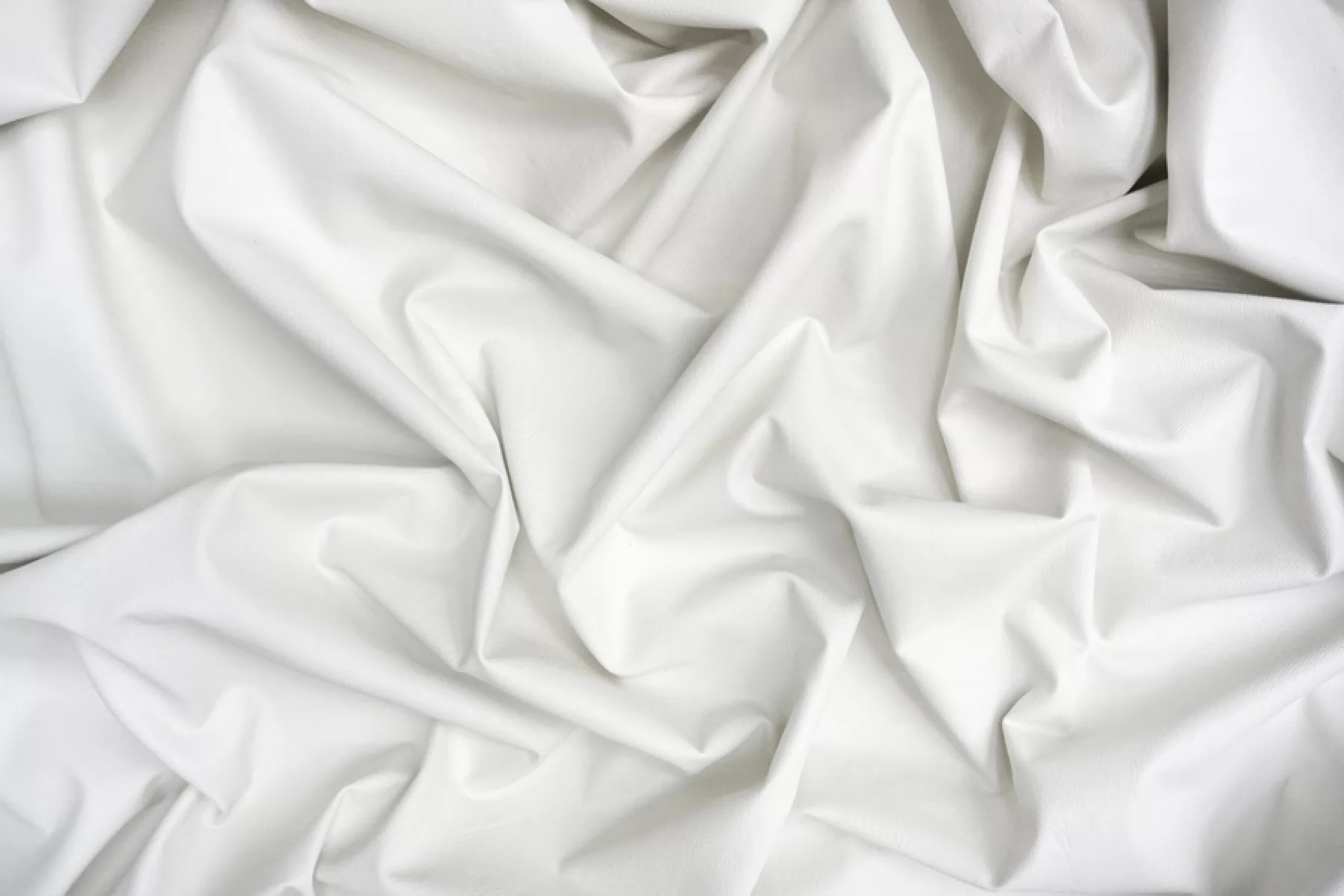 Итальянская экокожа на вискозной основе белого оттенка. Не просвечивает. Средней плотности, из-за натуральной основы может мяться, но хорошо отпаривается. Пластичная, гладкая, немного тянется. Можно сшить тонкую кожанку для теплой погоды, плотную рубашку, платье, сарафан, шорты, брюк, мягкий пиджак.