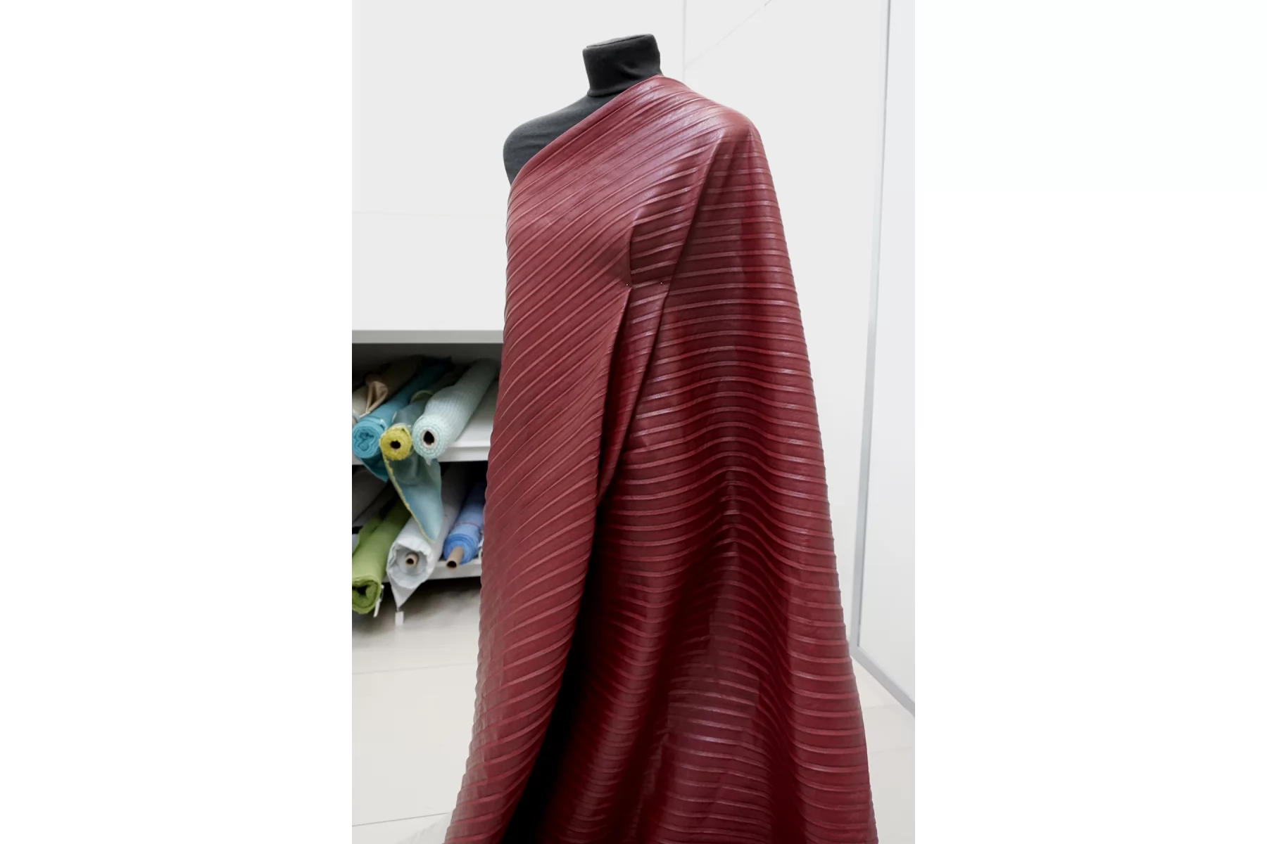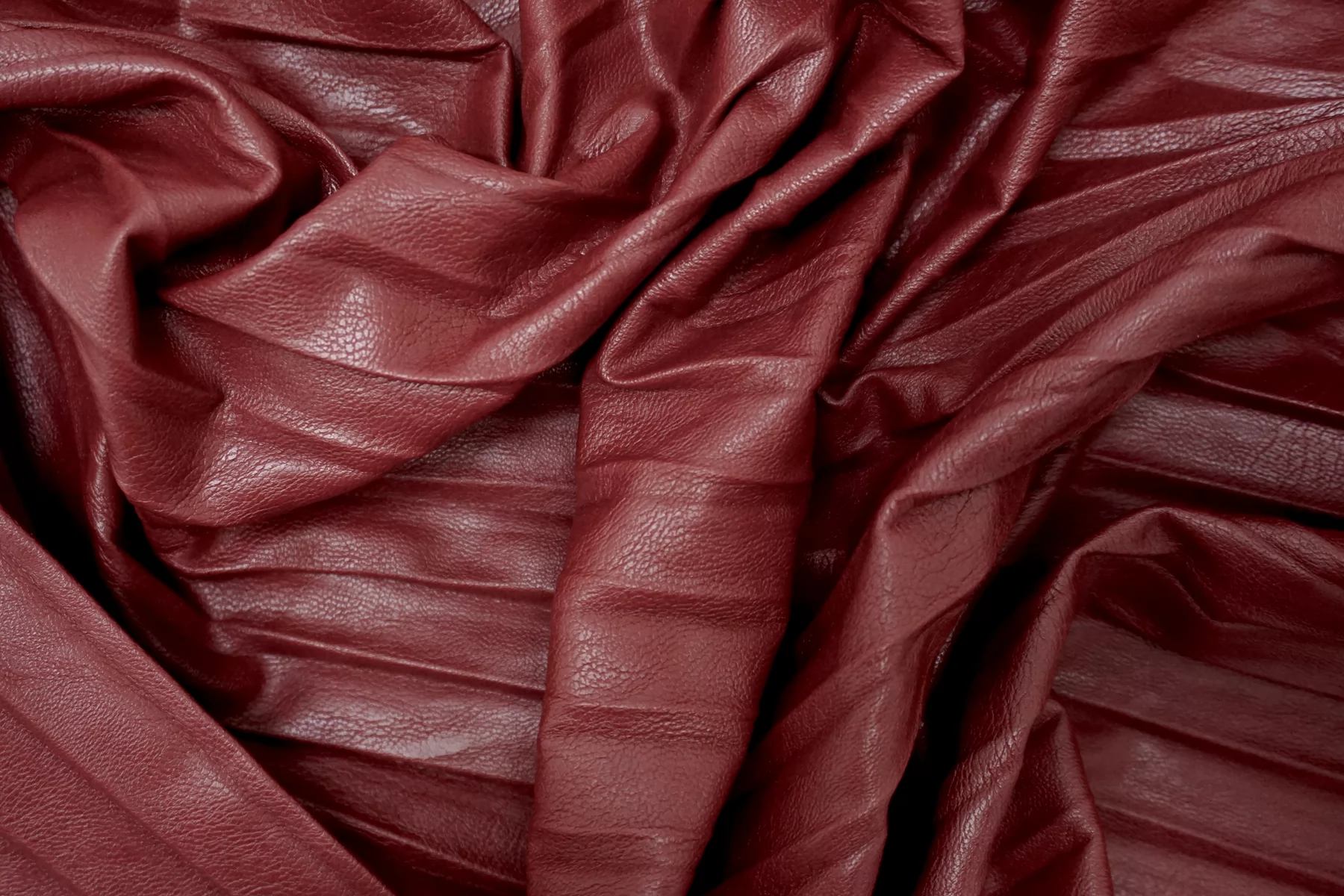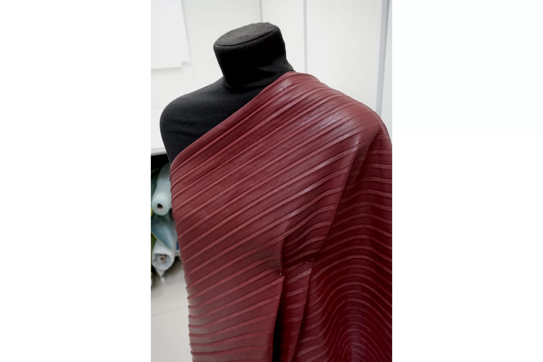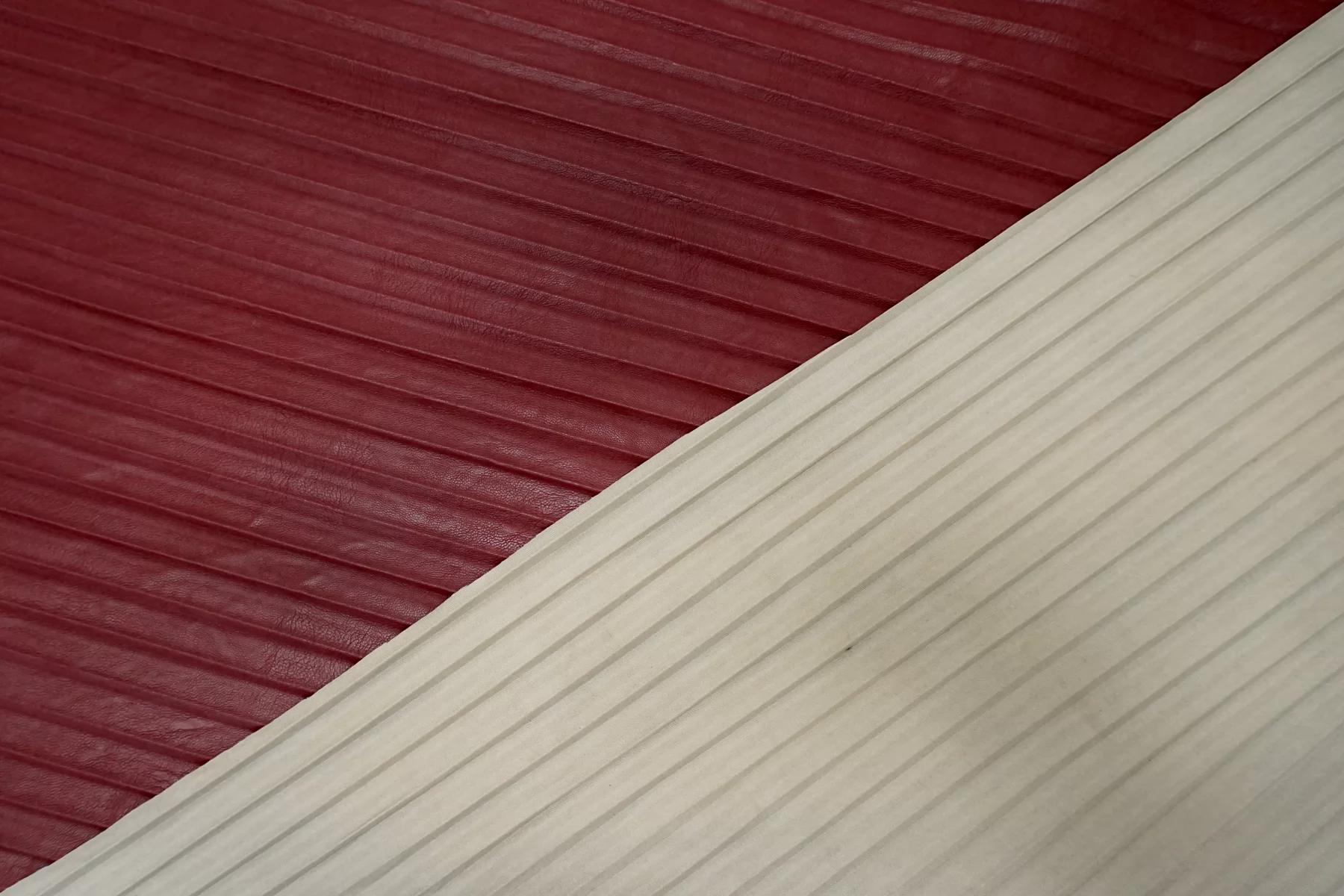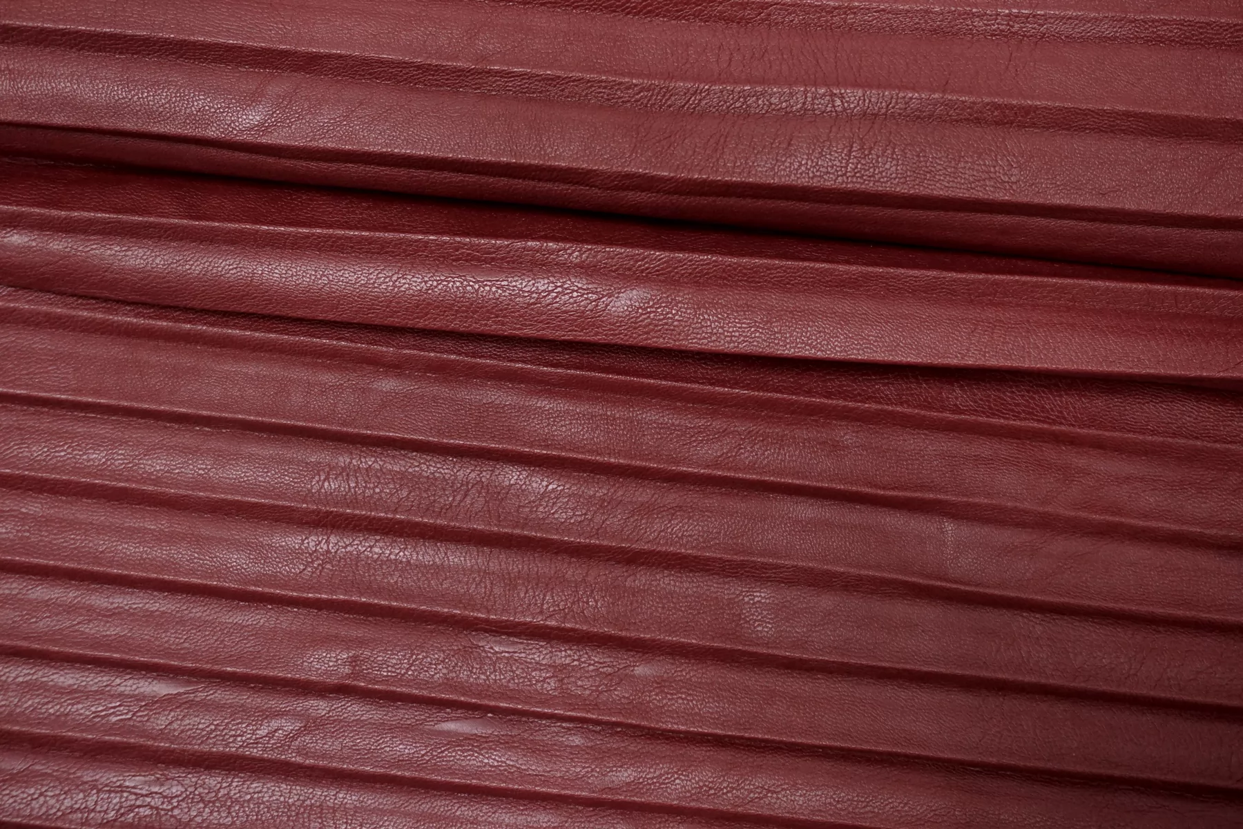 Экокожа плиссе на вискозной основе бордового цвета, изнаночная сторона - светлая бежевая. Не просвечивает. Достаточно плотненькая, из-за натуральной основы может слегка мяться, но восстанавливается и хорошо отпаривается. Пластичная, слегка фактурная, со средней "зернистостью", с красивым лоском, хорошо тянется за счет плетения. Мягкая, приятная как с лицевой, так и с изнаночной стороны. Неплохо держит форму. Классный вариант для весенней, осенней одежды и не только. Отлично подойдет на юбки, платья, жакеты, куртки, жилеты, шорты и другие варианты!