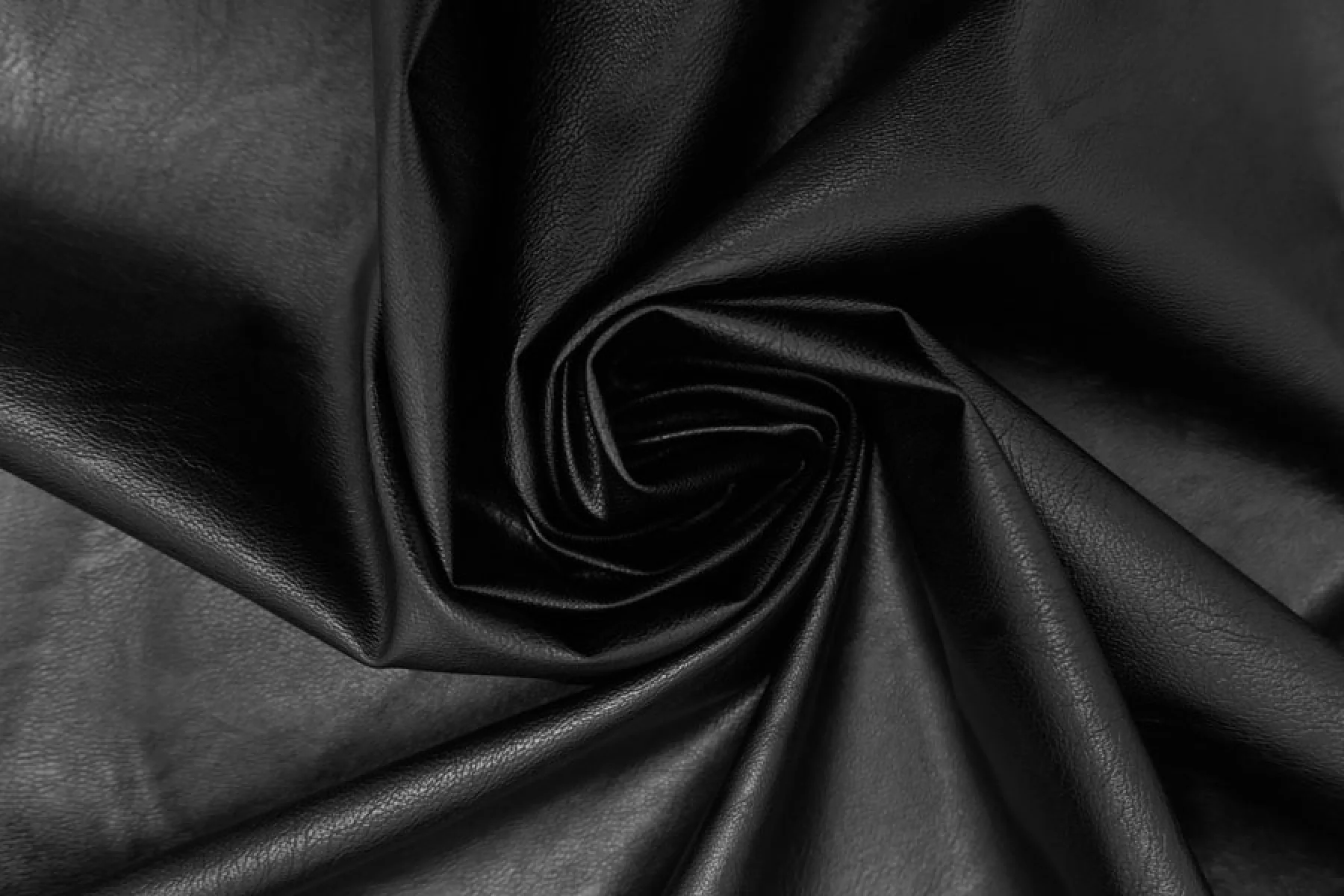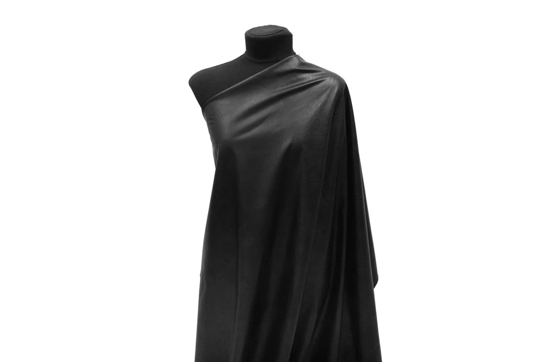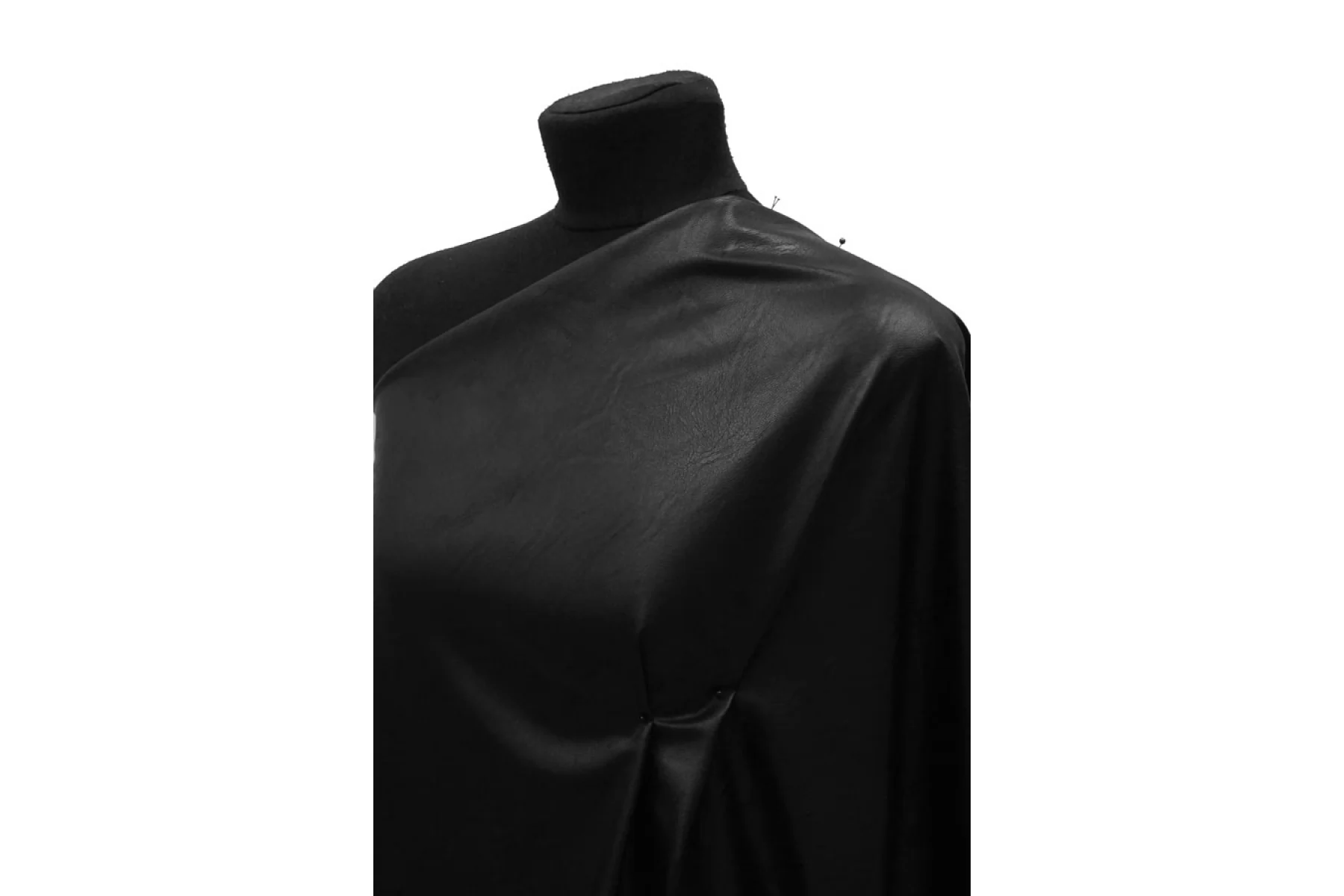 Итальянская экокожа на вискозной основе в чёрном цвете. Не просвечивает. Тонкая, из-за натуральной основы может мяться, но хорошо отпаривается. Пластичная, гладкая, немного тянется. Можно сшить тонкую кожанку для теплой погоды, плотную рубашку, платье, сарафан, шорты, брюк, мягкий пиджак.