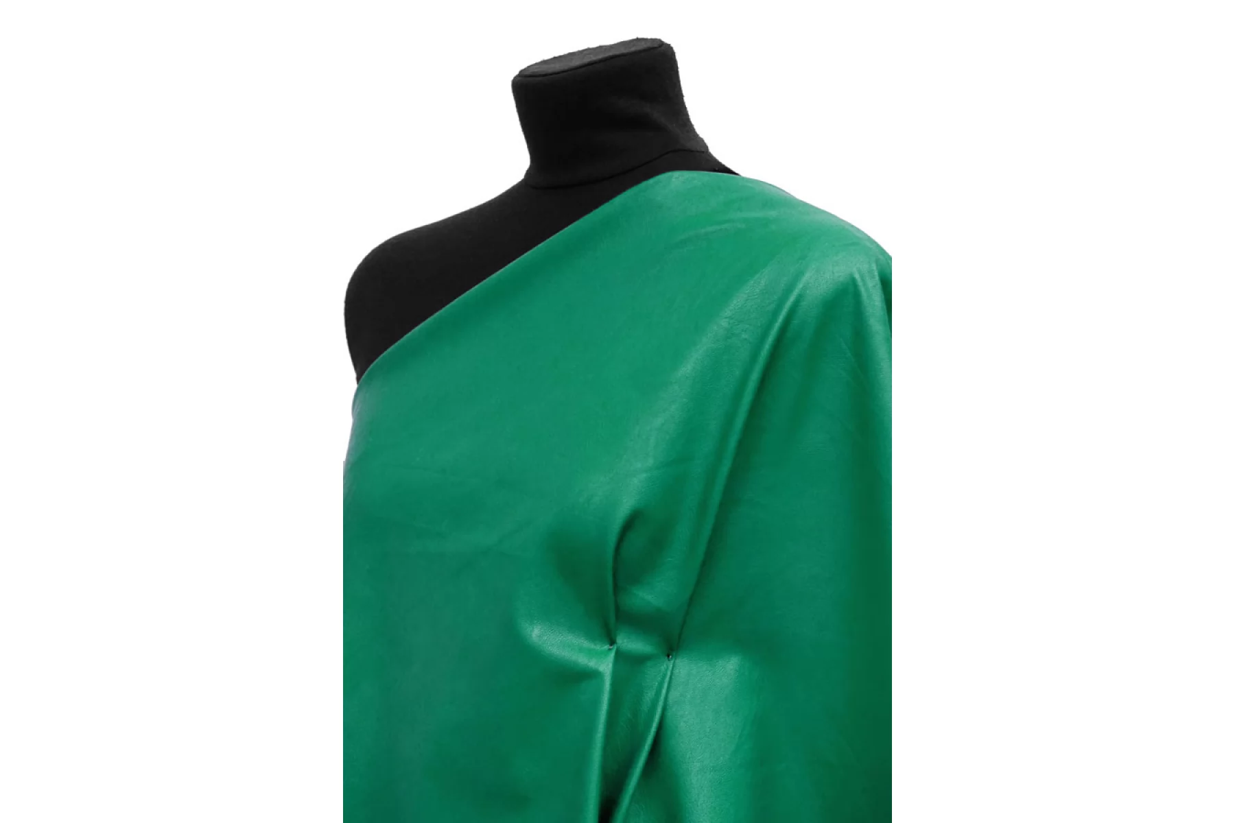 Экокожа на вискозной основе изумрудного оттенка, изнаночная сторона - светлая. Не просвечивает. Плотненькая, из-за натуральной основы может слегка мяться, но восстанавливается и хорошо отпаривается. Пластичная, слегка фактурная, со средней "зернистостью", с красивым лоском, немного тянется за счет плетения. Мягкая, приятная как с лицевой, так и с изнаночной стороны. Неплохо держит форму. Классный вариант для весенней, осенней одежды и не только. Отлично подойдет на юбки, платья, жакеты, куртки, жилеты, шорты и другие варианты!