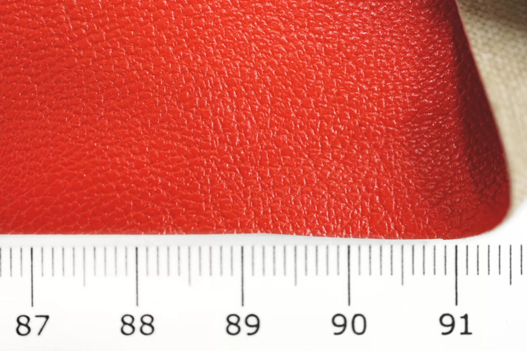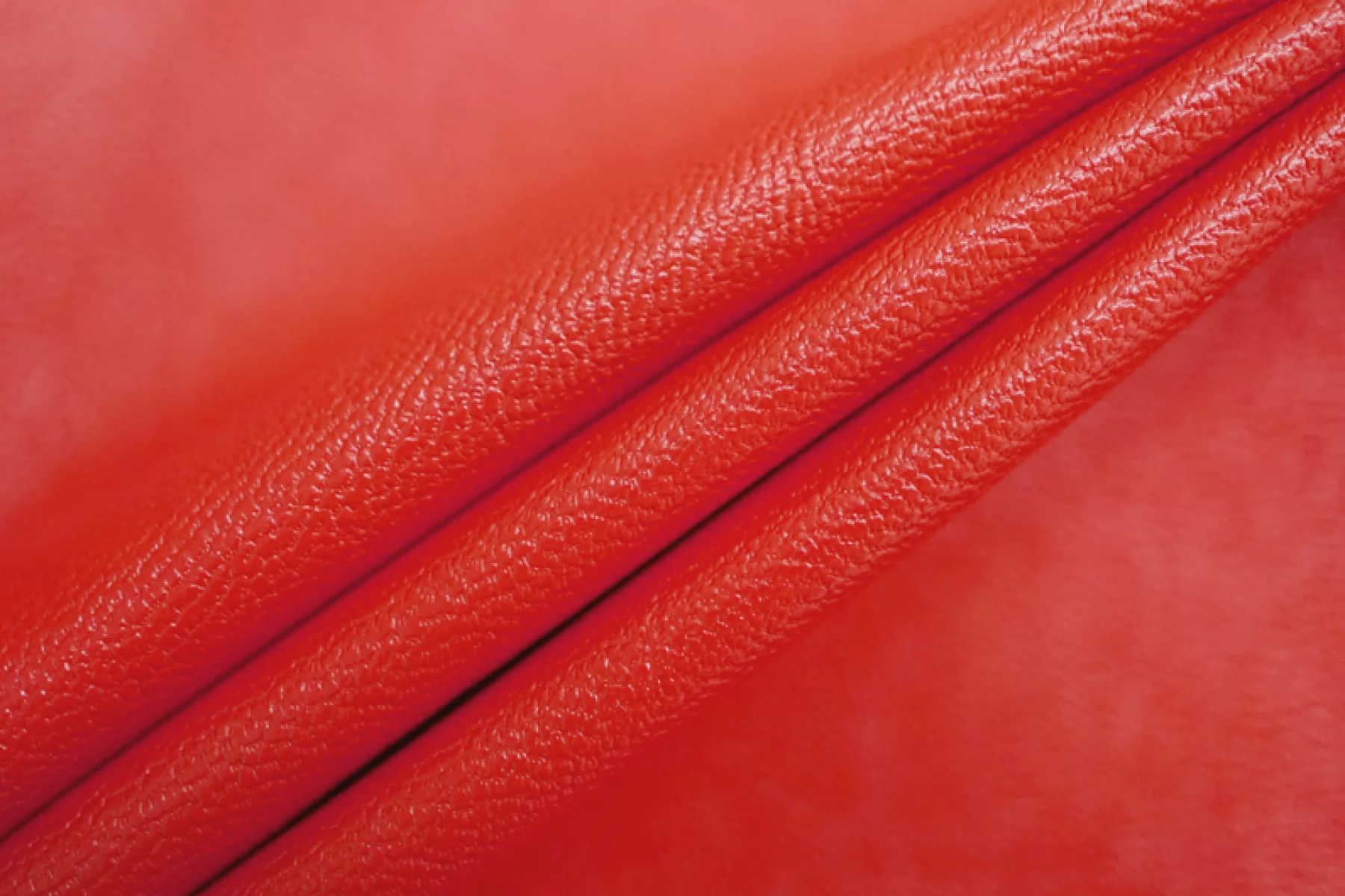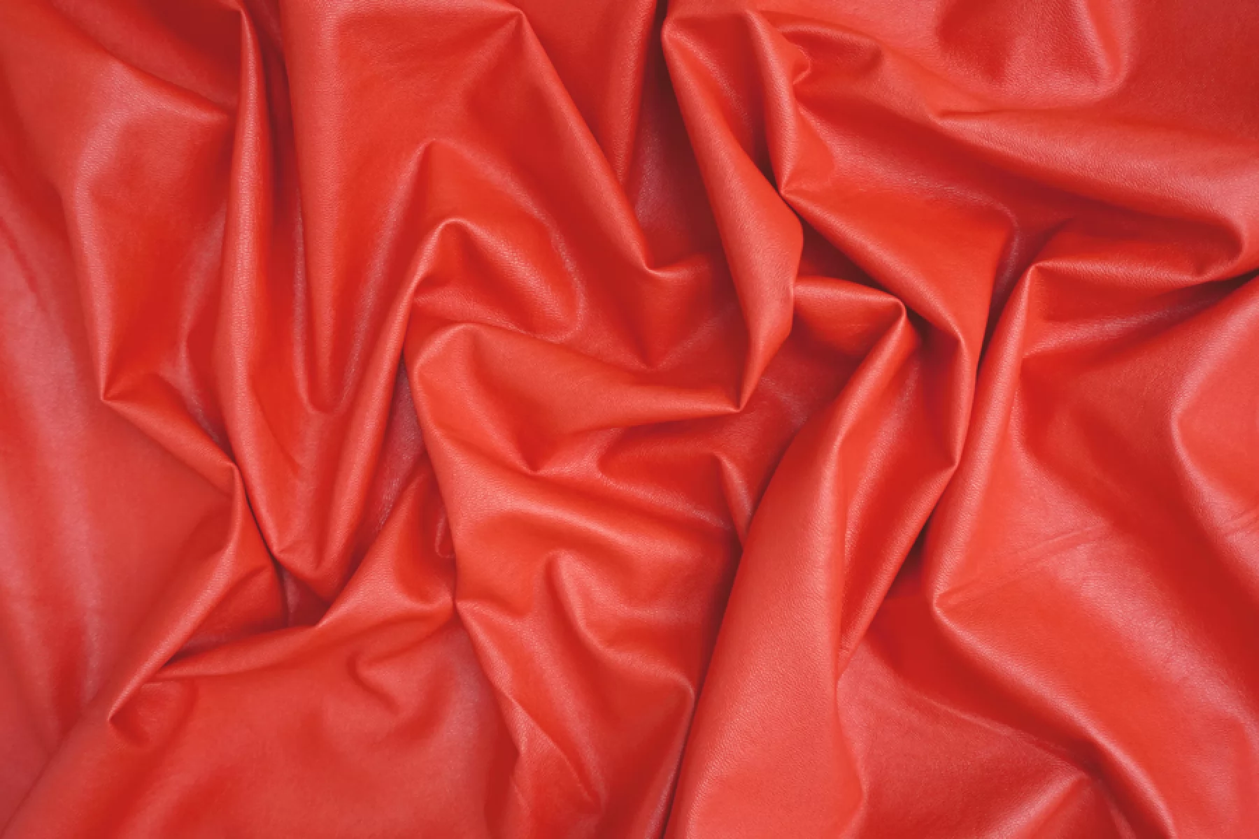 Итальянская экокожа на вискозной основе в насыщенном красном цвете. Не просвечивает. Средней плотности, из-за натуральной основы может мяться, но хорошо отпаривается. Пластичная, гладкая, немного тянется. Можно сшить тонкую кожанку для теплой погоды, плотную рубашку, платье, сарафан, шорты, брюк, мягкий пиджак.