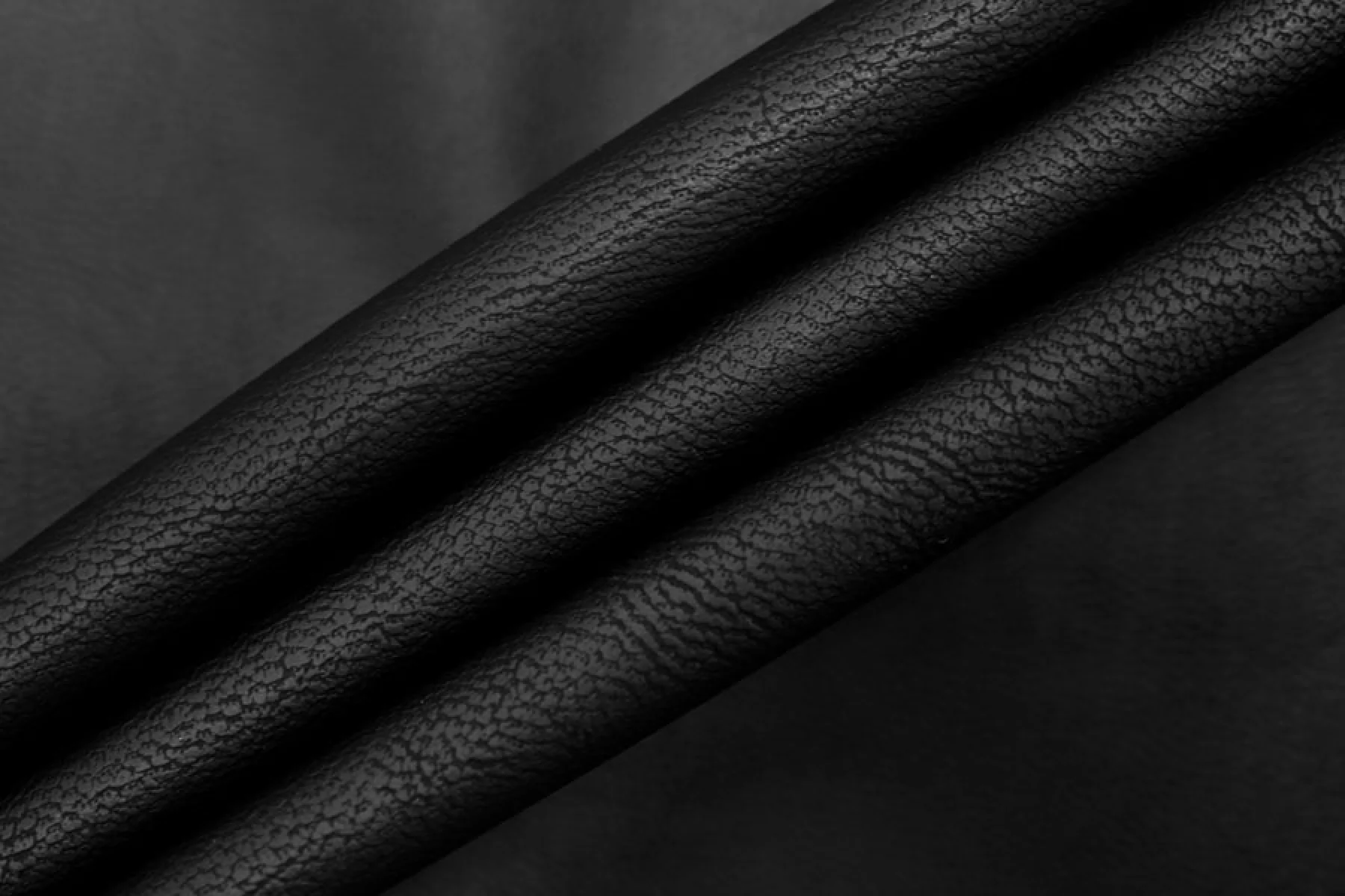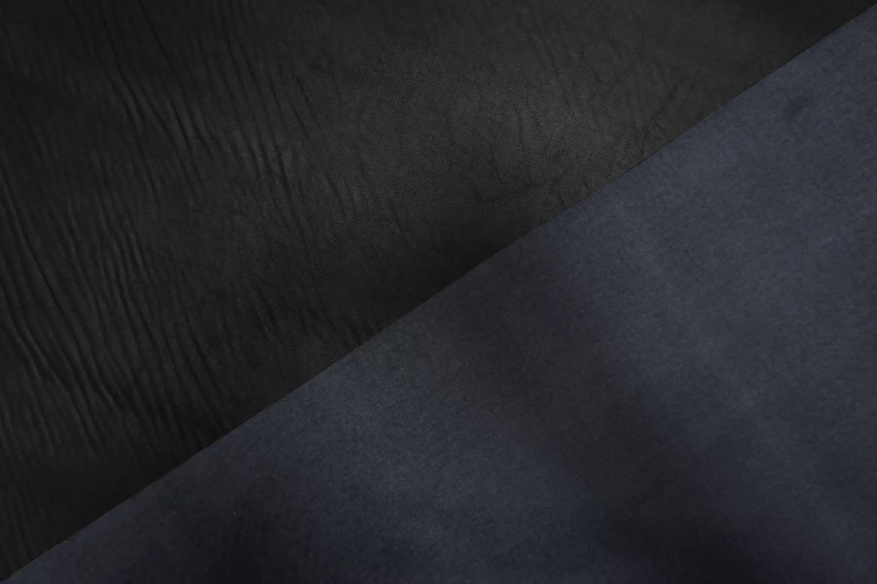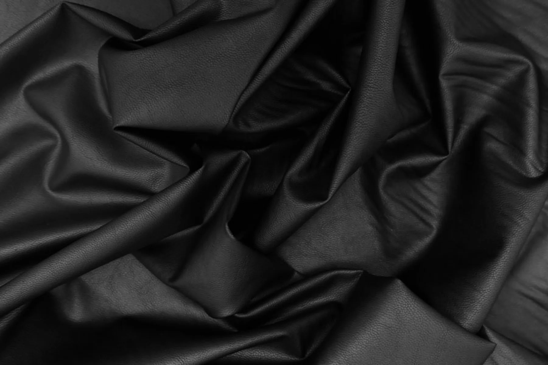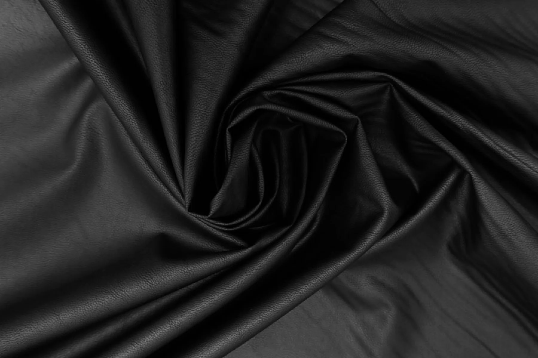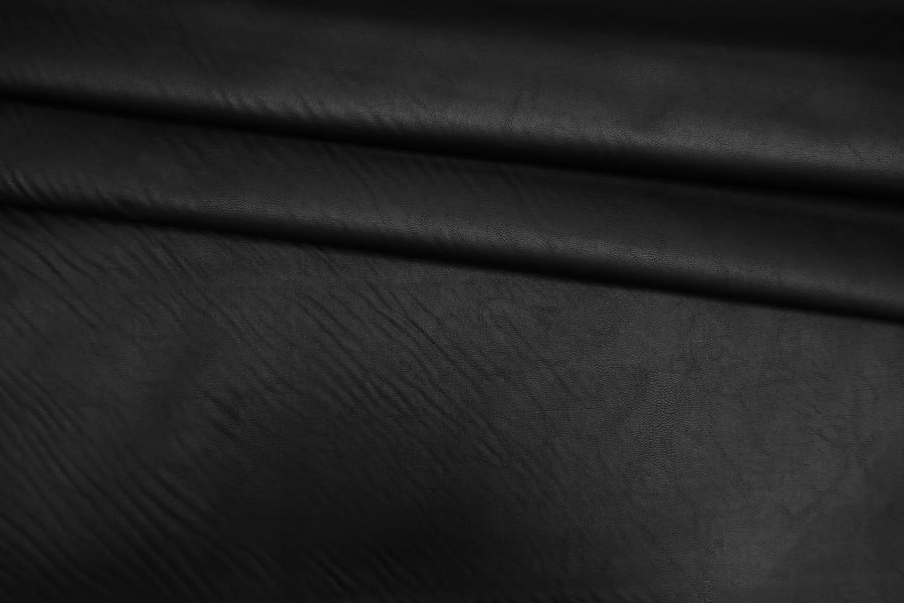 Итальянская экокожа на вискозной основе в матовом чёрном цвете. Не просвечивает. Тонкая, из-за натуральной основы может мяться, но хорошо отпаривается. Пластичная, гладкая, немного тянется. Можно сшить тонкую кожанку для теплой погоды, плотную рубашку, платье, сарафан, шорты, брюк, мягкий пиджак.