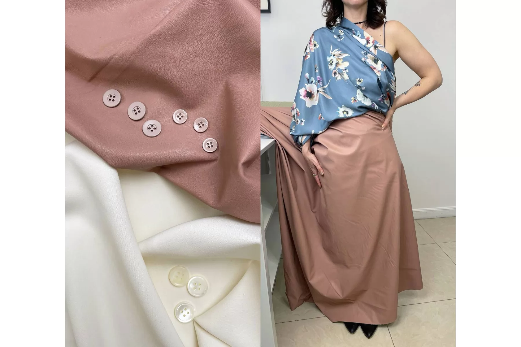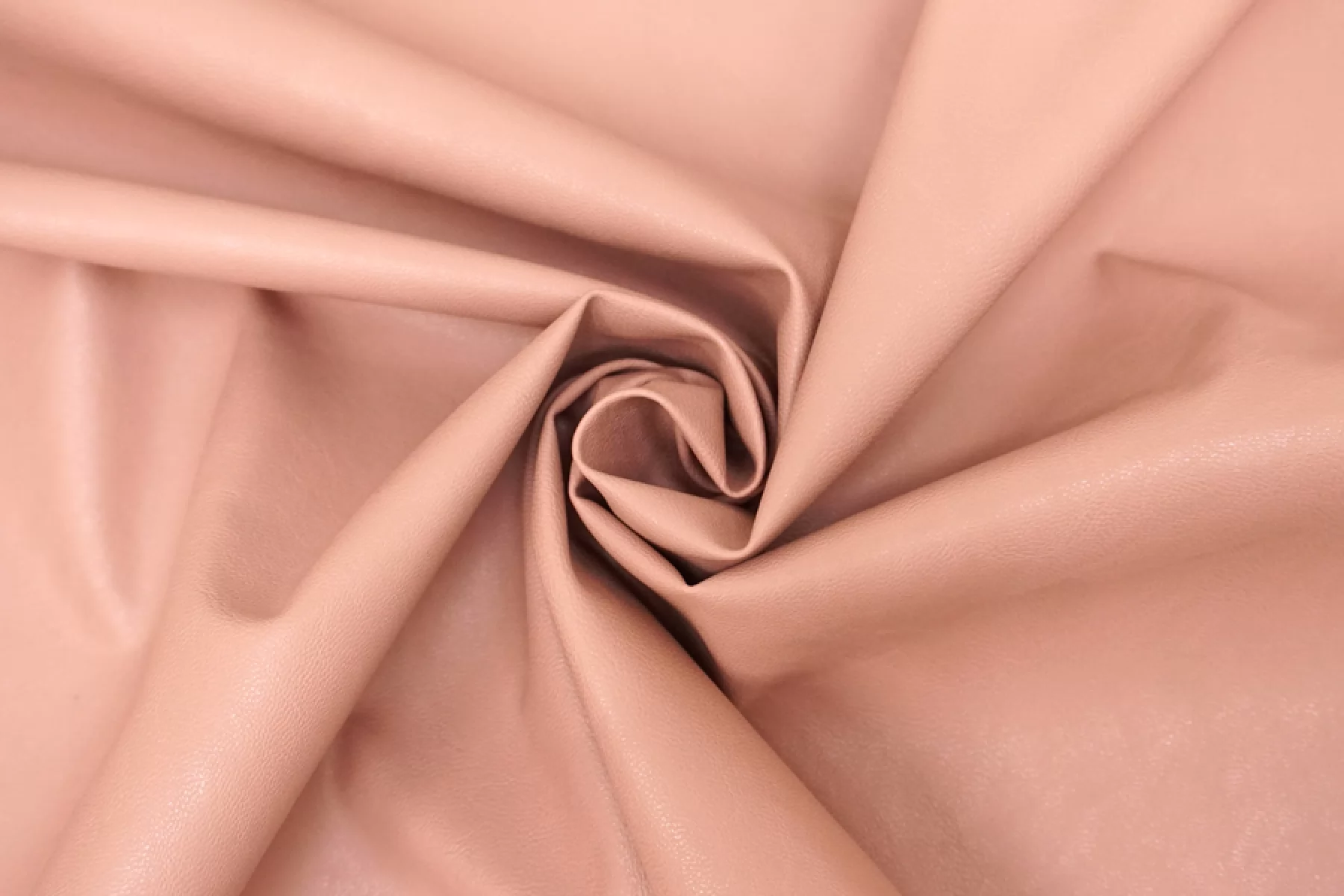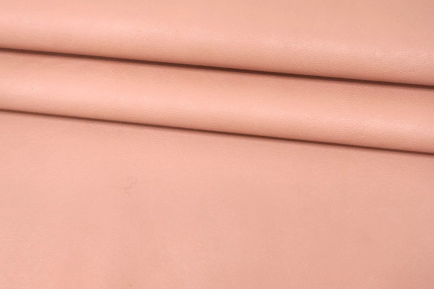 Итальянская экокожа на вискозной, бежевого оттенка, основе в пудрово-розовом оттенка. Тактильно приятная и мягкая, плотненькая. Не просвечивает. Из-за натуральной основы может сминаться, но хорошо отпаривается. Пластичная, гладкая, неплохо тянется за счет плетения. Хорошо держит форму. Прекрасный вариант для весенней, осенней одежды и не только. Отличный вариант на юбки, платья, жакеты, куртки, жилеты, шорты, плащи и другое!