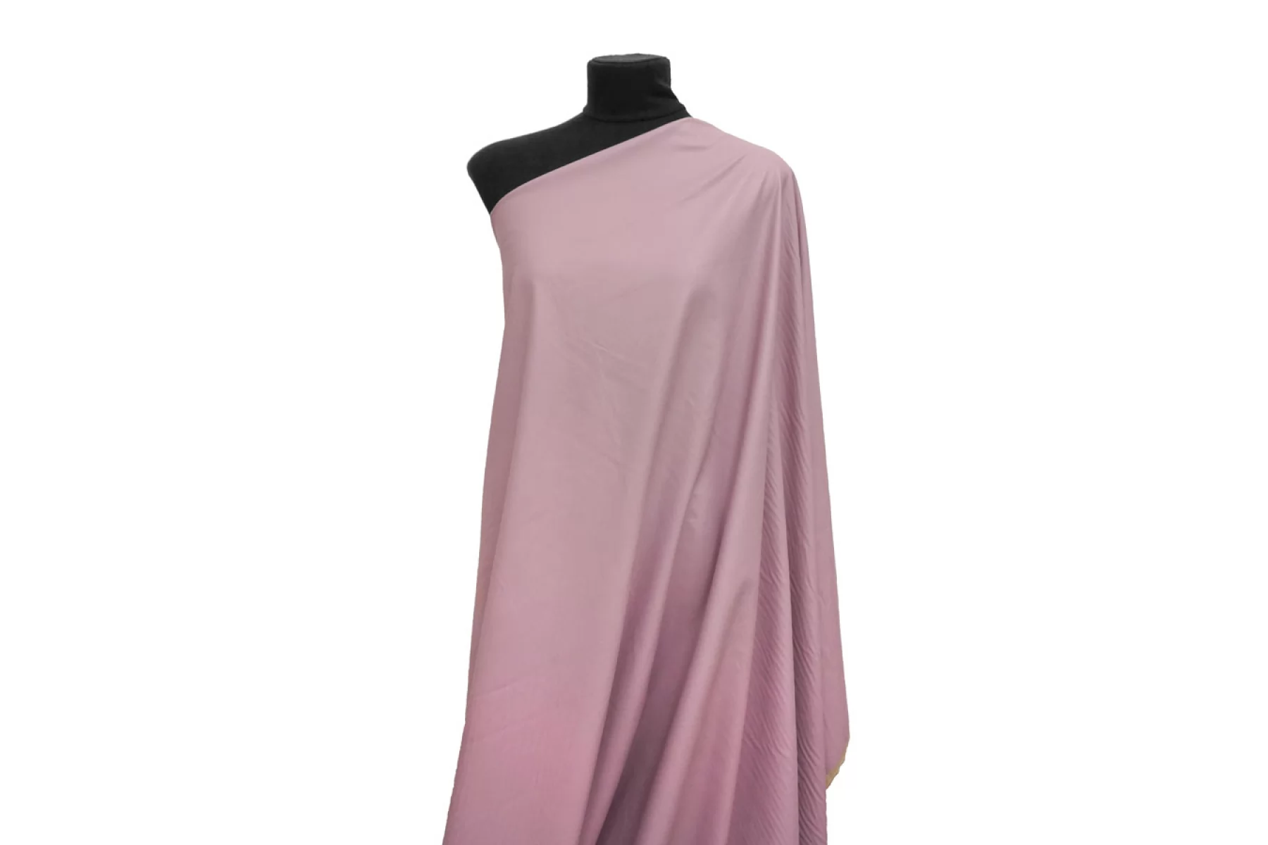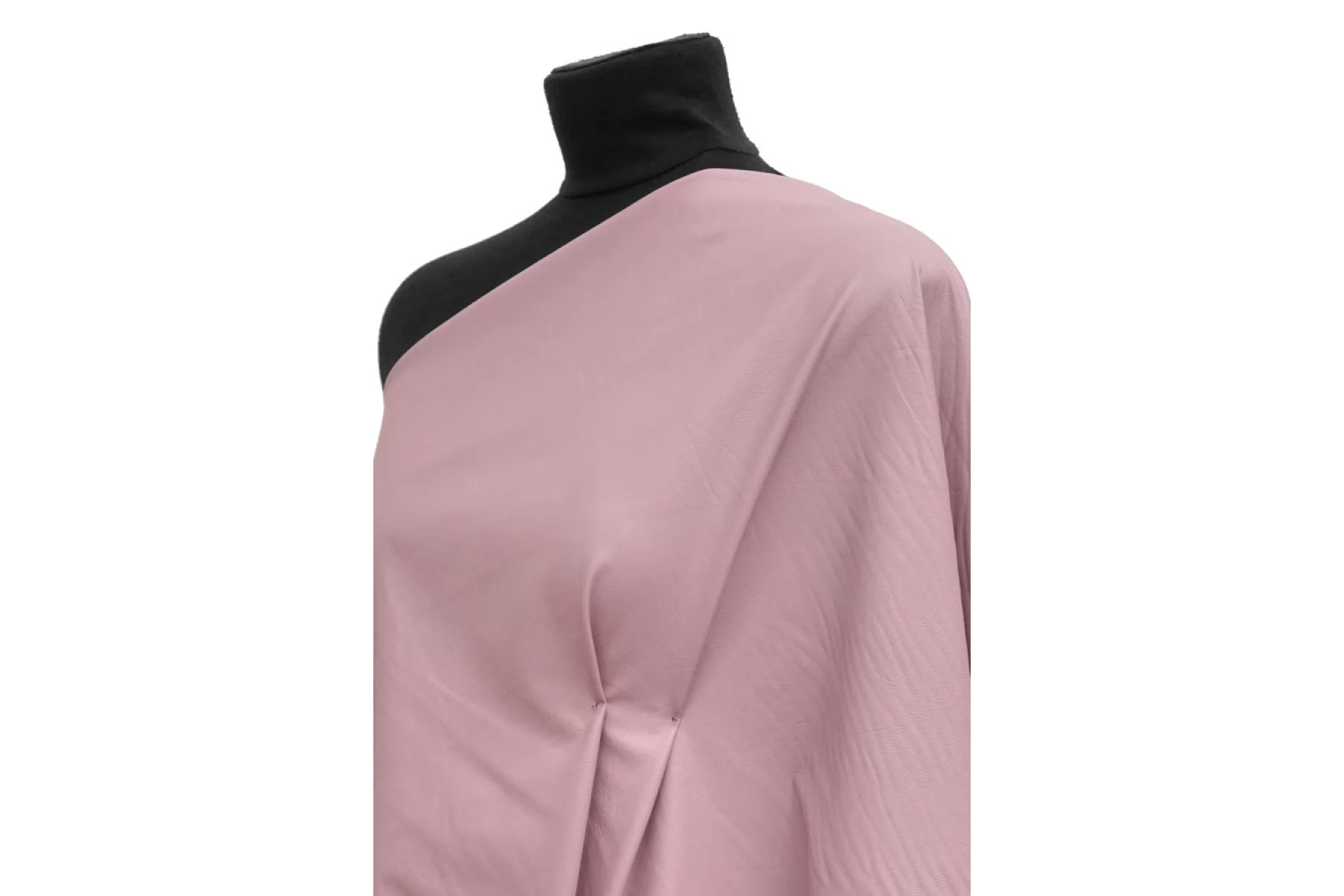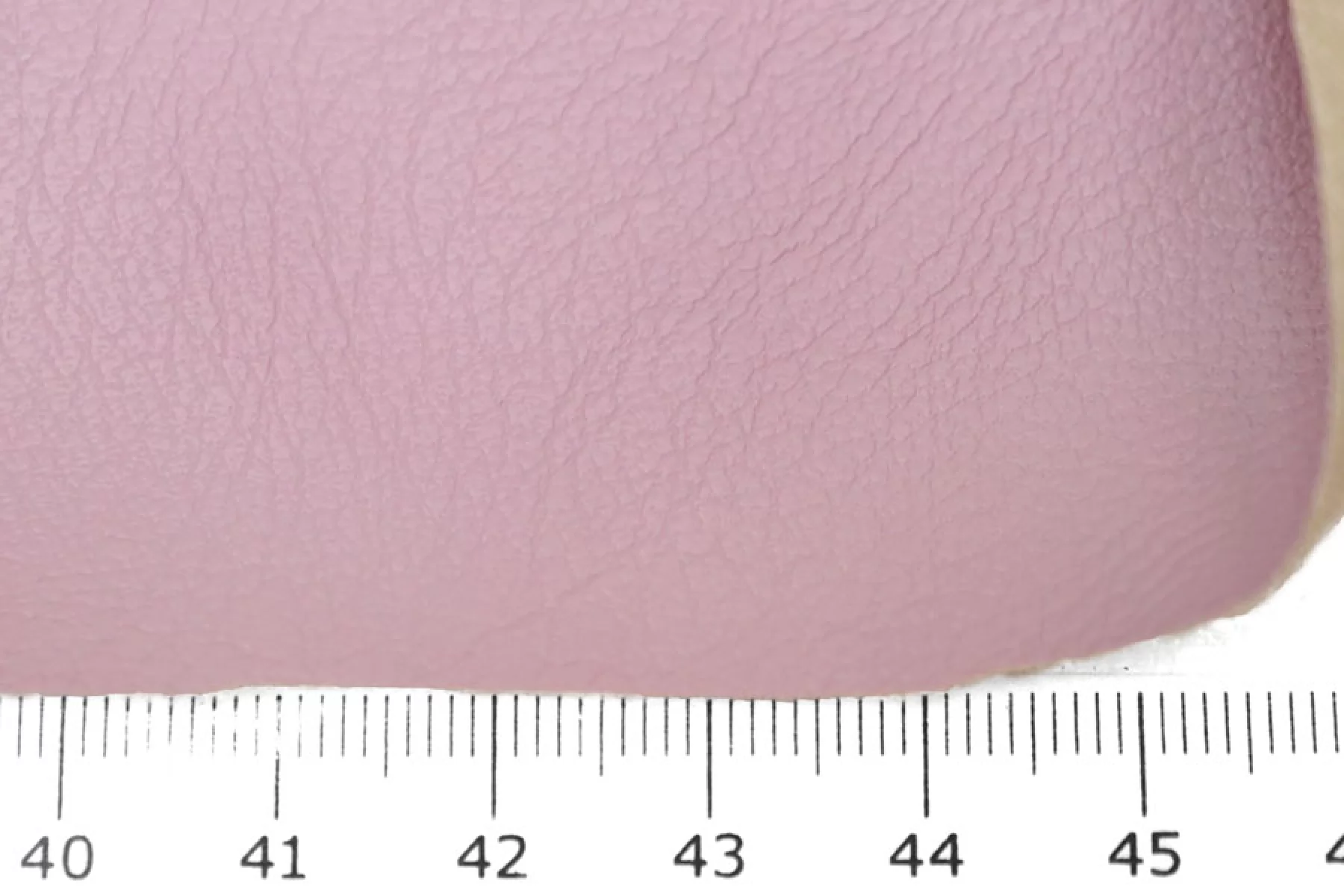 Итальянская экокожа на вискозной основе лилового оттенка. Не просвечивает. С матовым лоском. Тонкая, из-за натуральной основы может мяться, но хорошо отпаривается. Пластичная, гладкая, немного тянется. Форму немного держит. Можно сшить тонкую кожанку для теплой погоды, плотную рубашку, платье, сарафан, шорты, брюк, мягкий пиджак.