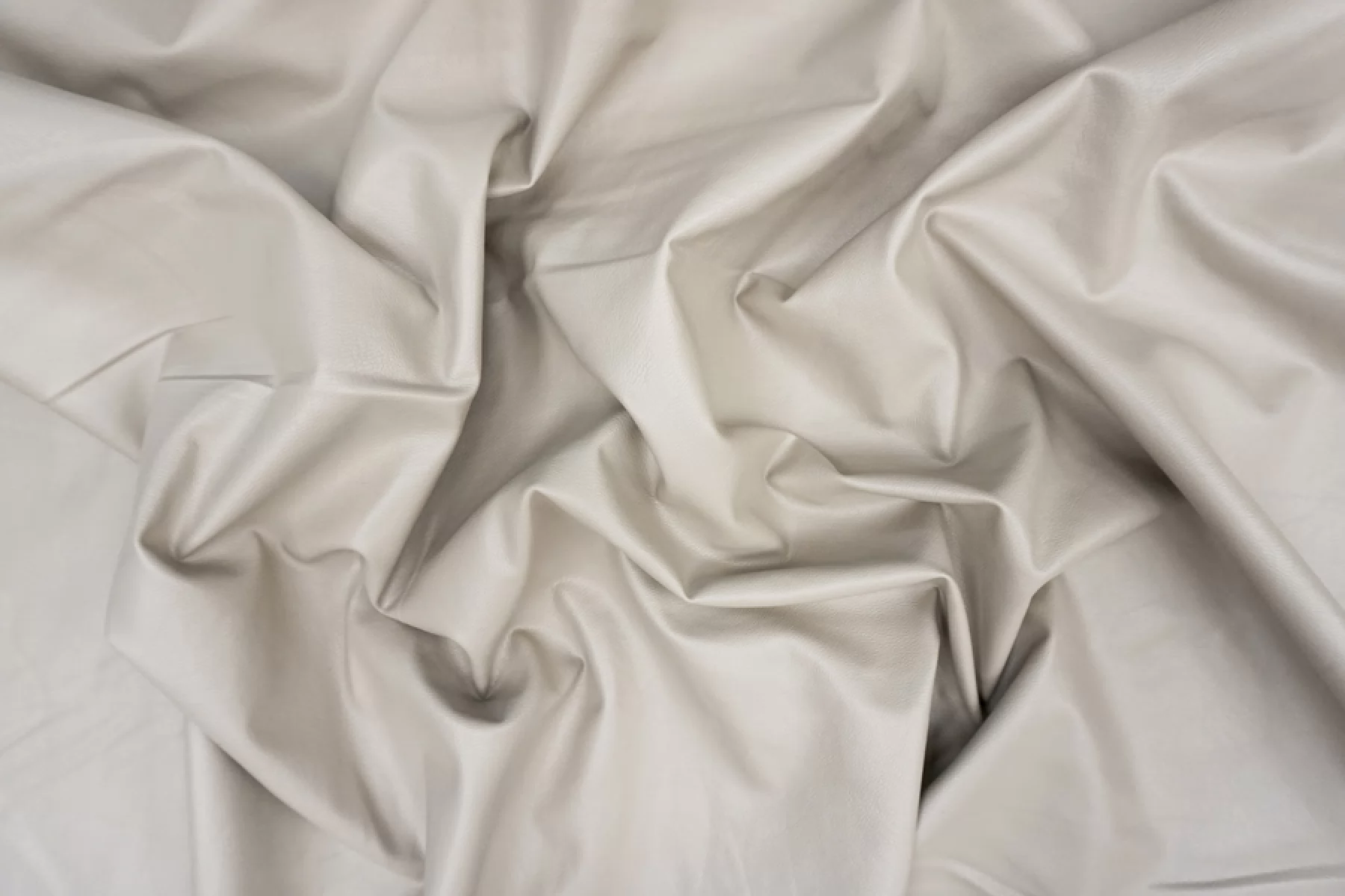 Итальянская экокожа на вискозной основе в оттенке серого камня. Цвет сложный. Выглядит дорого. Не просвечивает. Средней плотности, из-за натуральной основы может мяться, но хорошо отпаривается. Пластичная, гладкая, немного тянется. Можно сшить тонкую кожанку для теплой погоды, плотную рубашку, платье, сарафан, шорты, брюки, мягкий пиджак.