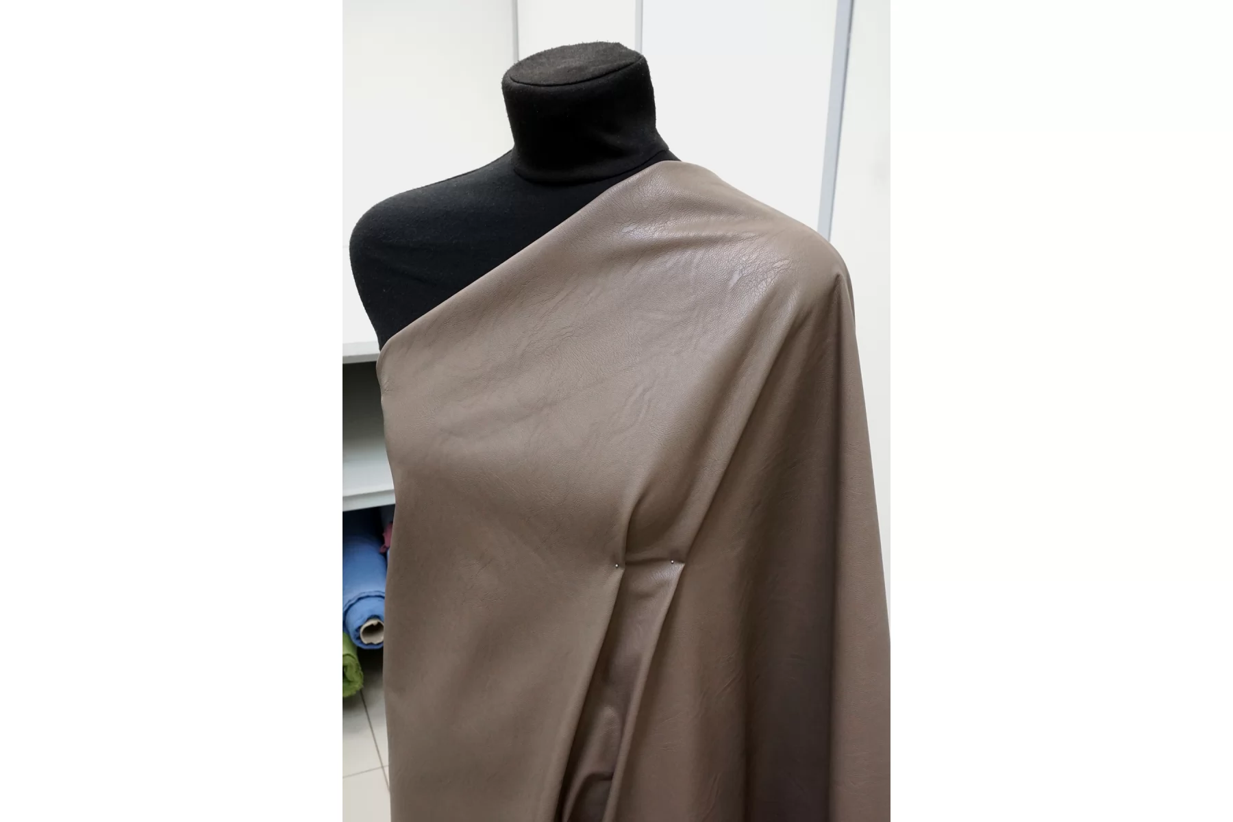 Экокожа на вискозной основе в интересном оттенке тауп (приглушённый, серо-коричневый), изнаночная сторона - светлая бежевая. Не просвечивает. Достаточно плотненькая, из-за натуральной основы может слегка мяться, но восстанавливается и хорошо отпаривается. Пластичная, слегка фактурная, со средней "зернистостью", с красивым лоском, хорошо тянется за счет плетения. Мягкая, приятная как с лицевой, так и с изнаночной стороны. Неплохо держит форму. Классный вариант для весенней, осенней одежды и не только. Отлично подойдет на юбки, платья, жакеты, куртки, жилеты, шорты и другие варианты!