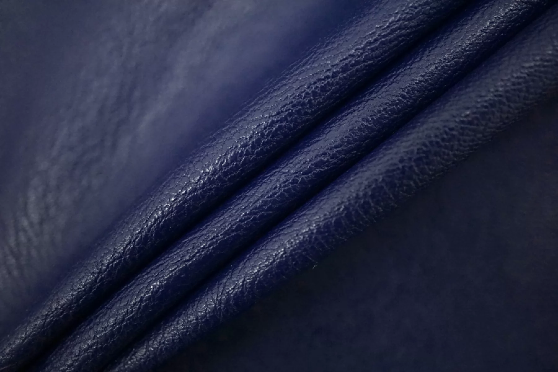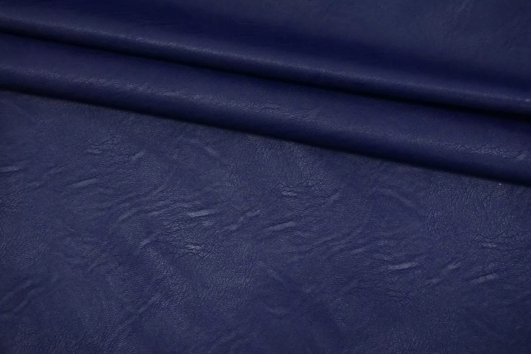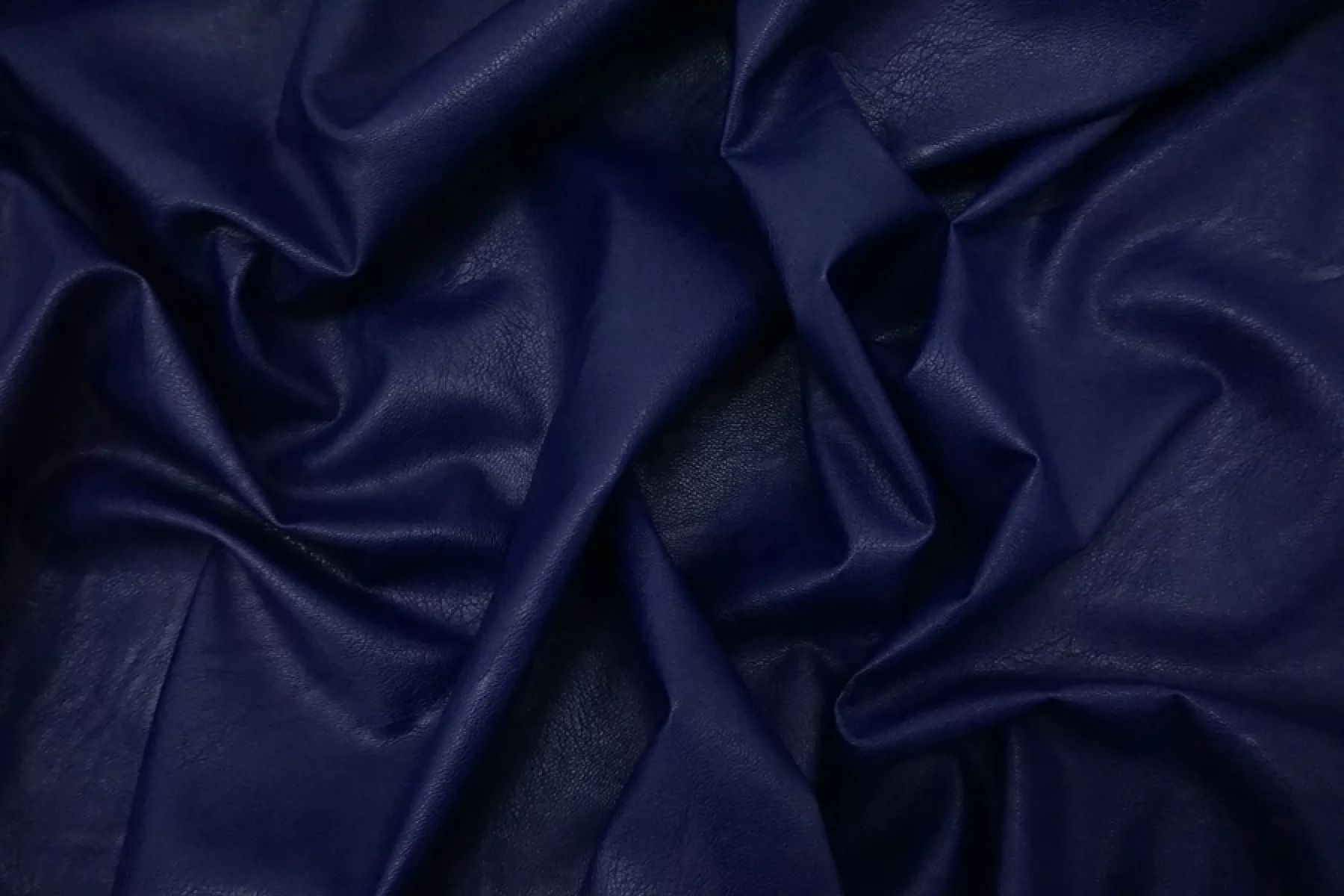 Итальянская экокожа на вискозной основе в насыщенном темно-синем оттенке. Не просвечивает. Средней плотности, из-за натуральной основы может мяться, но хорошо отпаривается. Пластичная, гладкая, немного тянется. Можно сшить тонкую кожанку для теплой погоды, плотную рубашку, платье, сарафан, шорты, брюки, мягкий пиджак.