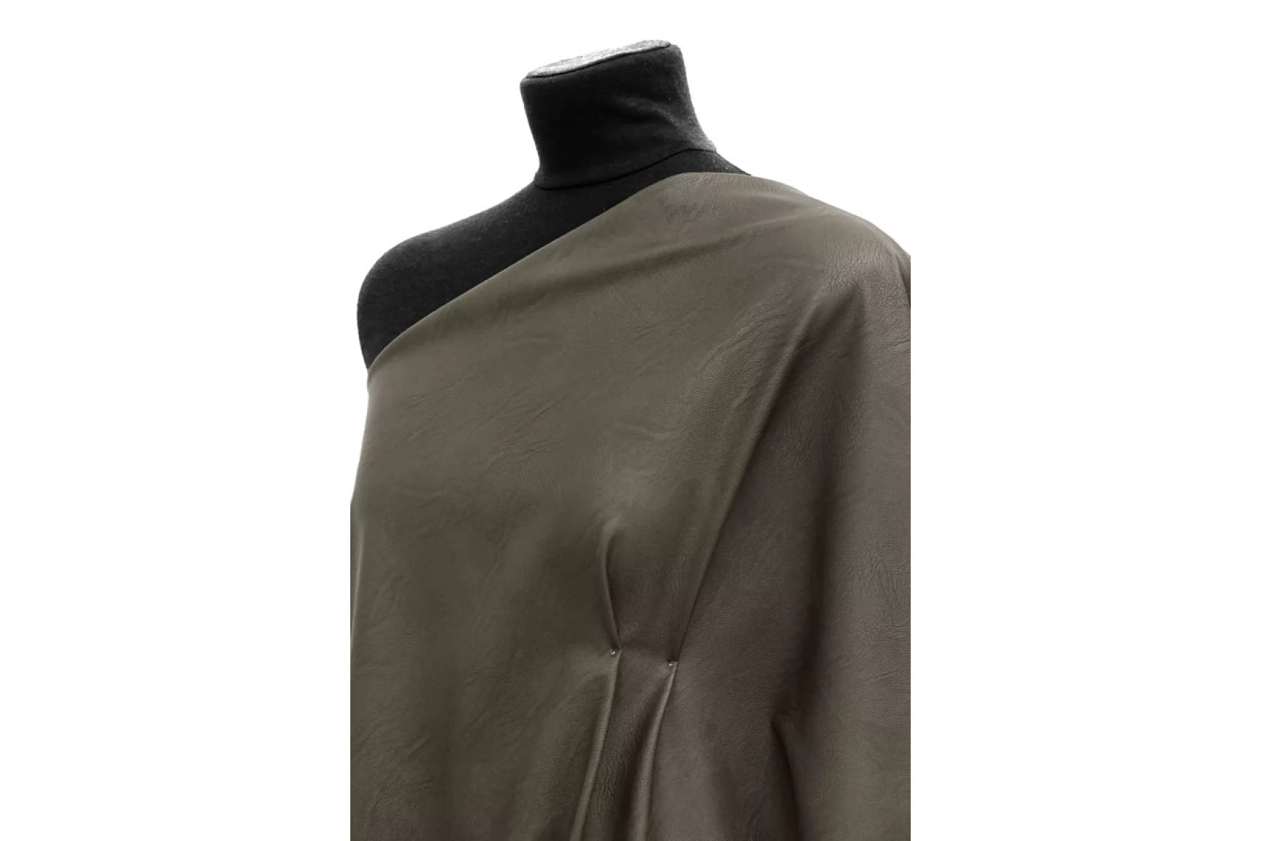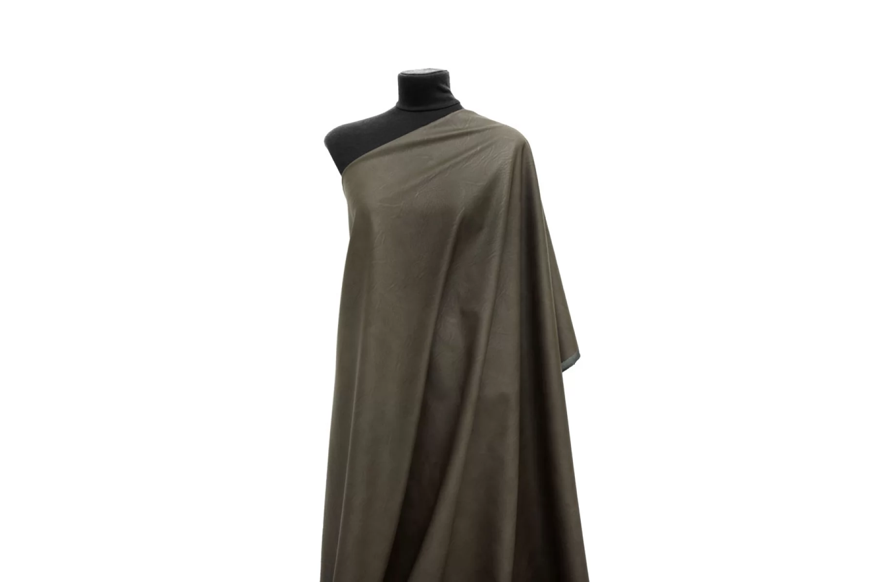Экокожа темного цвета хаки на вискозной основе темно-синего цвета. Не просвечивает. Достаточно плотненькая, из-за натуральной основы может слегка мяться, но восстанавливается и хорошо отпаривается. Пластичная, слегка фактурная, с мелкой "зернистостью", матовая, немного тянется за счет плетения. Мягкая, приятная как с лицевой, так и с изнаночной стороны. Неплохо держит форму. Классный вариант для весенней, осенней одежды и не только. Отлично подойдет на юбки, платья, жакеты, куртки, жилеты, шорты и другие варианты!