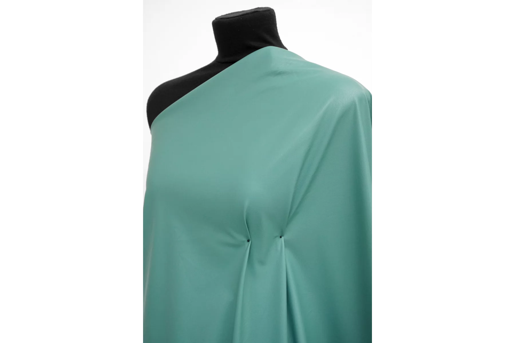Итальянская экокожа на вискозной основе в красивом пастельном зелено-голубом оттенке. Тактильно очень приятная и мягкая. Не просвечивает. Хорошей плотности, из-за натуральной основы может сминаться, но хорошо отпаривается. Пластичная, гладкая, неплохо тянется за счет плетения. Хорошо держит форму. Прекрасный вариант для весенней, осенней одежды и не только. Прекрасный вариант на юбки, платья, жакеты, куртки, жилеты, шорты, плащи и другое!