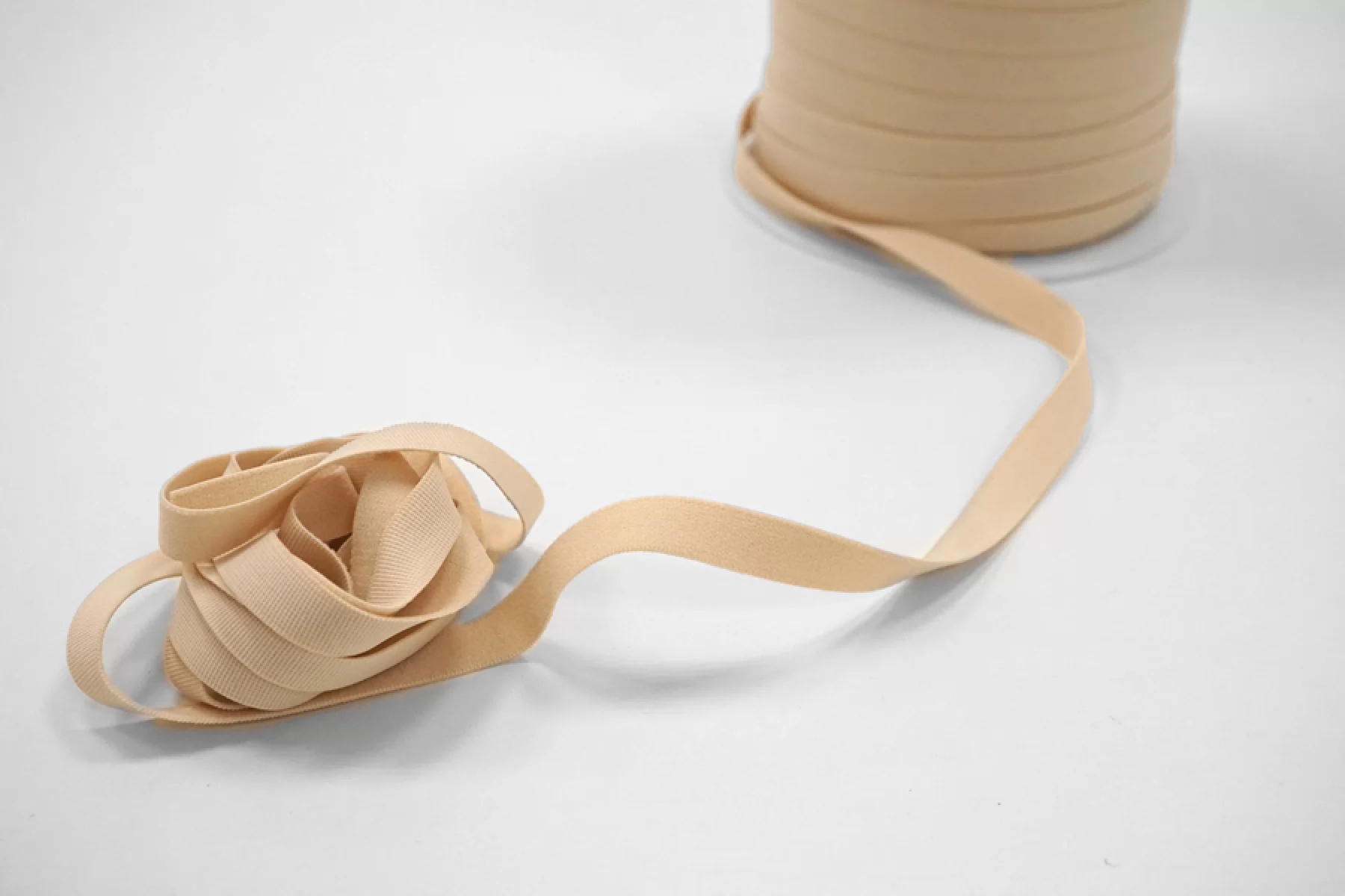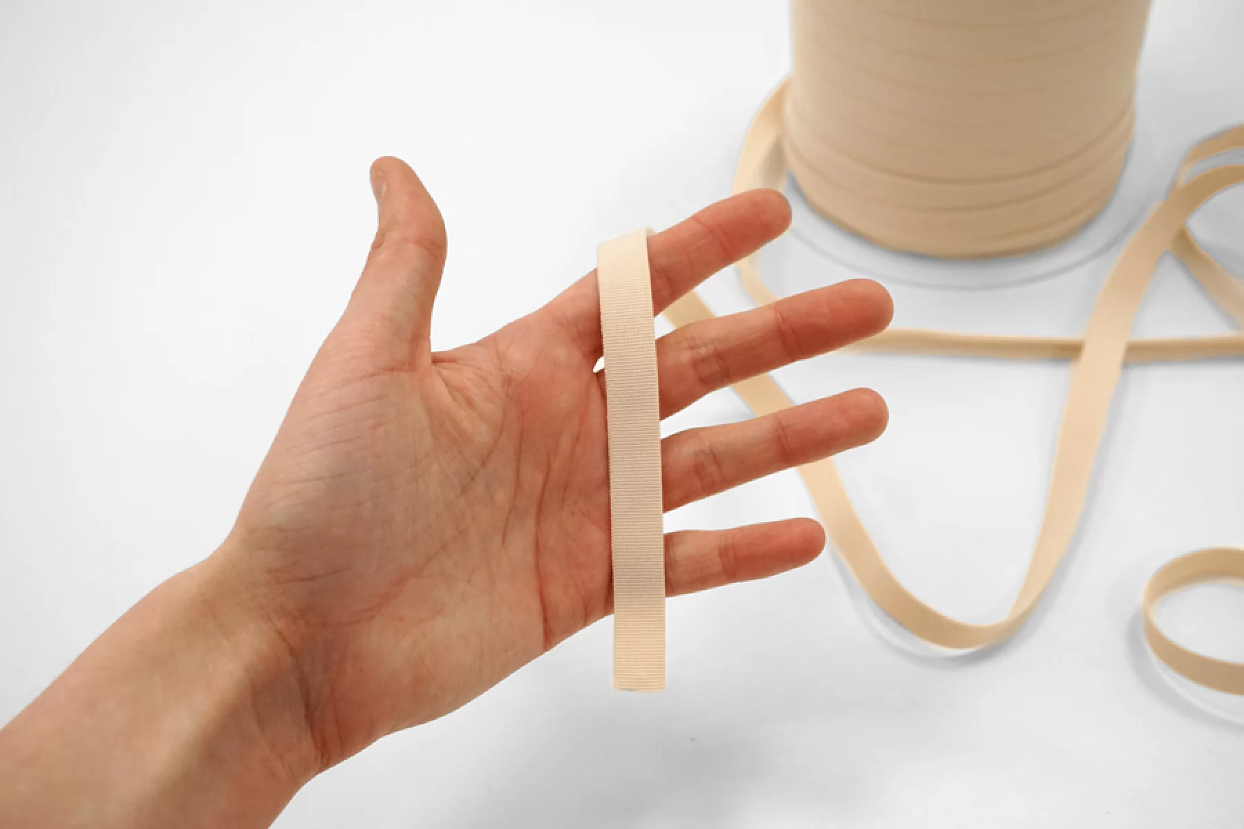 Резинка бельевая мягкая, эластичная, в светло-бежевом цвете. Подойдет для пошива женского белья, носочно-чулочных изделий, детской одежды и окантовки краёв.