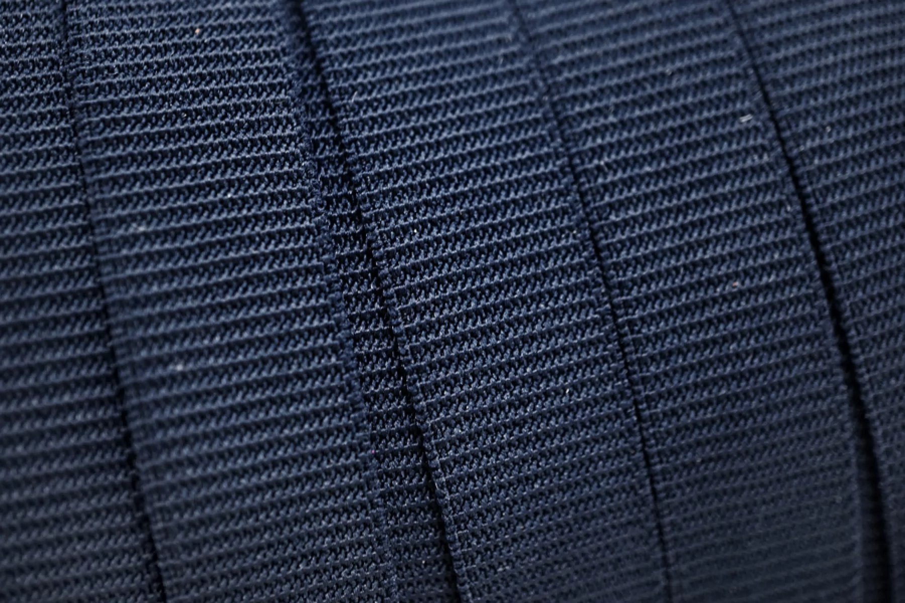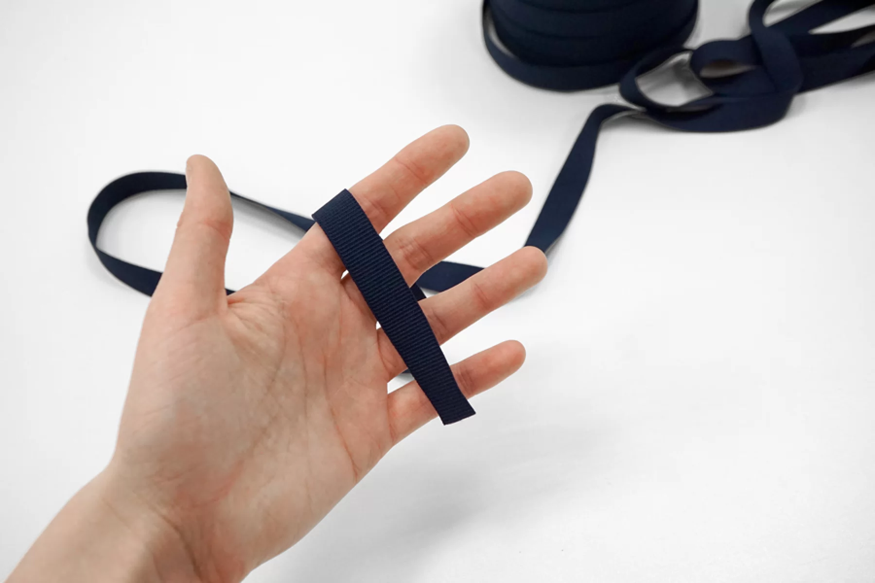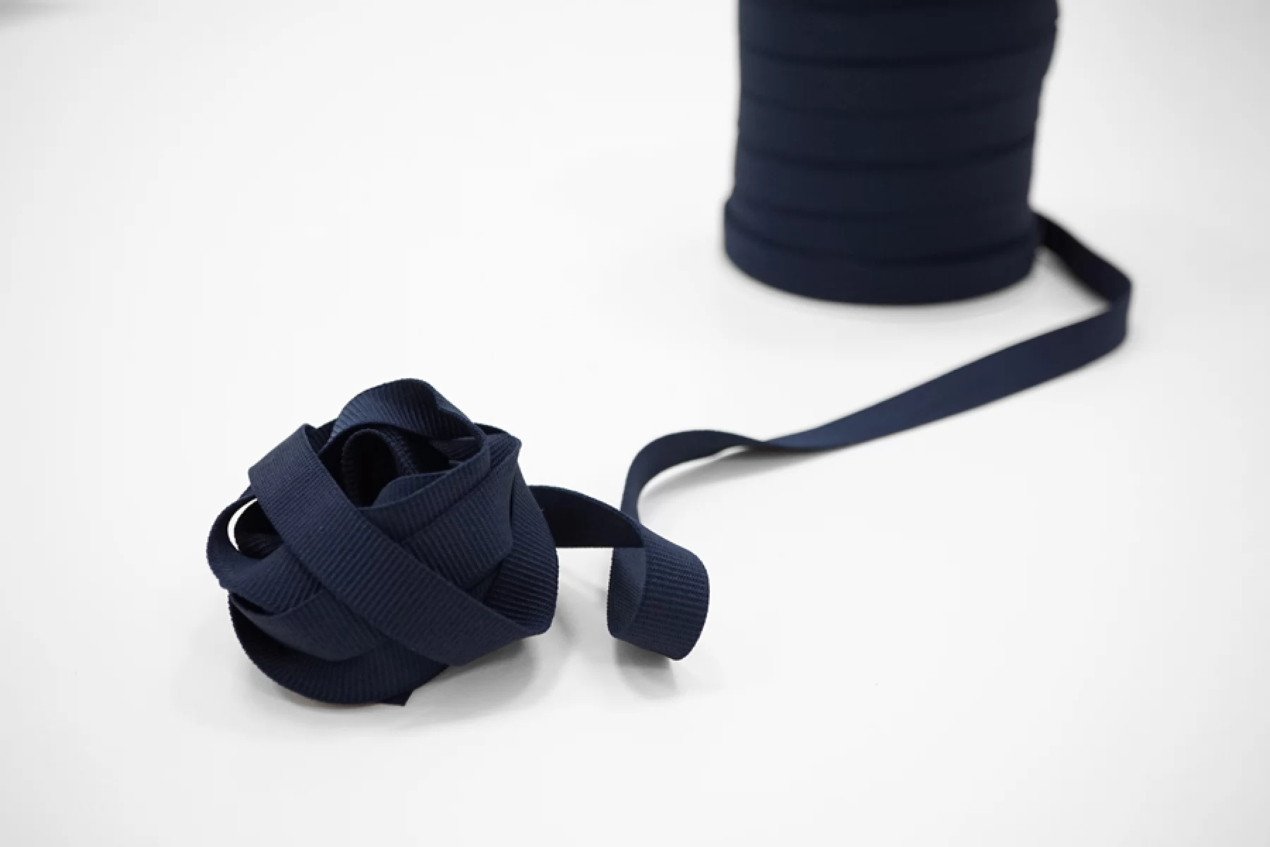 Резинка декоративная в темно-синем цвете с репсовым плетением. Подойдет для отделки юбок, брюк и аксессуаров.