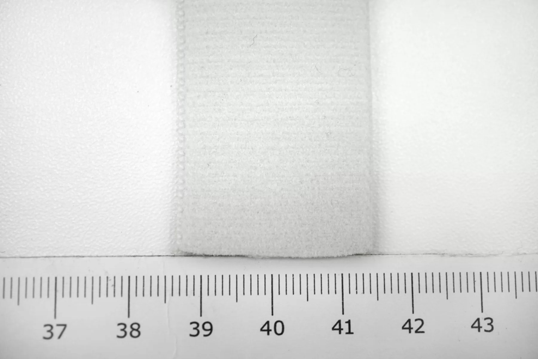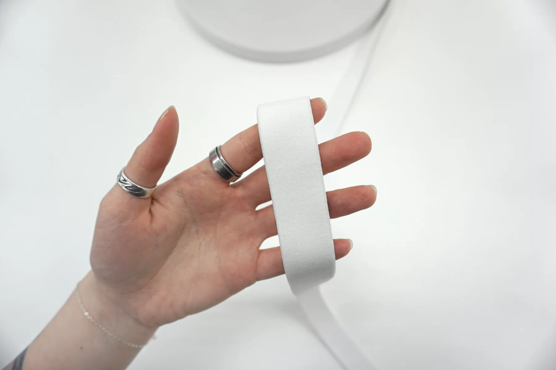 Упругая резинка белого цвета, шириной 2,9 см, плотная, тугая. Подойдет внутренней для отделки юбок и брюк. Использовать только внутри, так как волокна резинки не оплетены тканью.