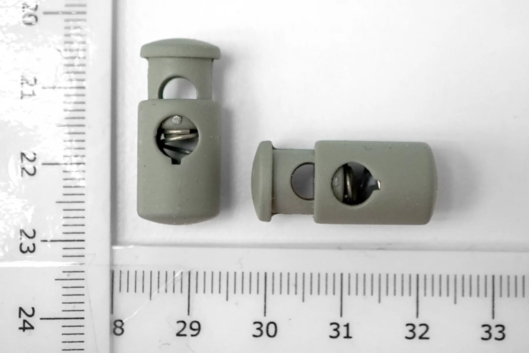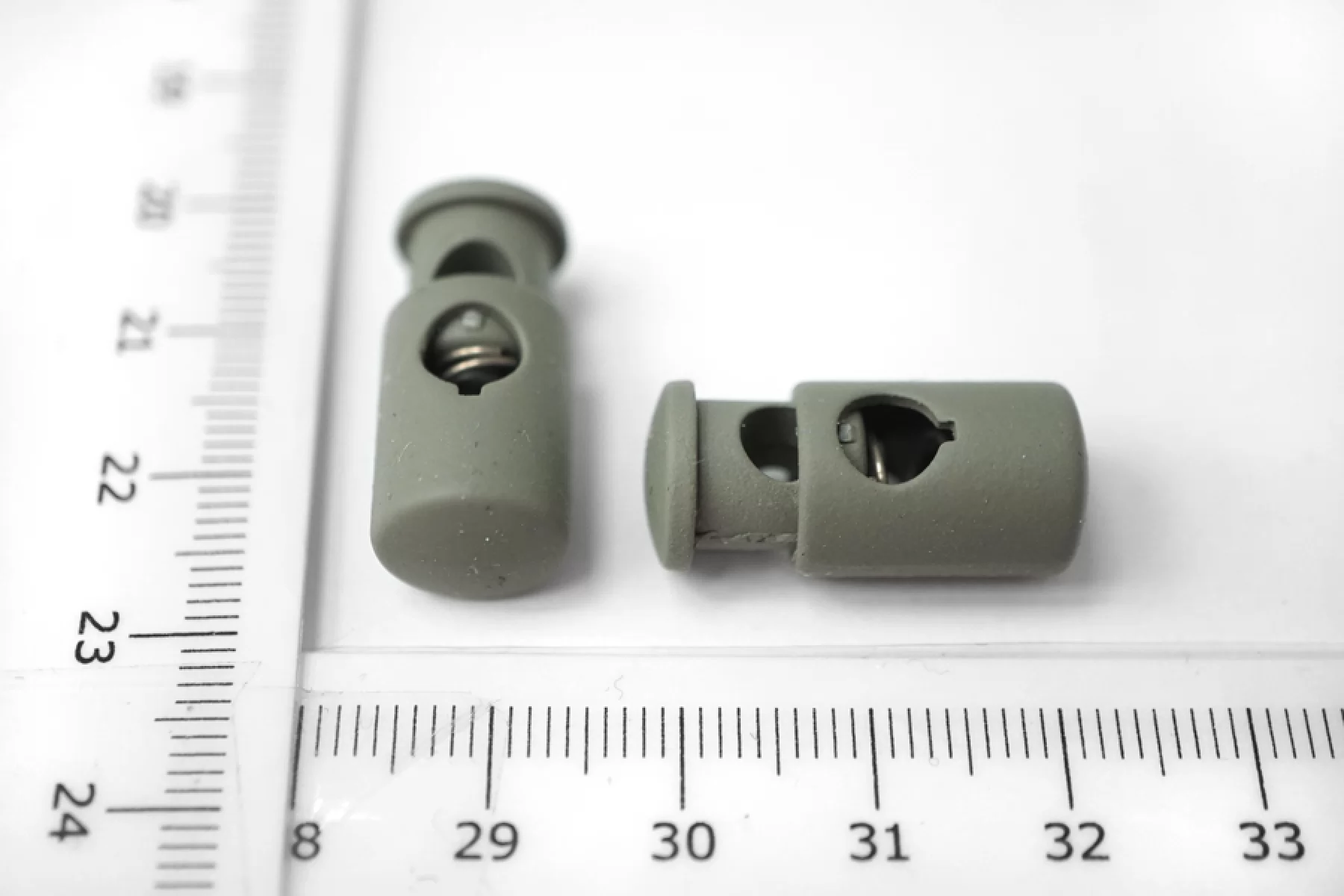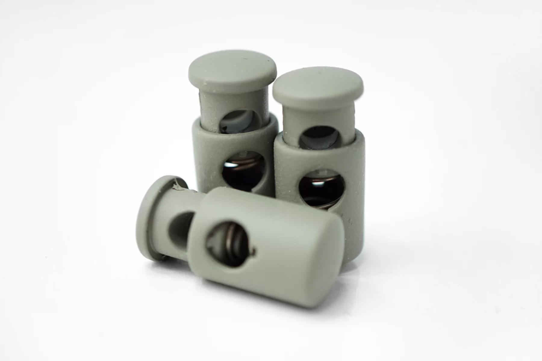 Фиксатор для шнурка. Цвет серо-фисташковый, цилиндрической формы. Размер 22 мм х 10 мм.