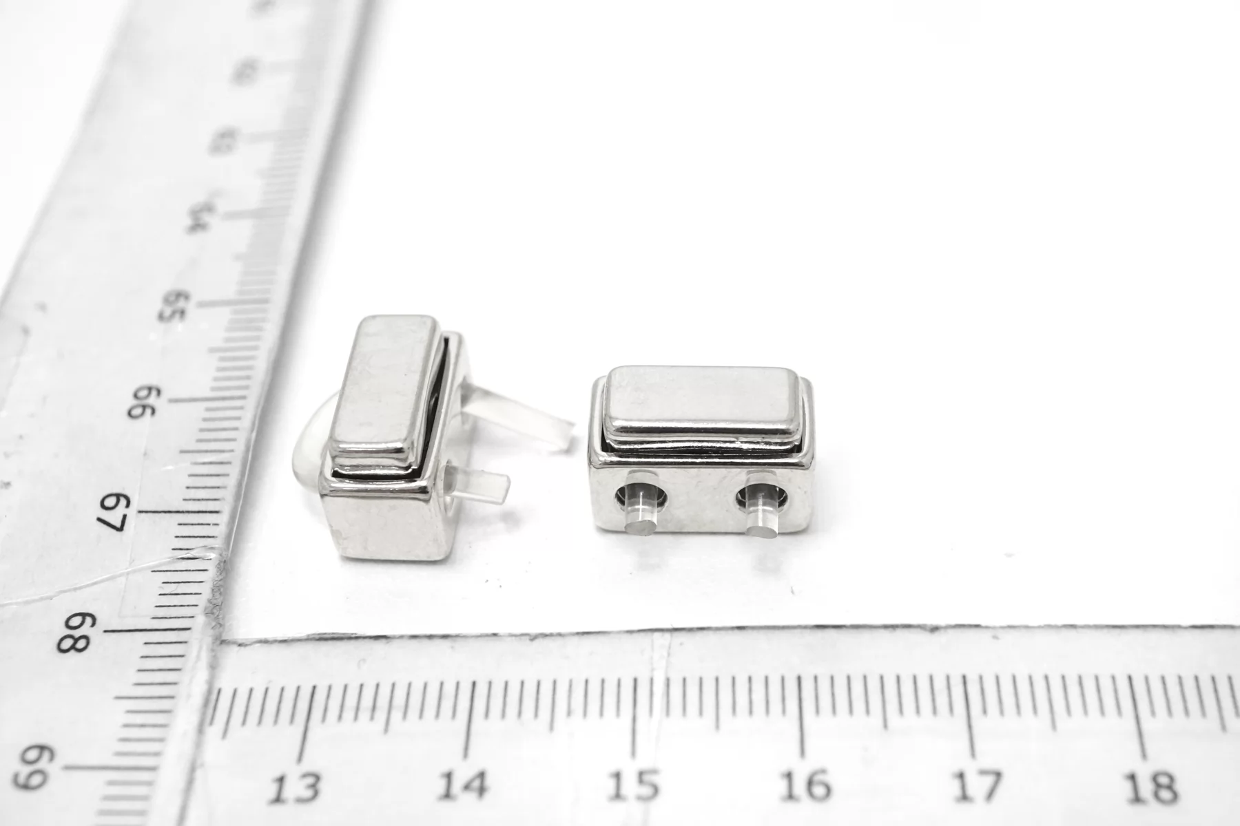 Металлический фиксатор для шнурка. Цвет - серебряный, прямоугольной формы с двумя отверстиями (диаметр отверстия 3 мм.).