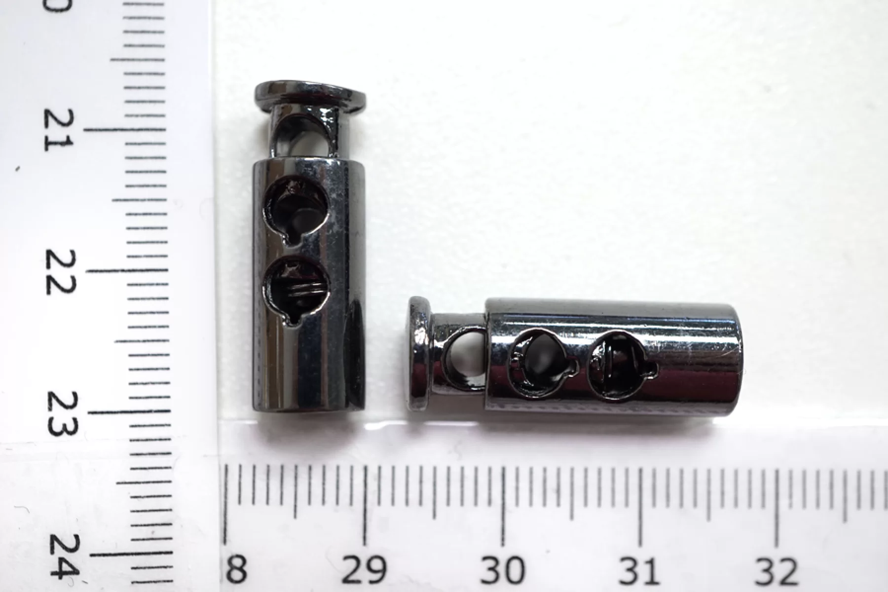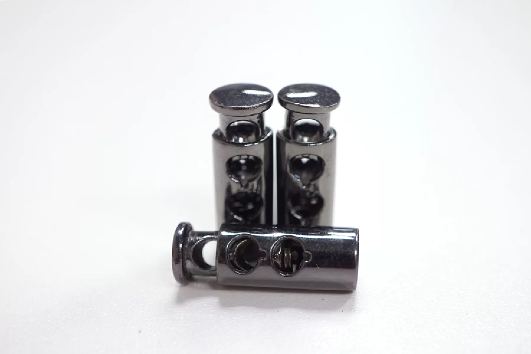 Фиксатор для шнурка. Цвет - темный никель, цилиндрической формы. Размер 23 мм х 10 мм.