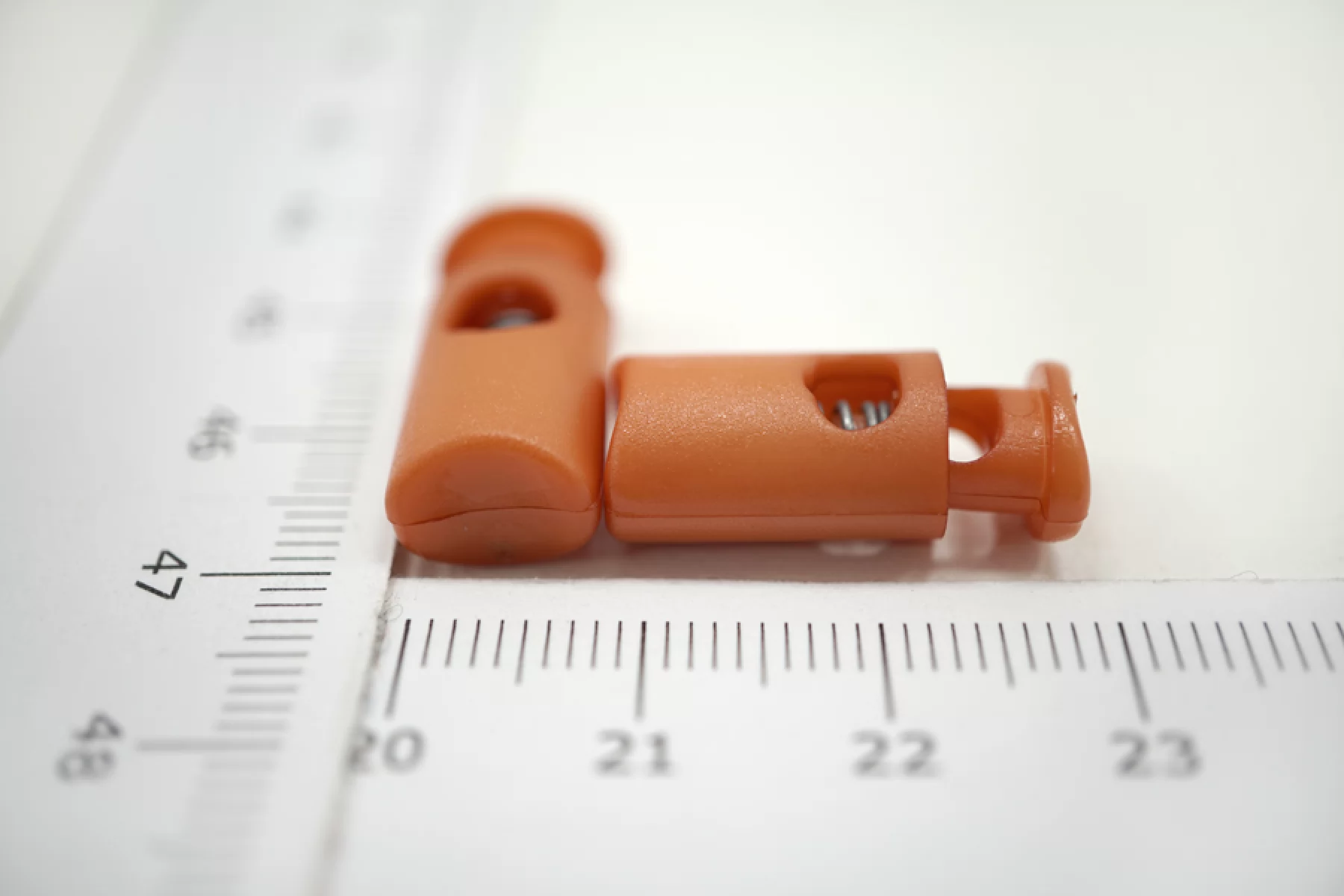Фиксатор для шнурка. Пластиковый, цвет облепиховый, цилиндрической формы. Размер 20 мм х 0,9 мм.