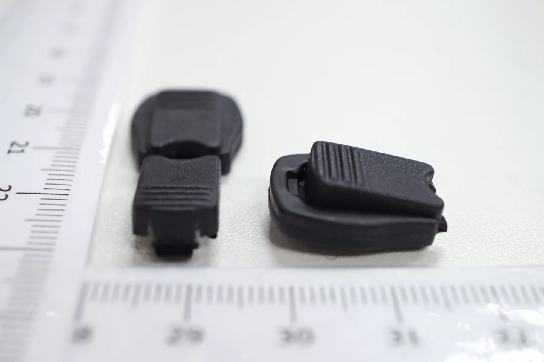 Фиксатор для шнурка. Пластиковый, черного цвета, плоский, с защелкой. Размер 18 мм х 15 мм.