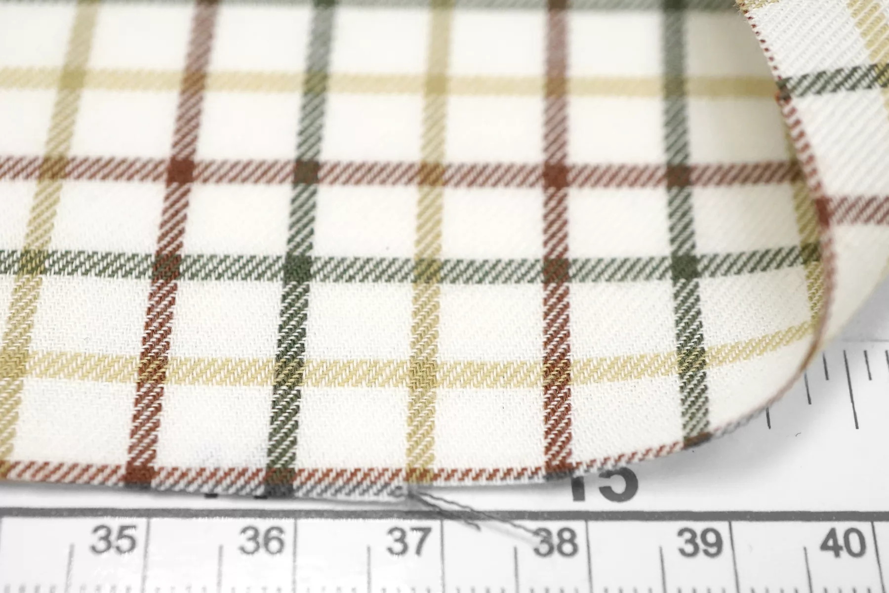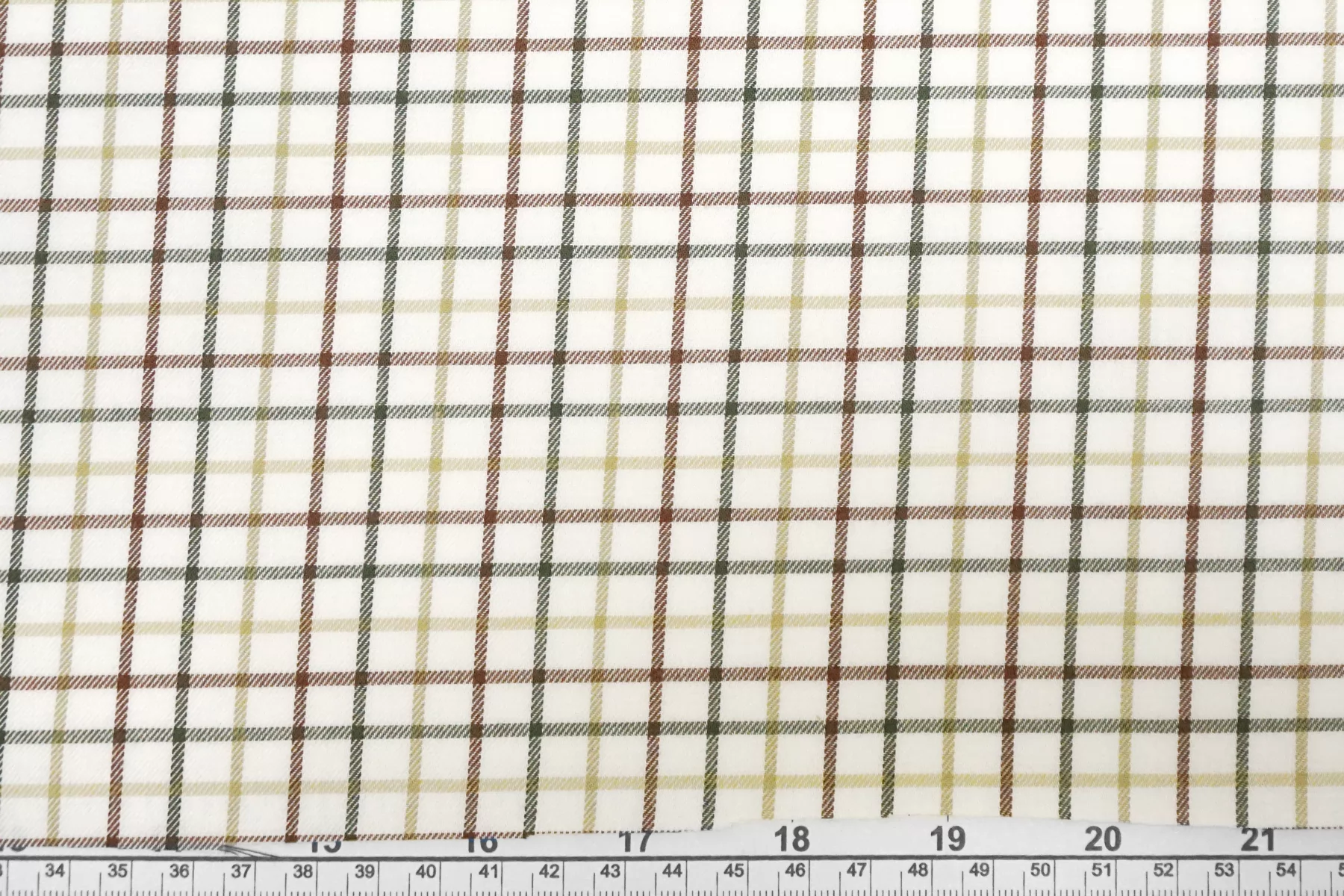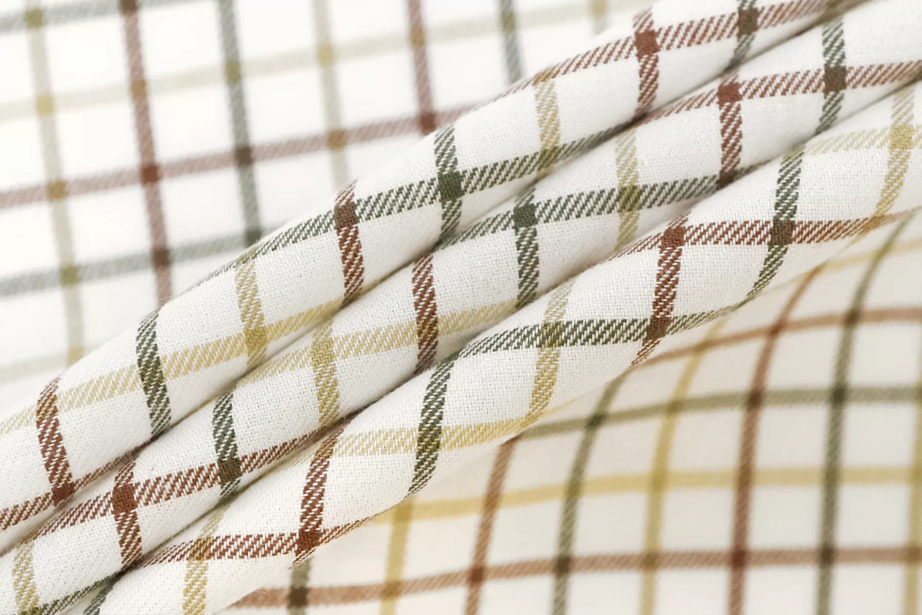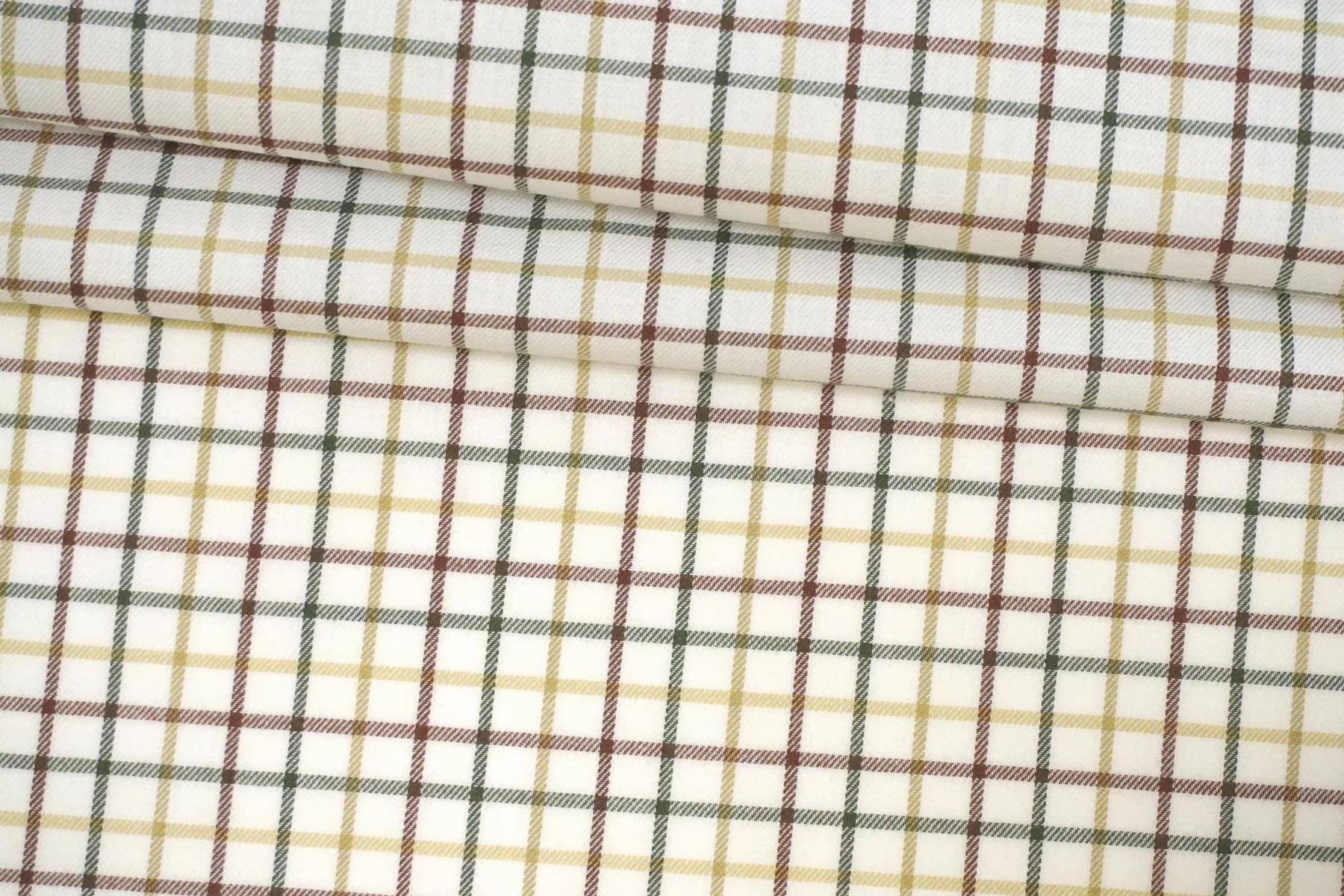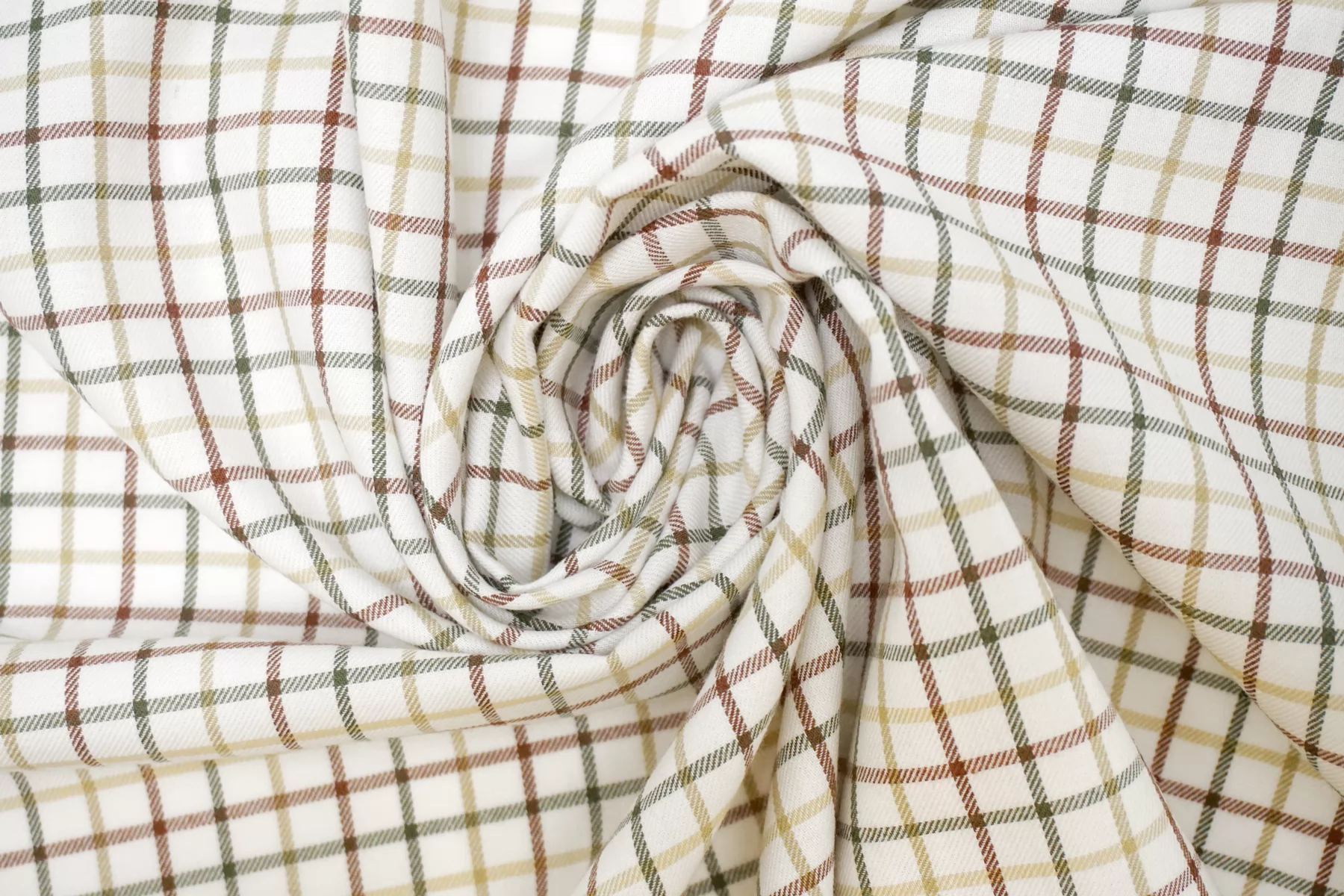 Фланель хлопковая рубашечная в клетку ALBINI Белая с зелёным и коричневым CVC Н6/1 B60 21112539