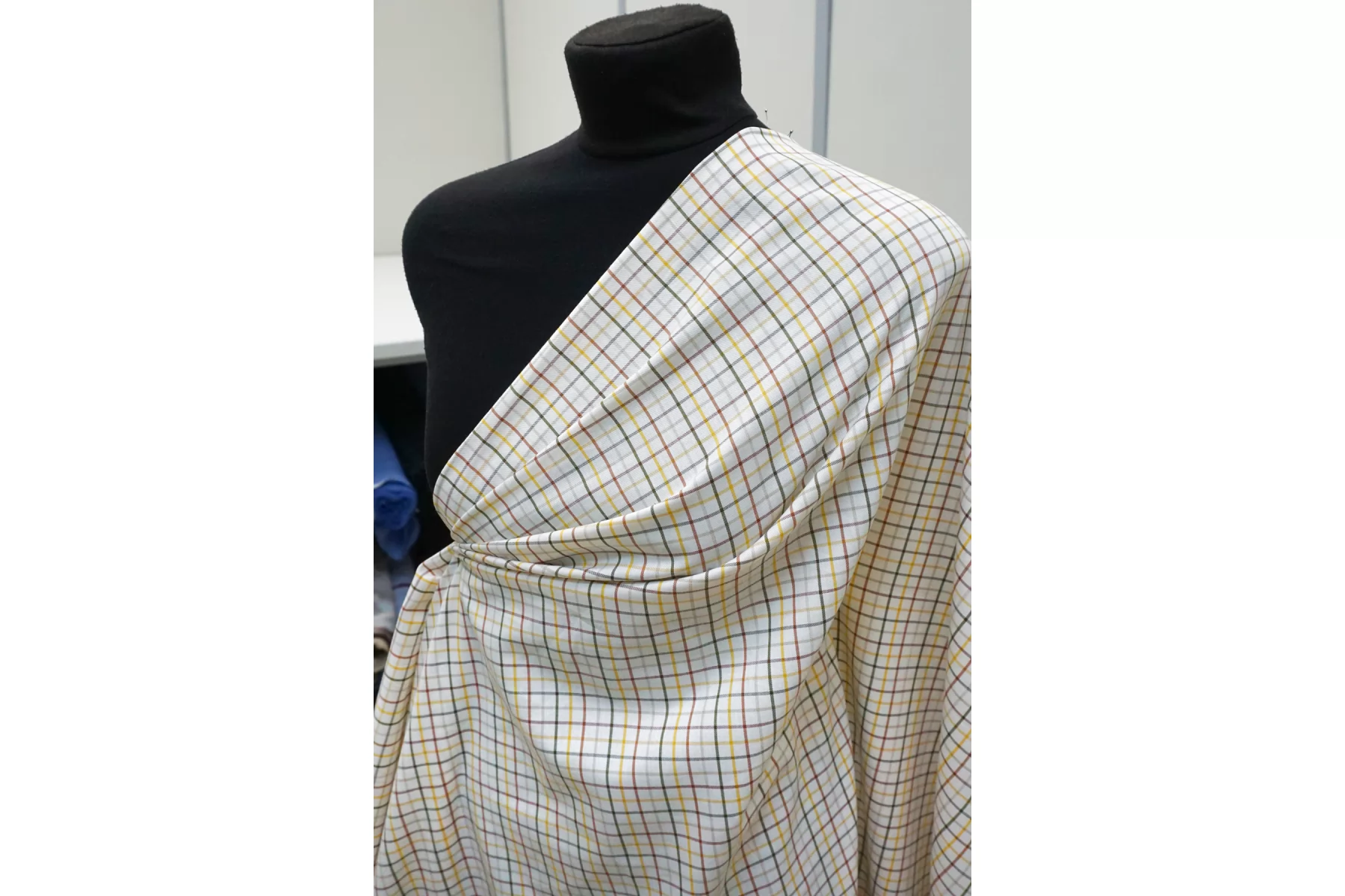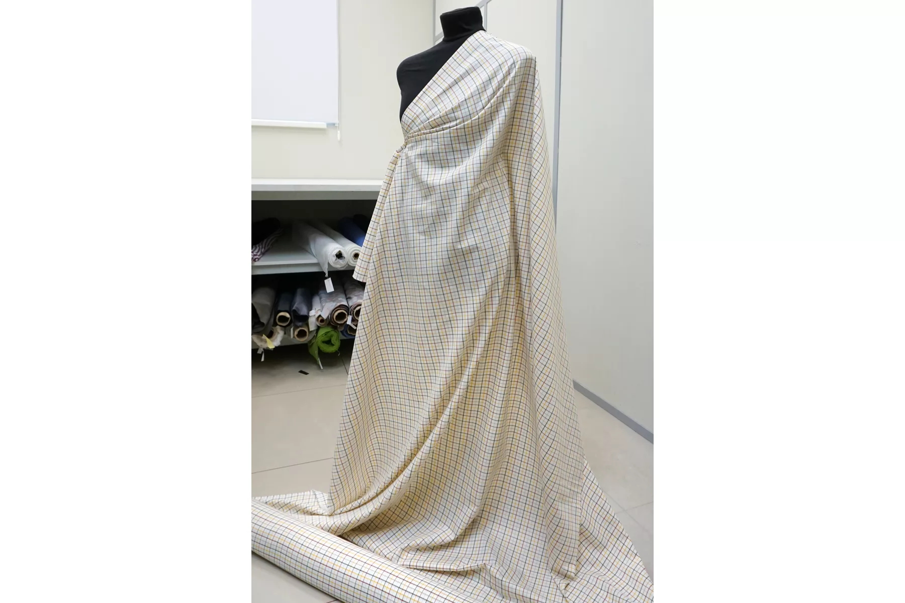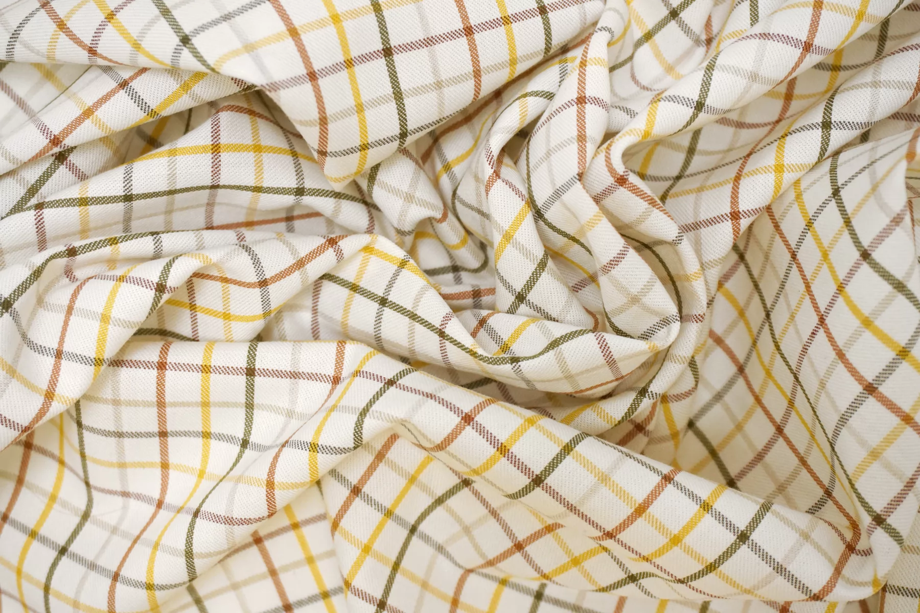 Фланель хлопковая рубашечная в клетку ALBINI Белая с жёлтым и зелёным CVC Н6/1 B60 21112540