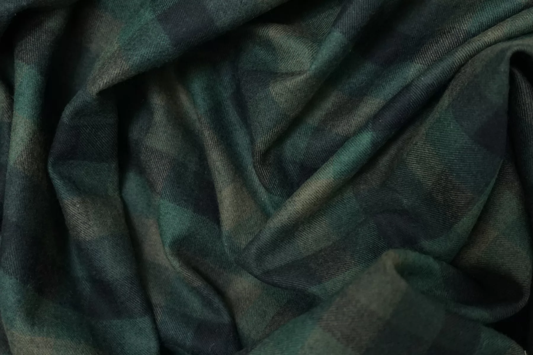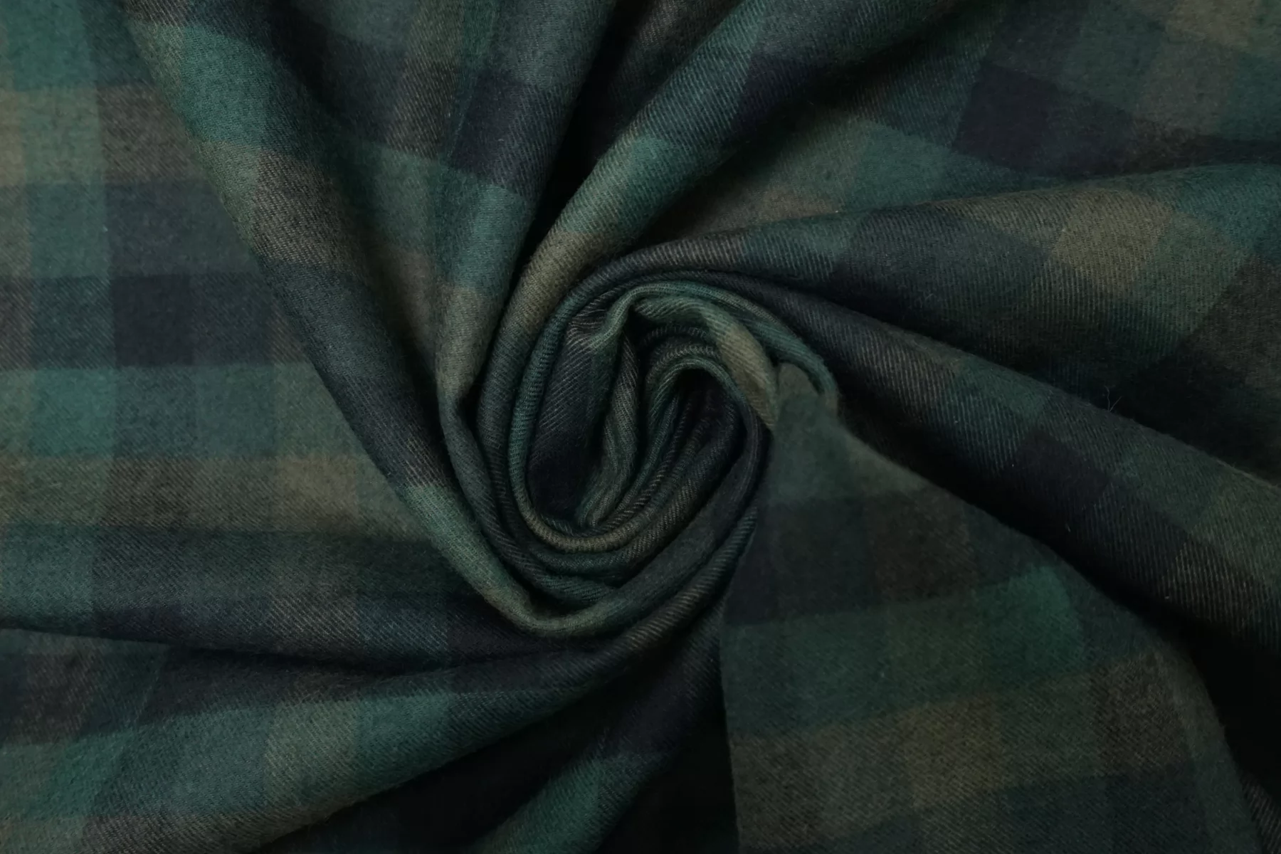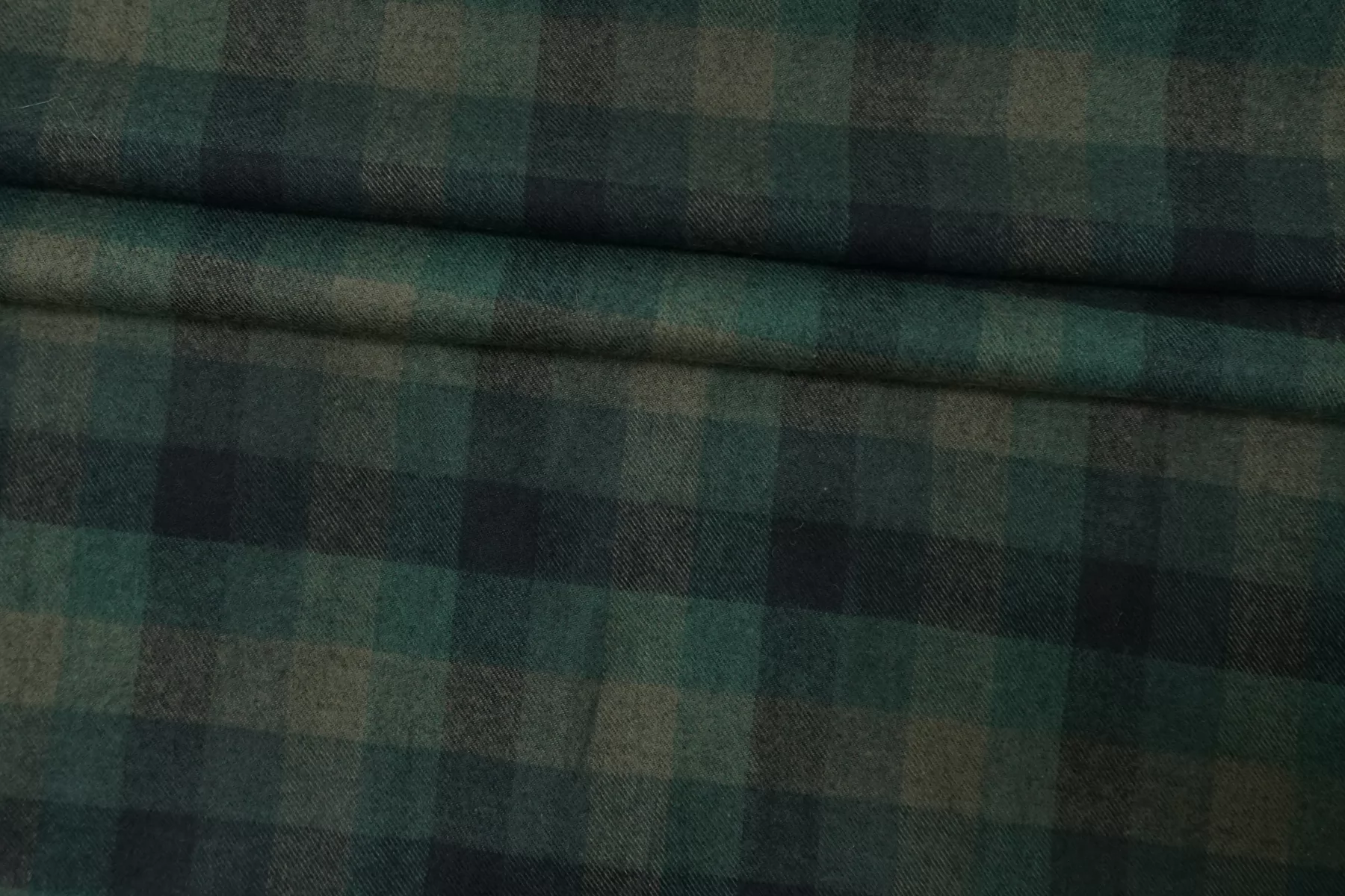 Фланель хлопковая рубашечная в клетку ALBINI Чёрно-зелёная CVC Н12 B70 21112521