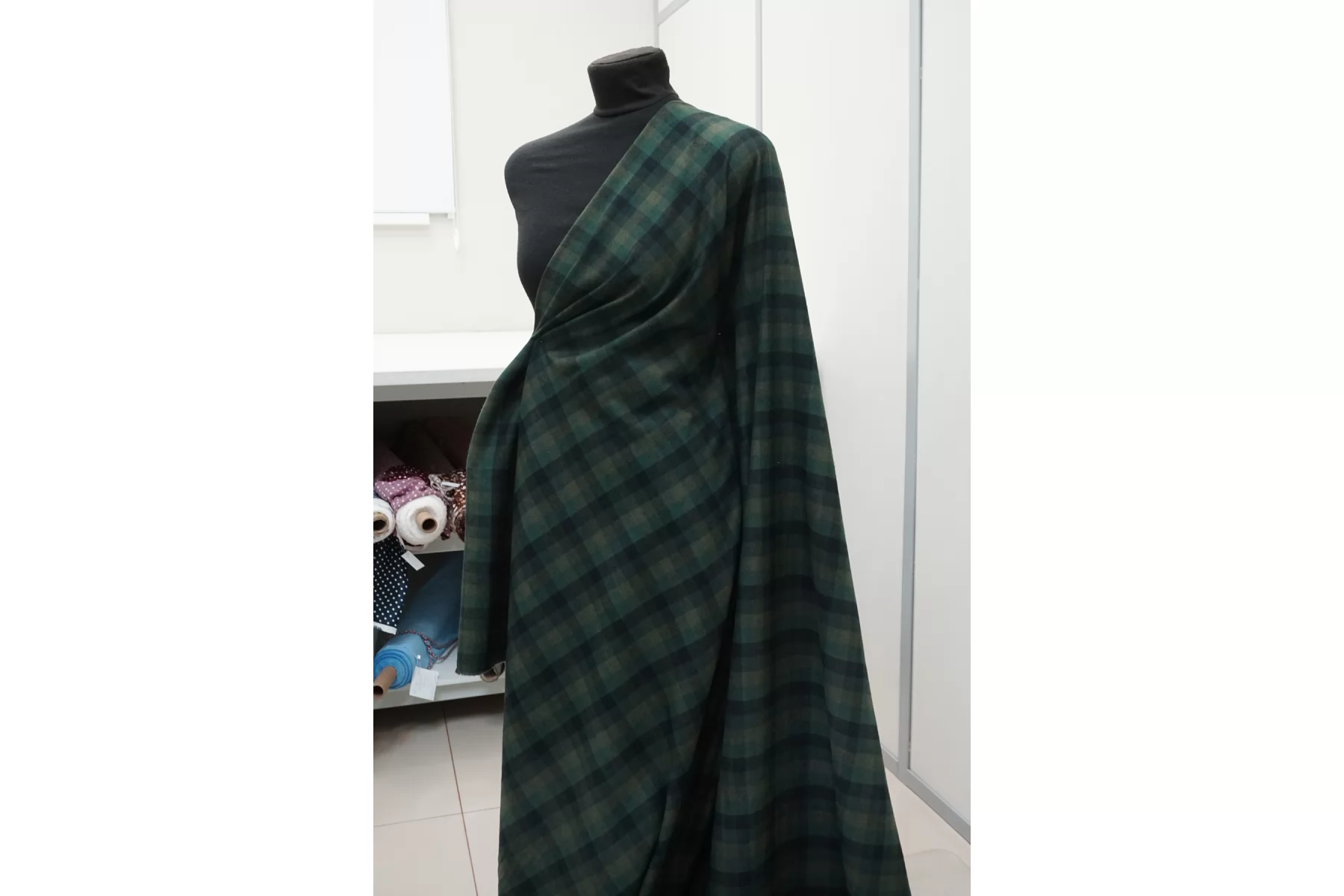 Прекрасный фланелевый рубашечный хлопок от фабрики Cotonificio Albini с узором - клеткой из нитей чёрного и зелёного цвета. Ткань ворсистая с обеих сторон. Мягкая, приятная, пластичная, не толстая. Не тянется. Немного мнется, не просвечивает. Шьем уютные и очень комфортные платья, брюки, теплые рубашки, юбки. Учитывайте усадку.