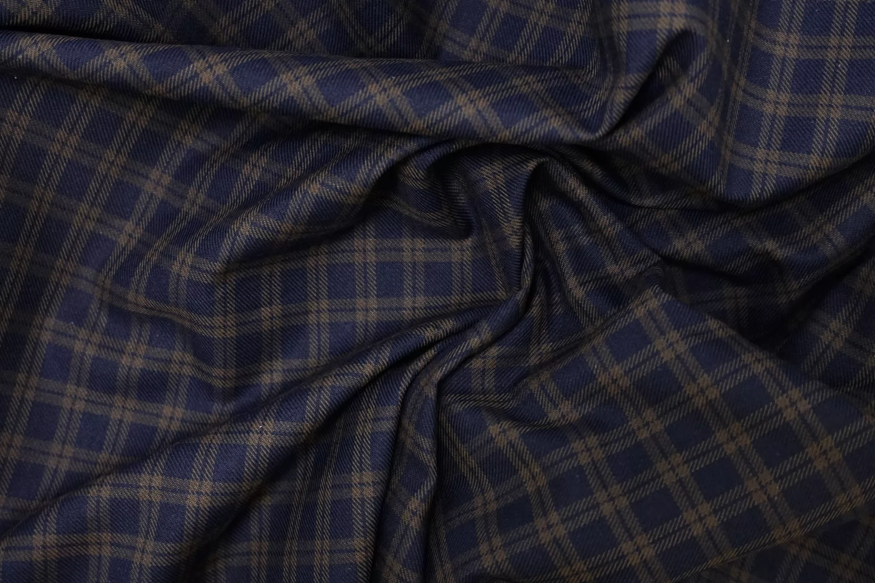 Прекрасный фланелевый рубашечный хлопок от фабрики Cotonificio Albini с узором - клеткой из нитей тёмно-синего и болотно-зелёного цвета. Ткань чуть ворсистая с лицевой стороны. Мягкая, приятная, пластичная, не толстая. Не тянется. Немного мнется, минимально просвечивает силуэт в один слой (в изделии заметно не будет). Шьем уютные и очень комфортные платья, брюки, теплые рубашки, юбки. Учитывайте усадку.