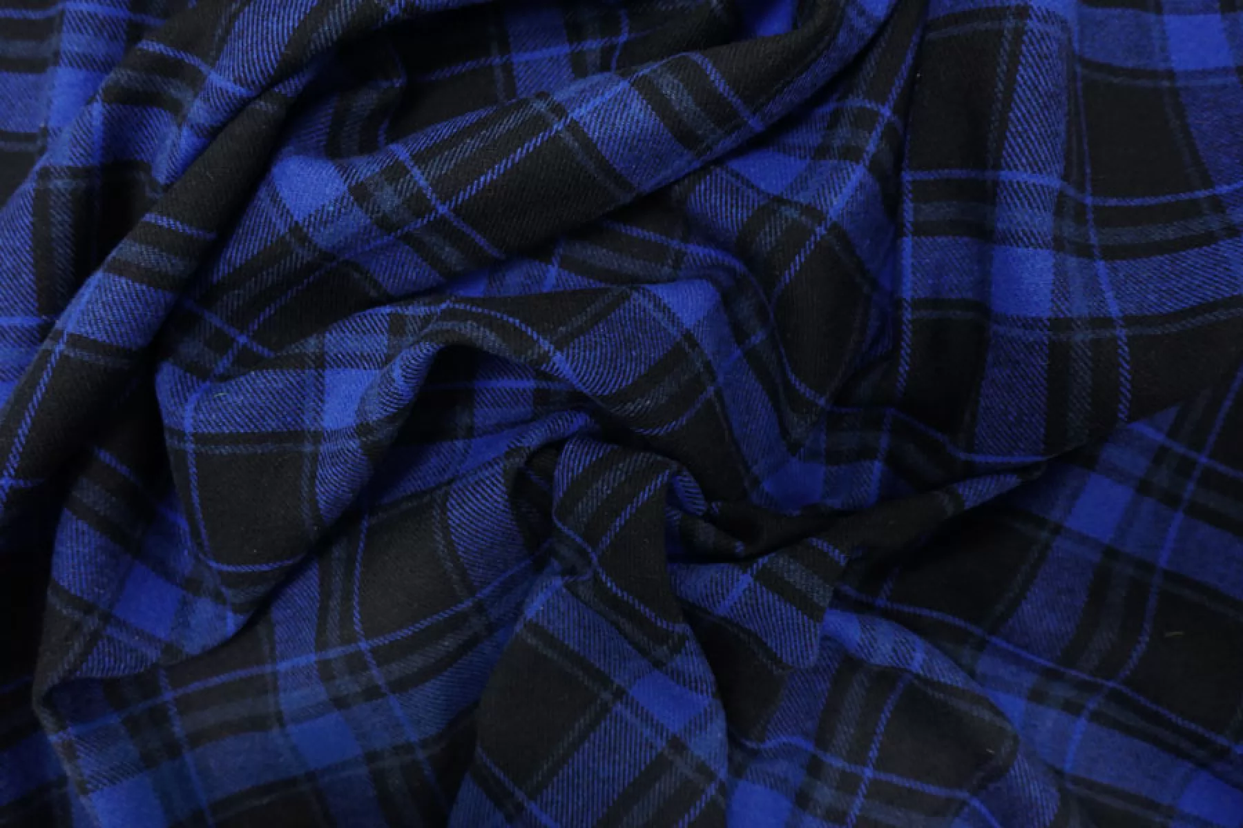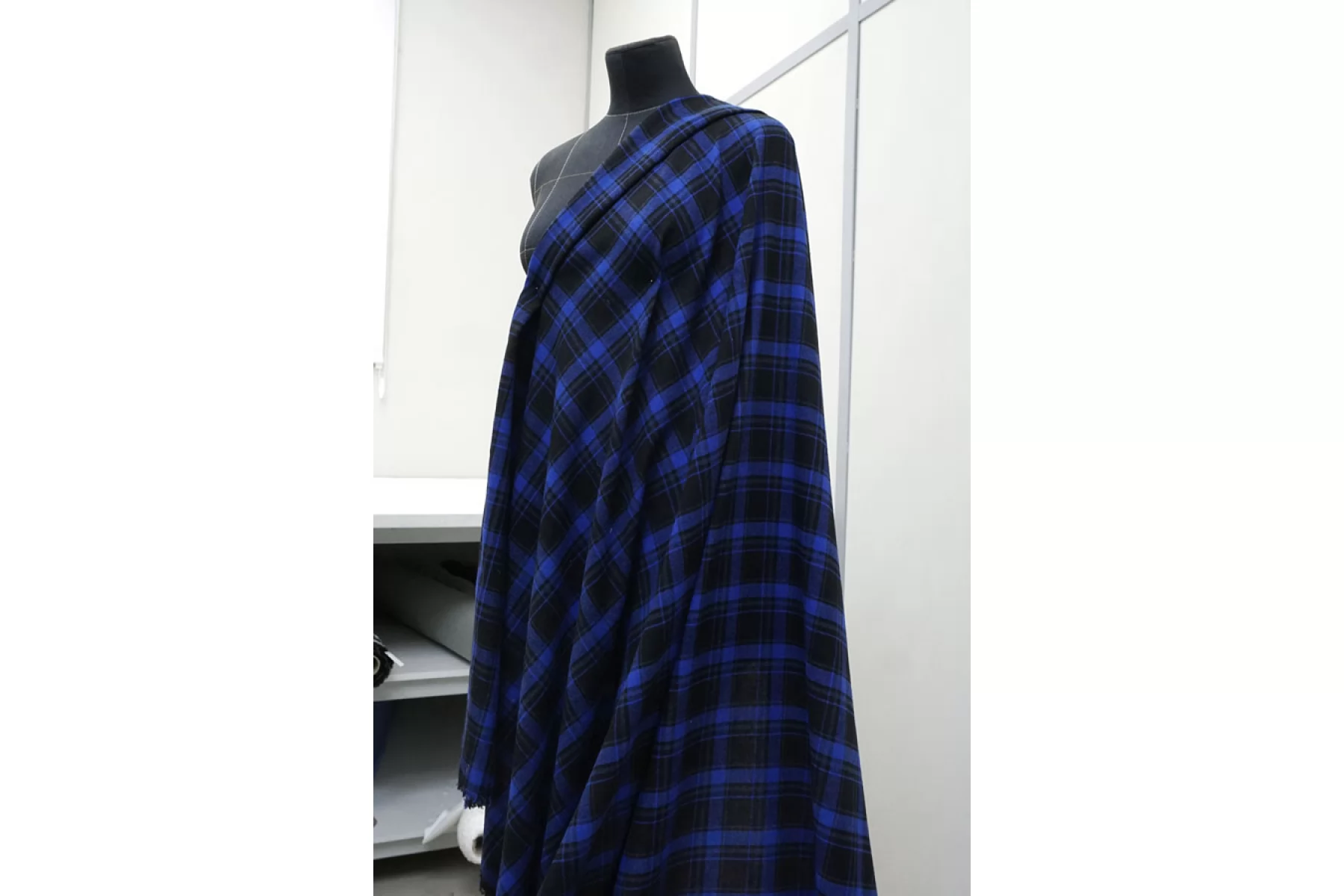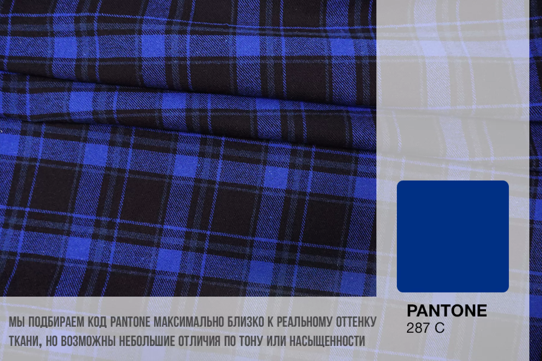 Фланель из хлопка и полиэстера, с небольшой добавкой шерсти. Плотность костюмно-плательная Узор-клетка, нити чёрного и синего цвета Тактильно приятная, суховатая, не колется. Не тянется и не просвечивает. Достаточно плотненькая. Не мнется. Пластичная. Хорошо драпируется и немного держит форму. Шьем костюмы мягкой формы, платья, юбки или теплые рубашки. Подойдет как в мужской, так и женский гардероб. Уход деликатный.