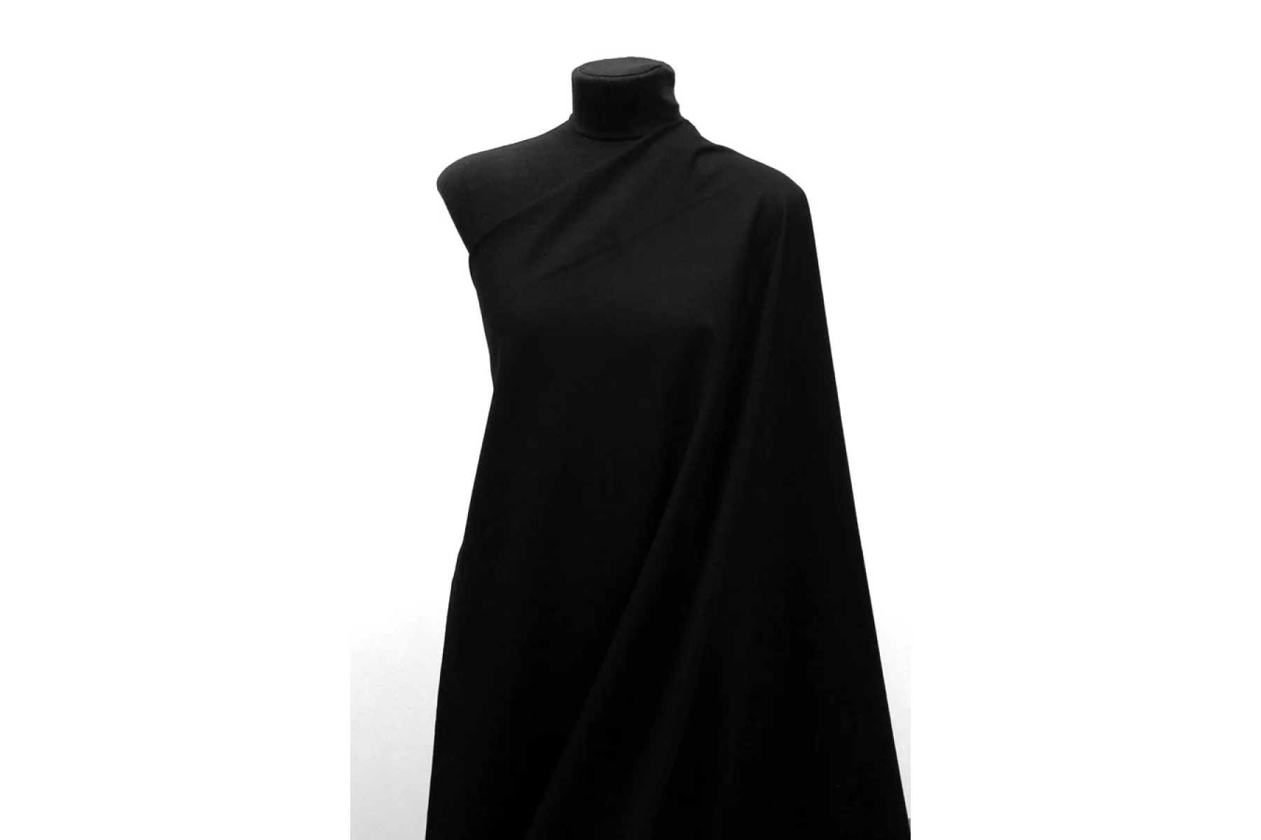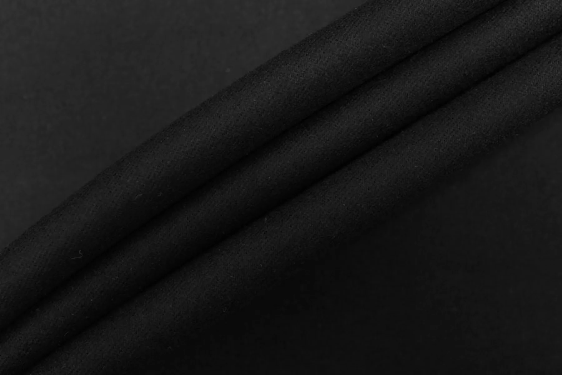 Костюмная шерстяная фланель чёрного цвета. Тактильно очень приятная, мягкая, не колется. Не тянется, не просвечивает. Не мнется. Обладает легким лоском. Пластичная. Хорошо драпируется но при этом держит форму. Шьем зимние костюмы, юбки или теплые рубашки. Уход деликатный.