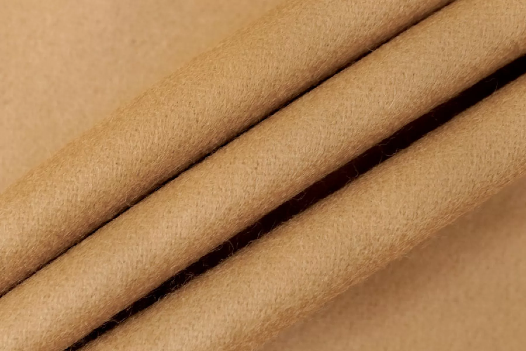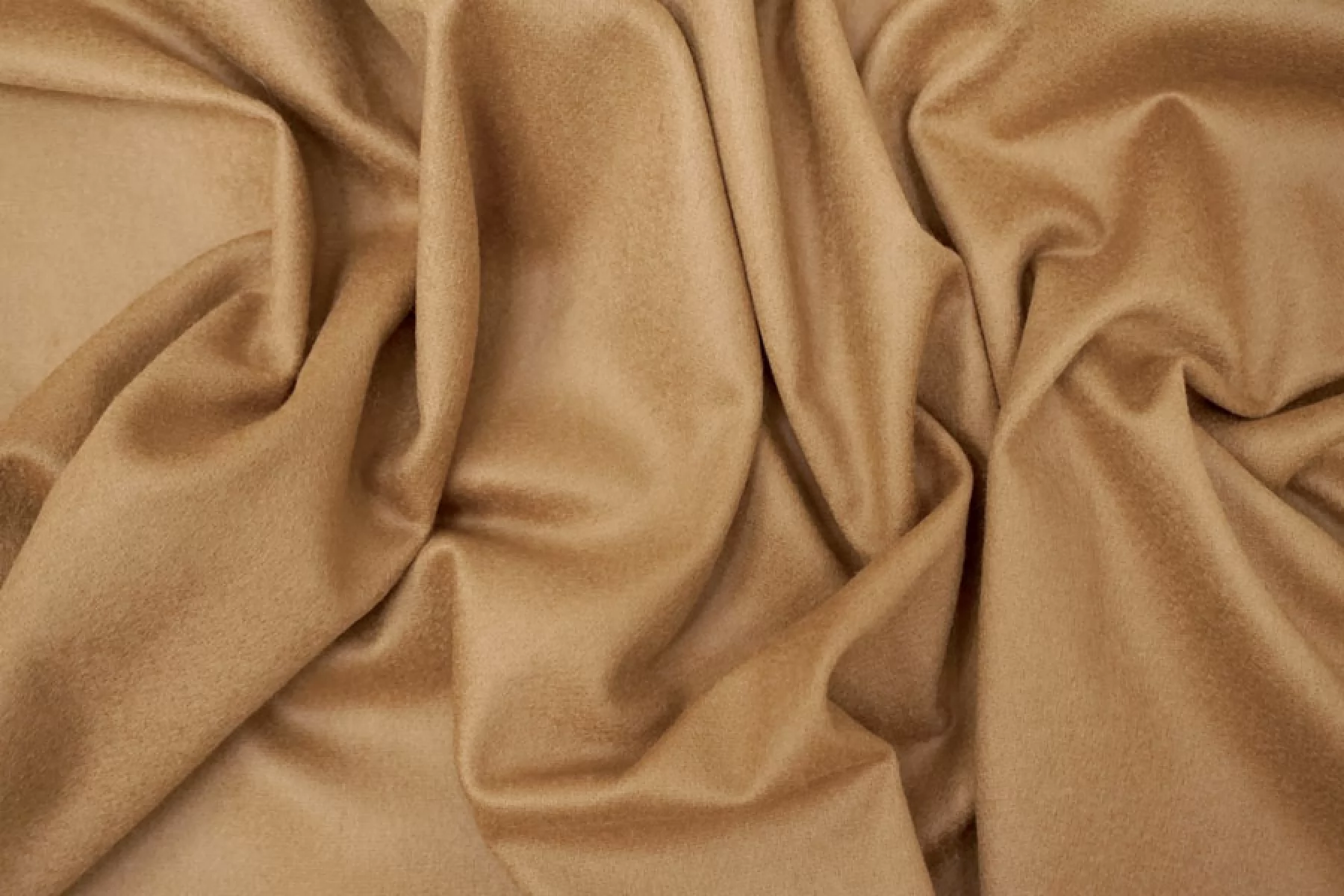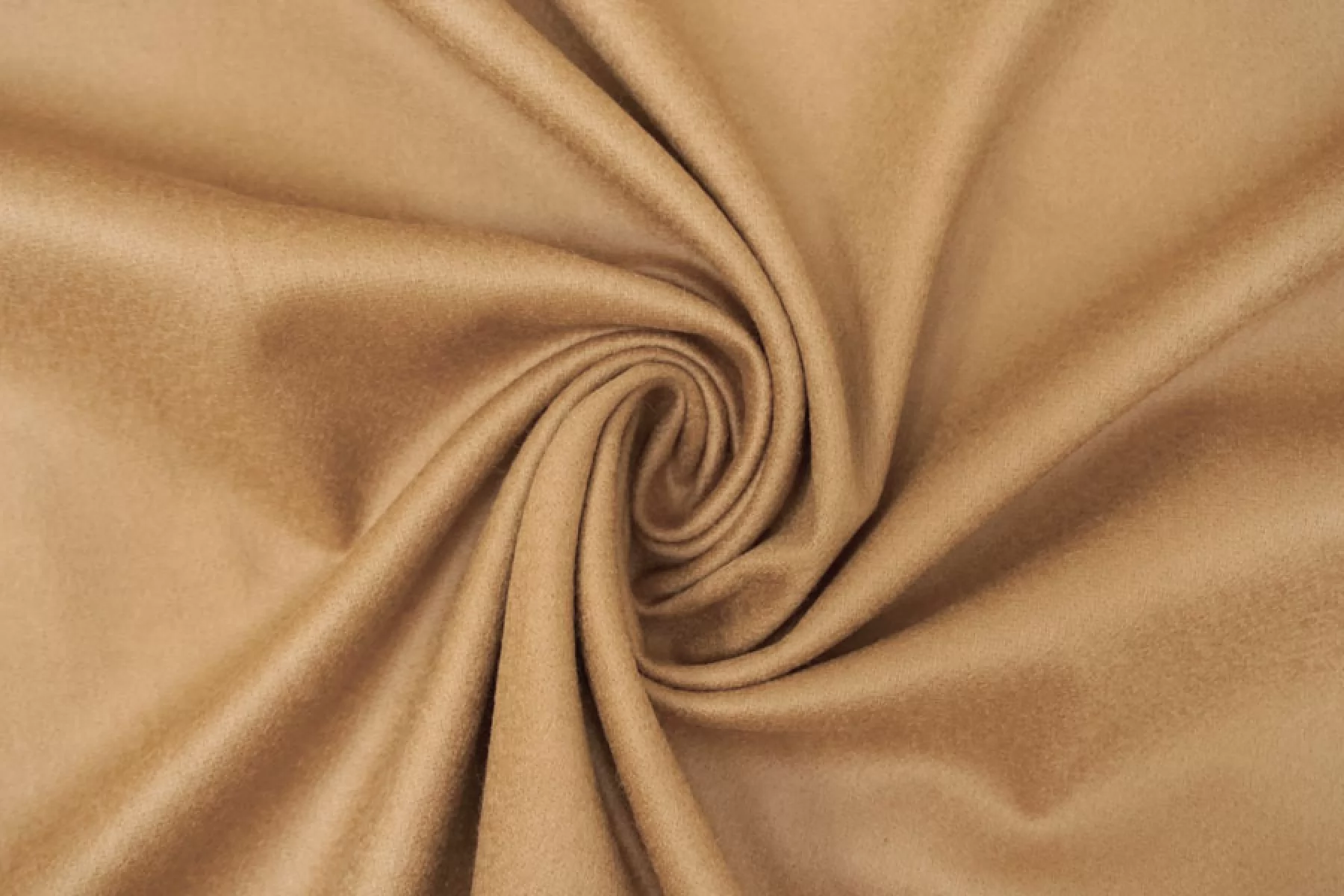 Костюмно-плательная шерстяная фланель качества virgin оттенка кэмел, одна сторона ворсовая. Тактильно приятная, очень мягкая, немного суховатая, не колется. Не тянется и не просвечивает. Достаточно плотненькая. Немного мнется. Обладает легким лоском. Пластичная. Хорошо драпируется и держит форму. Шьем костюмы или теплые рубашки. Уход деликатный.