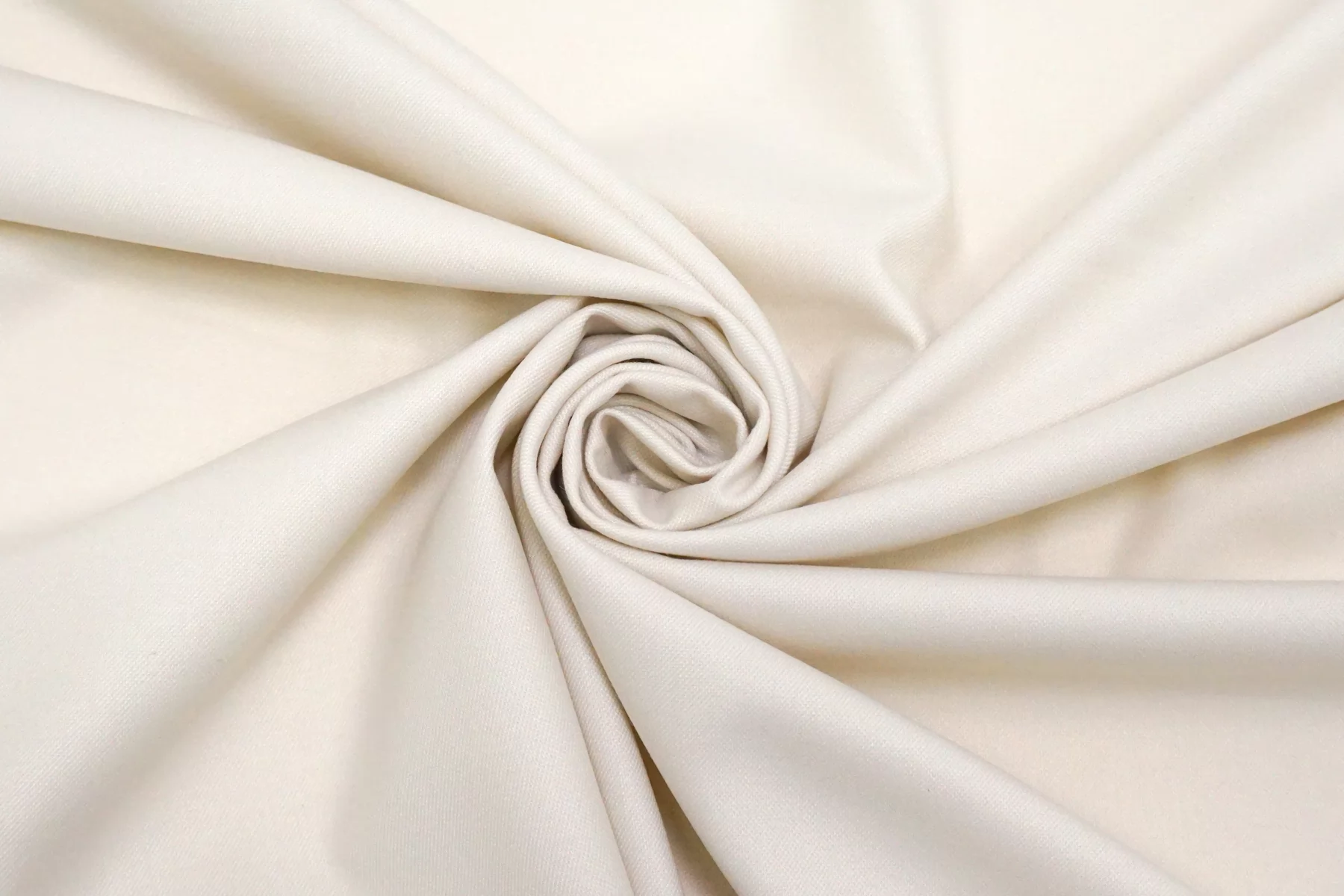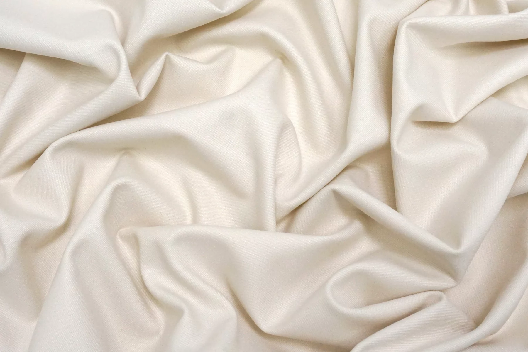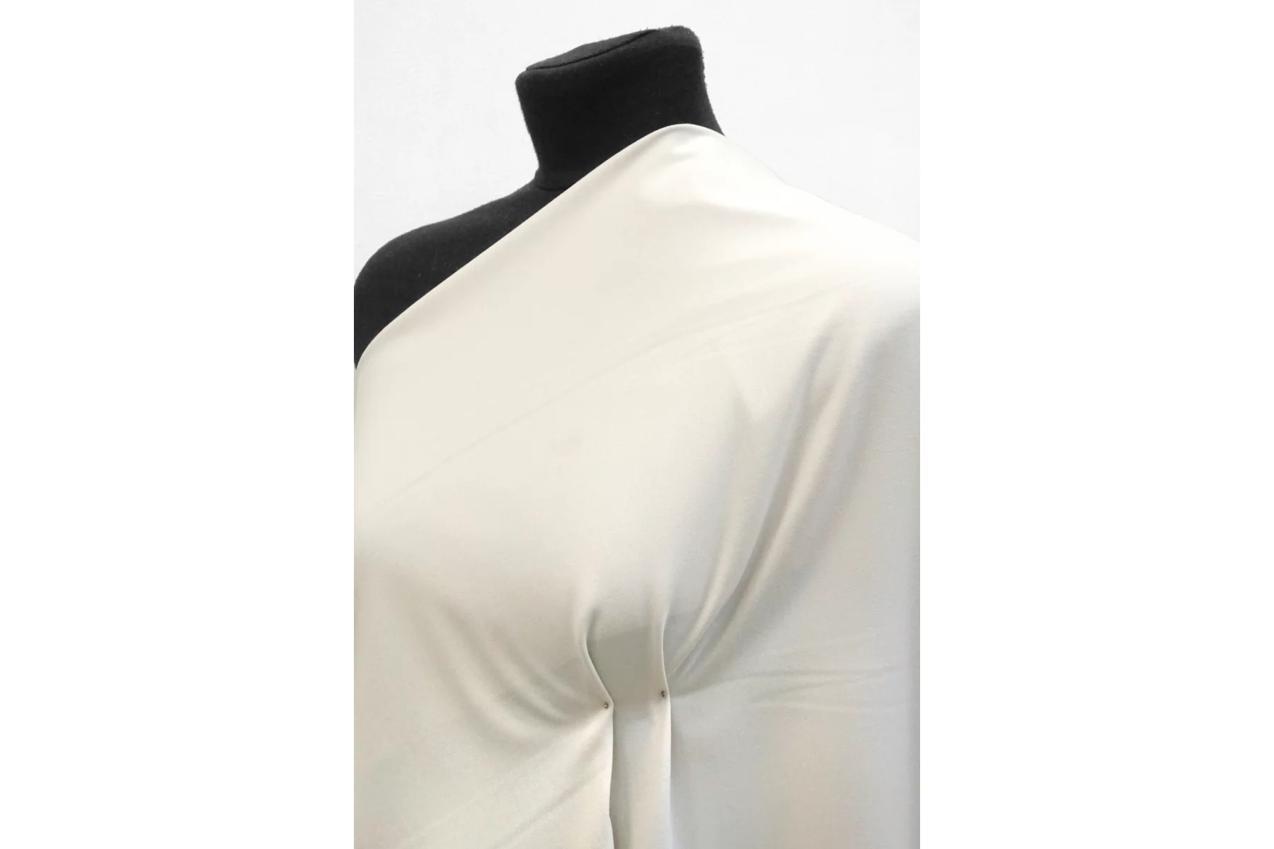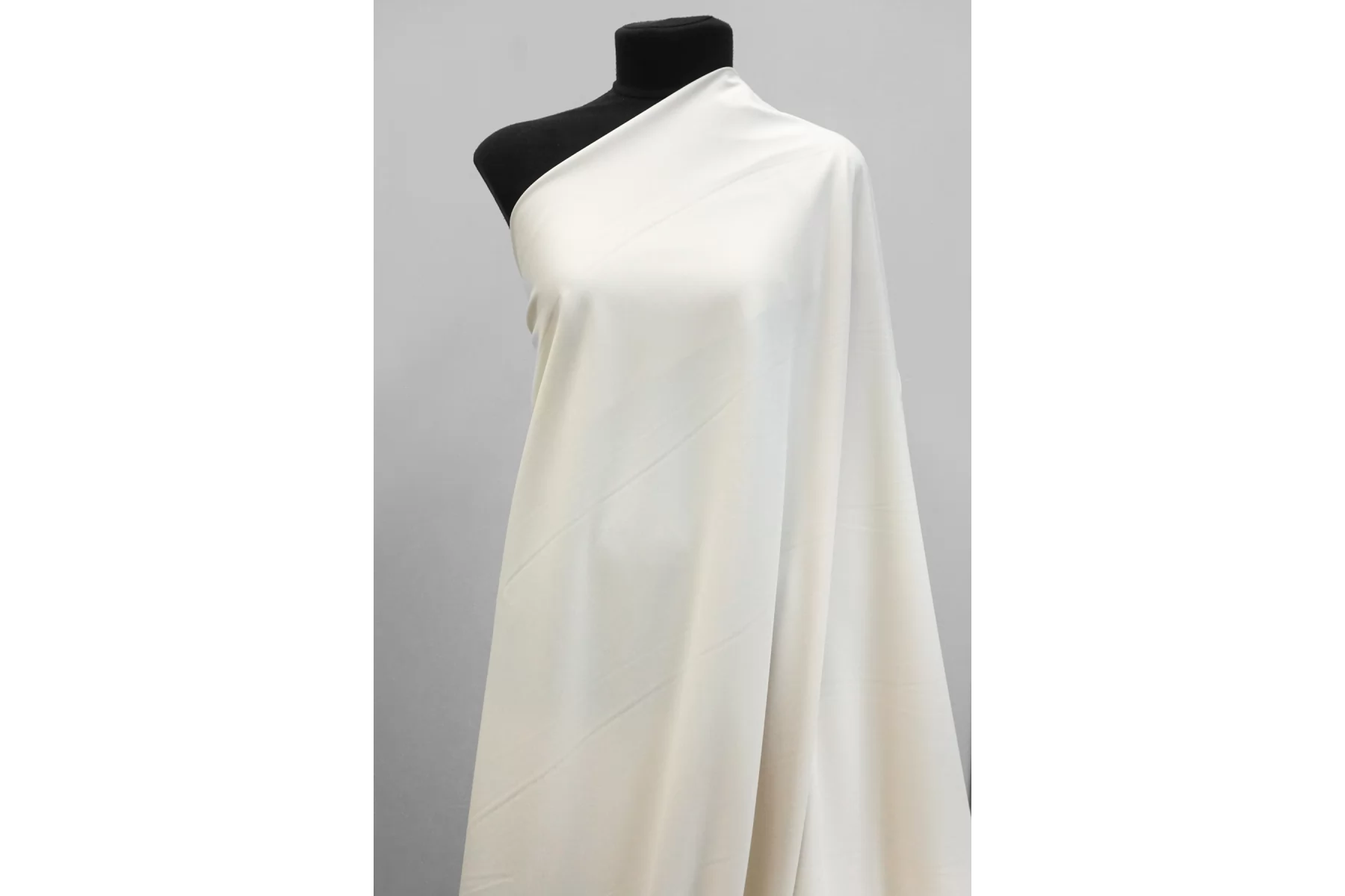 Костюмно-плательная фланель поливискозная от бренда Max Mara, чуть приглушённого белого цвета. Пластичная, мягкая и приятная тактильно. Не мнется. Не просвечивает. Хорошо пружинит за счет эластана. Поливискоза отличается хорошей износостойкостью и прочностью. Уход деликатный. Шьем платья, тёплые рубашки или шорты, брюки, костюмы мягкой формы.