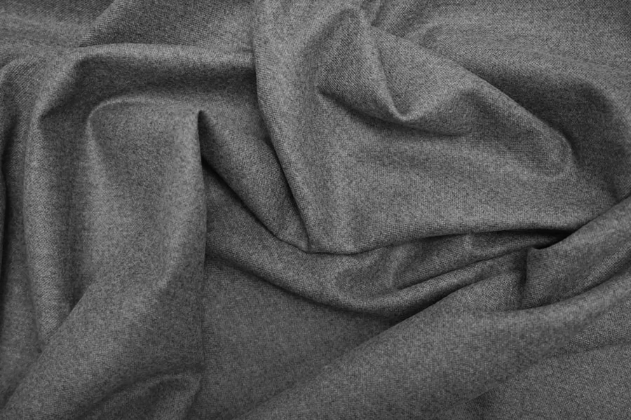 Костюмно-плательная фланель поливискозная от бренда Max Mara, серого цвета. Пластичная, мягкая и приятная тактильно. Не мнется. Не просвечивает. Хорошо пружинит за счет эластана. Поливискоза отличается хорошей износостойкостью и прочностью. Уход деликатный. Шьем платья, тёплые рубашки или шорты, брюки, костюмы мягкой формы.