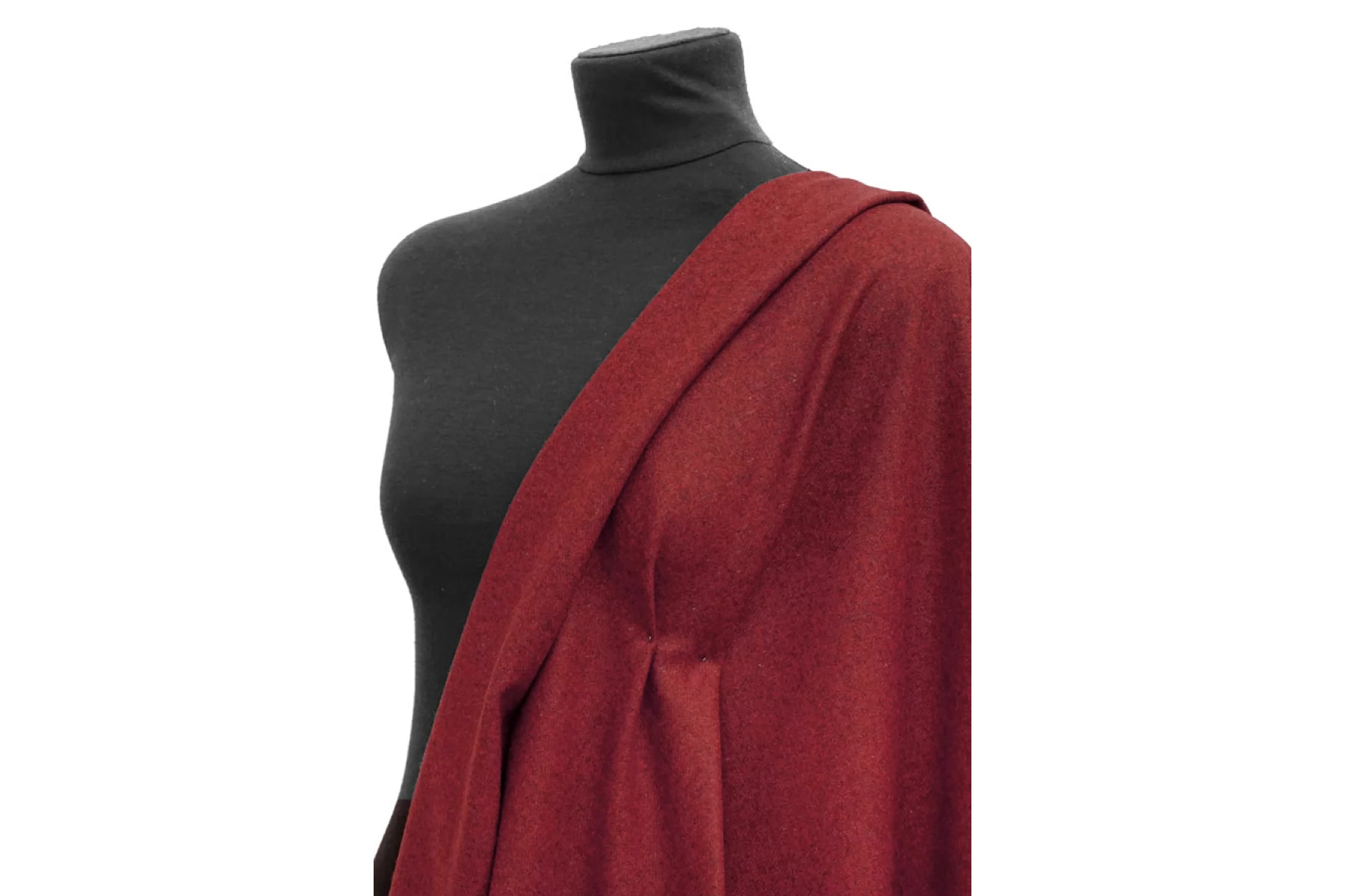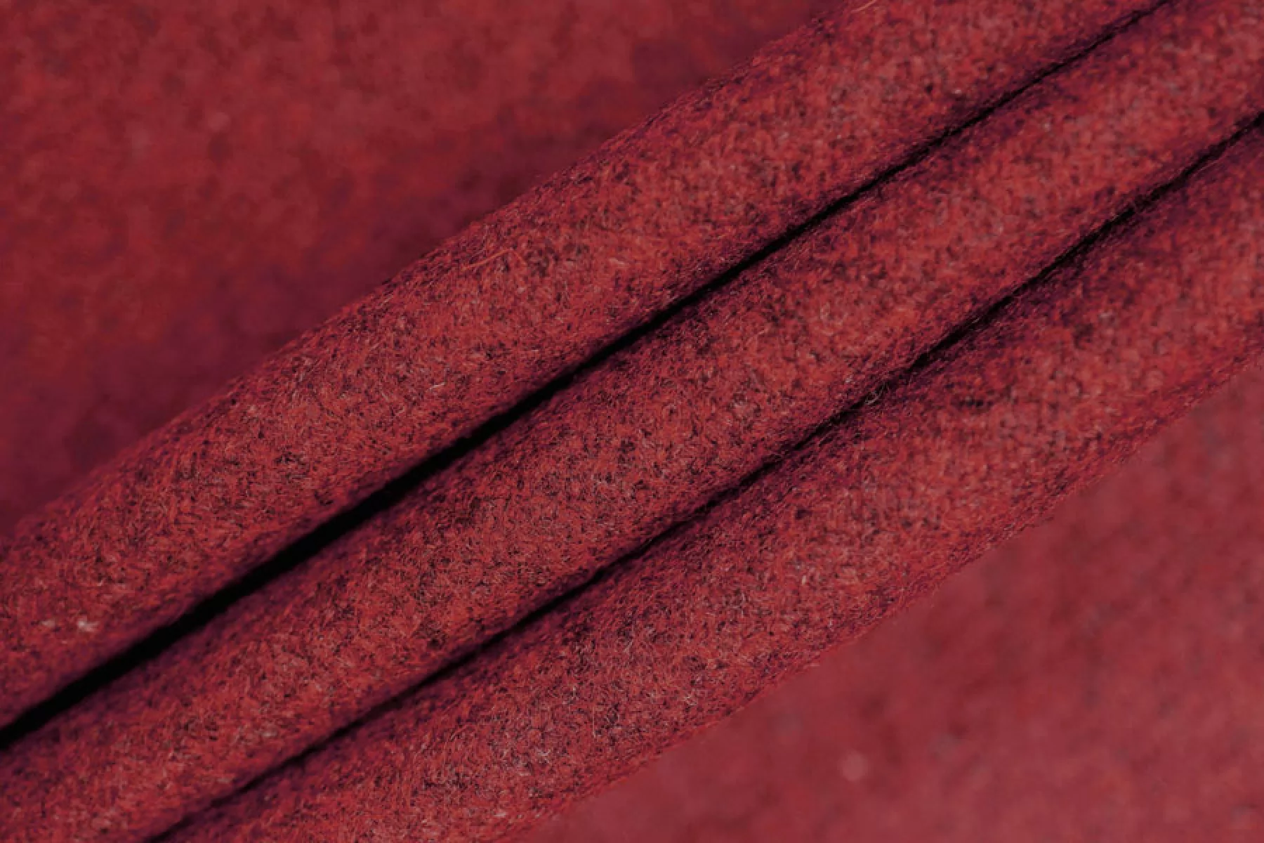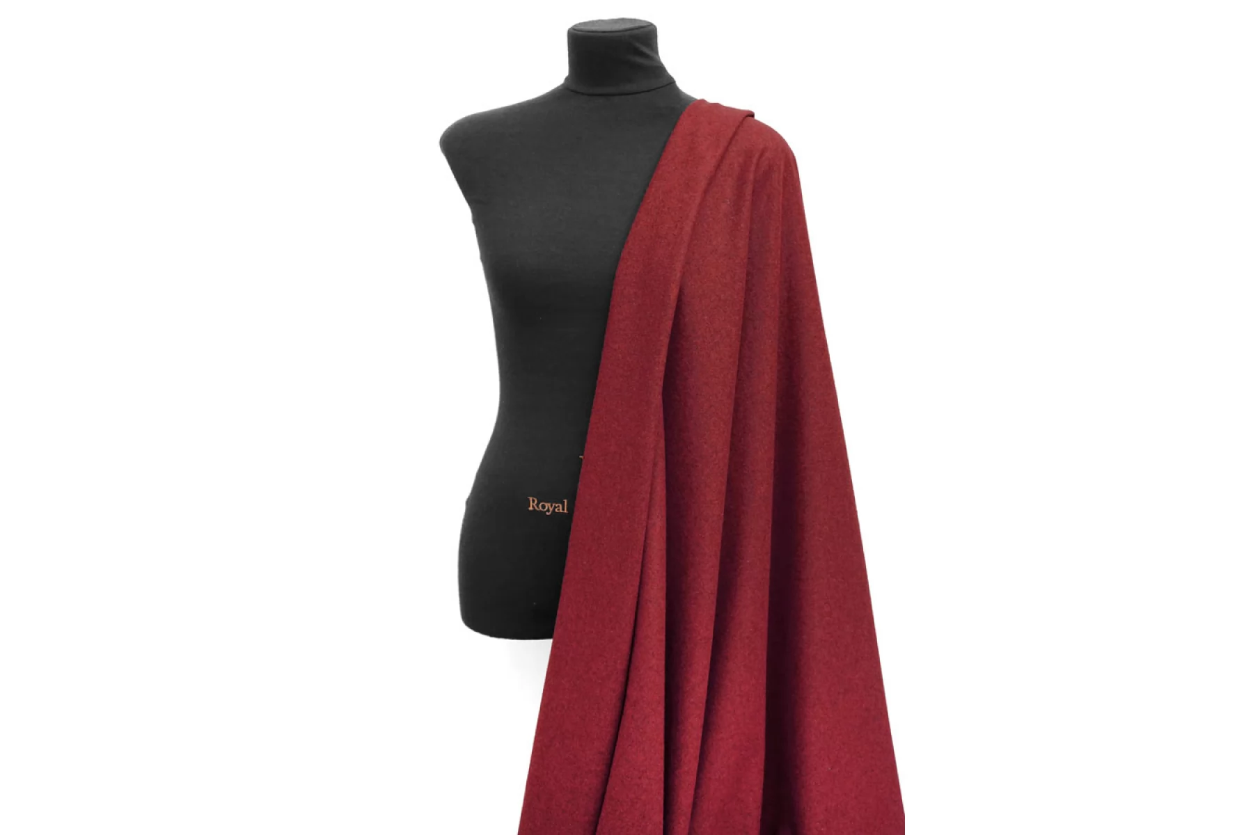 Очень классная костюмная шерстяная фланель красного цвета. Тактильно очень приятная, мягкая, слегка суховатая, совсем немного колется. Одна сторона с легким ворсом, другая без. Не тянется и не просвечивает. Не мнется, . Пластичная. Хорошо драпируется и держит форму. Отлично подойдет на теплые костюмы, жакеты или теплые рубашки. Уход деликатный.